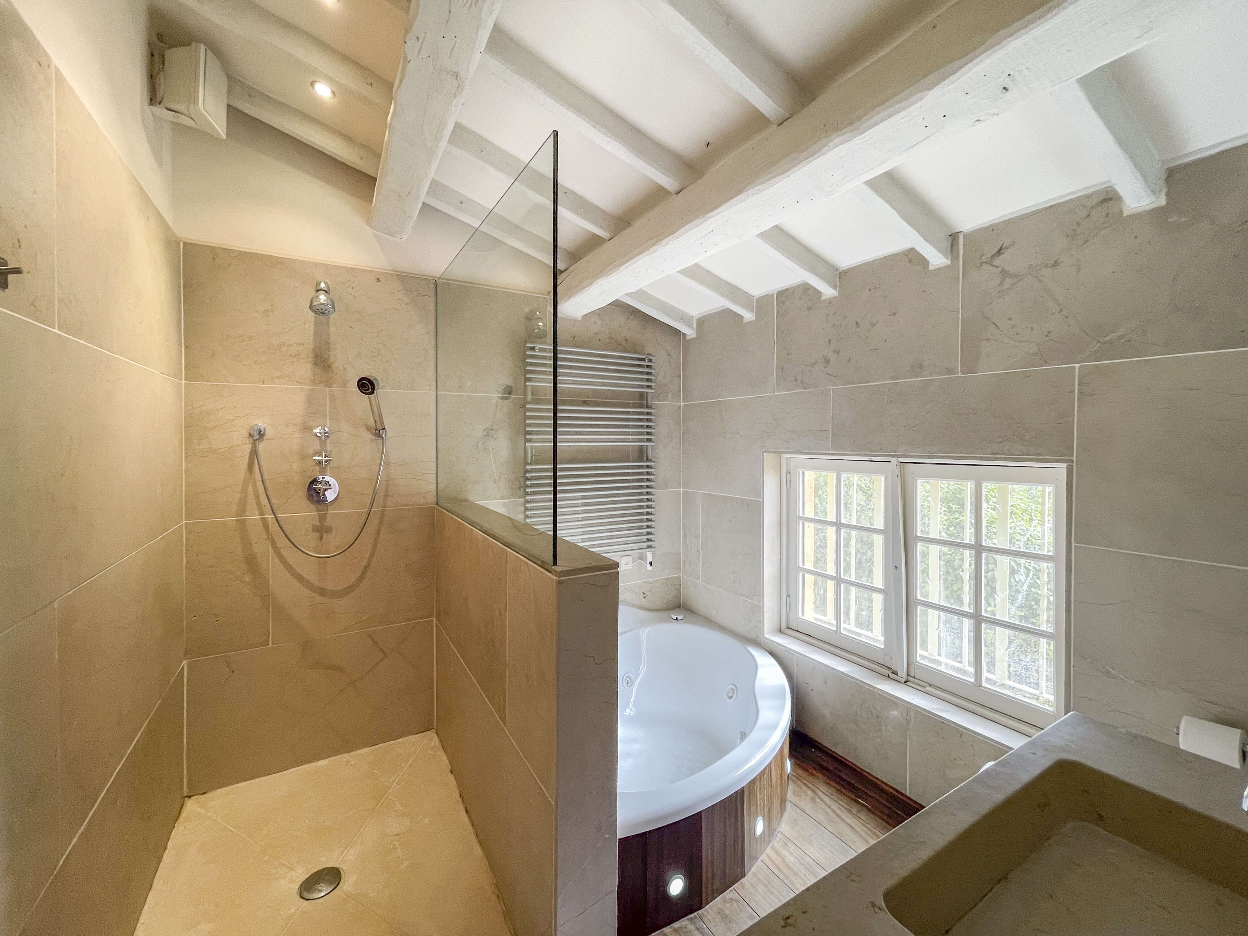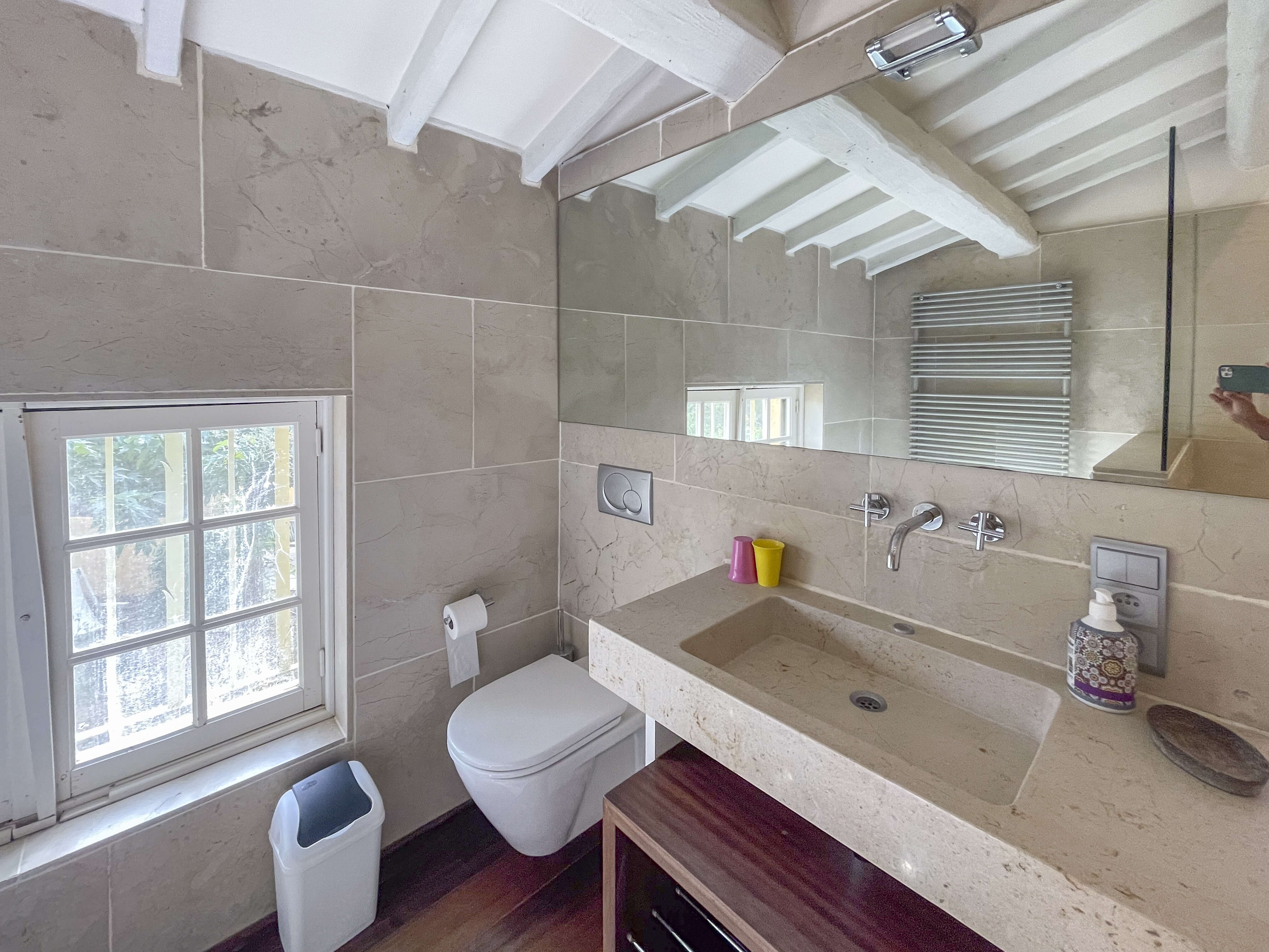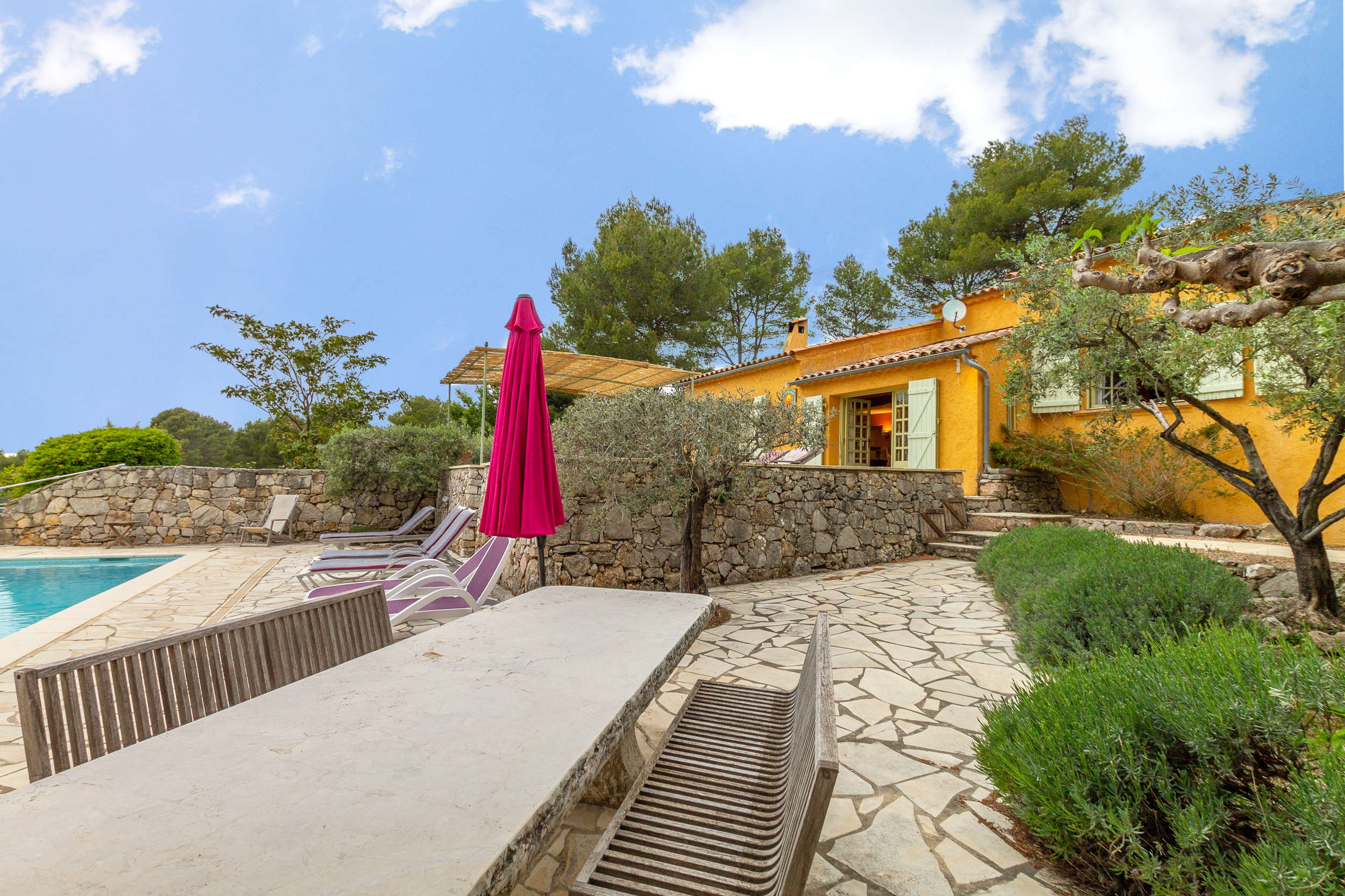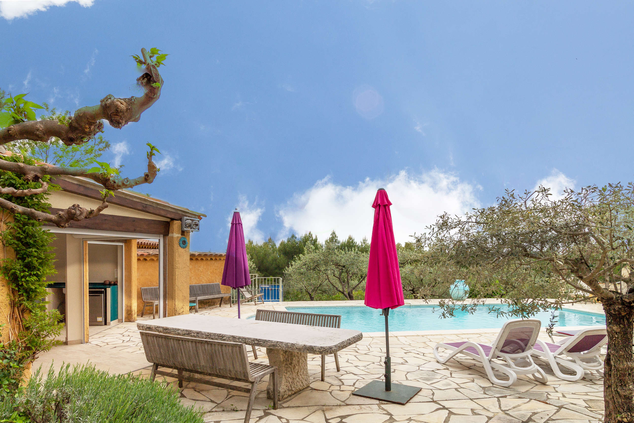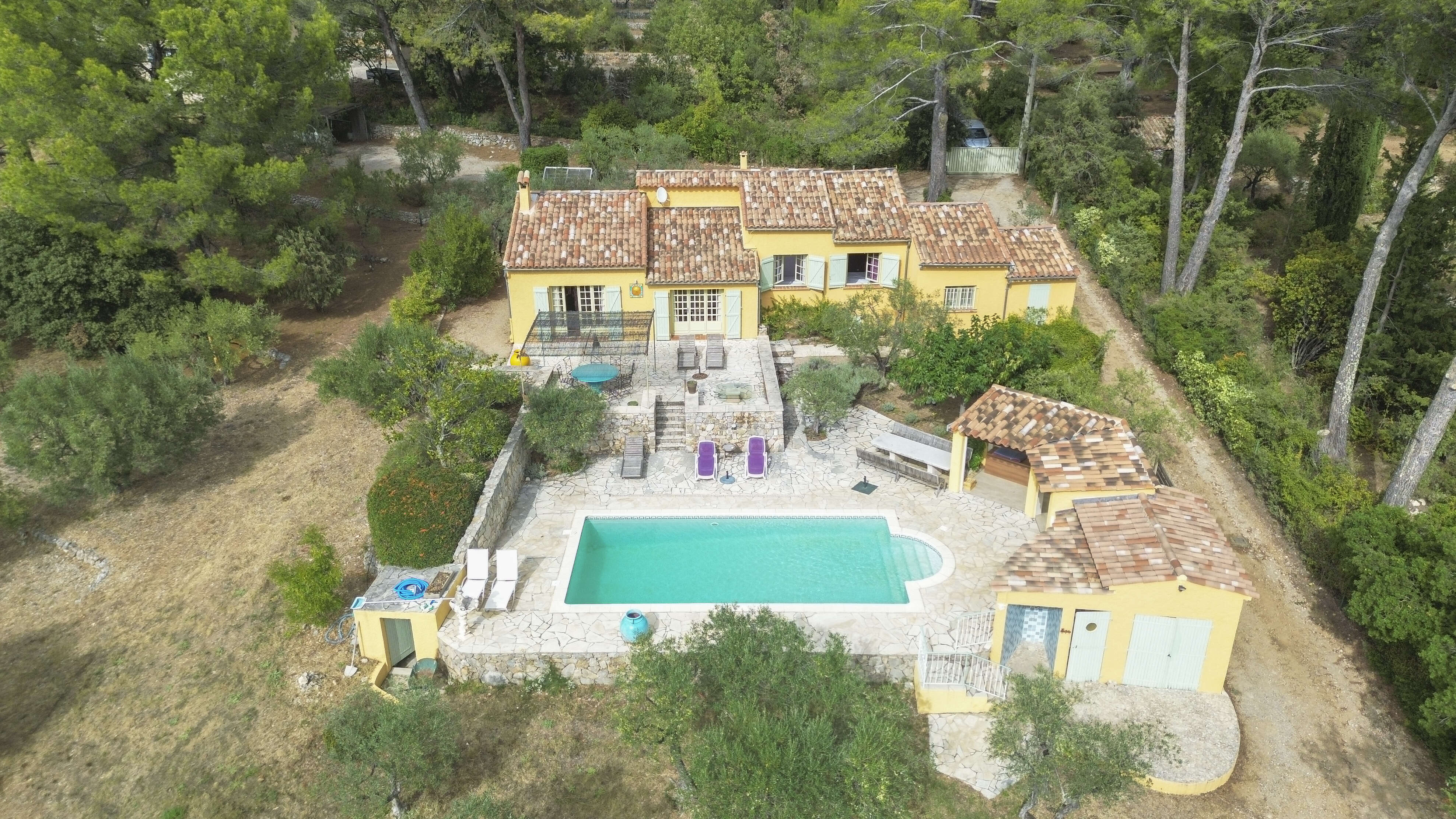 This is a delightful and luxurious villa located in the picturesque village of Flayosc. It has a marvellous 6,000m_ garden with a lot of olive trees which is entirely fenced, and a private swimming-pool (5mx10m) surrounded by spacious terraces. Pool-house with a fridge, shower and toilet, offering a fabulous view of the Provençal hills.