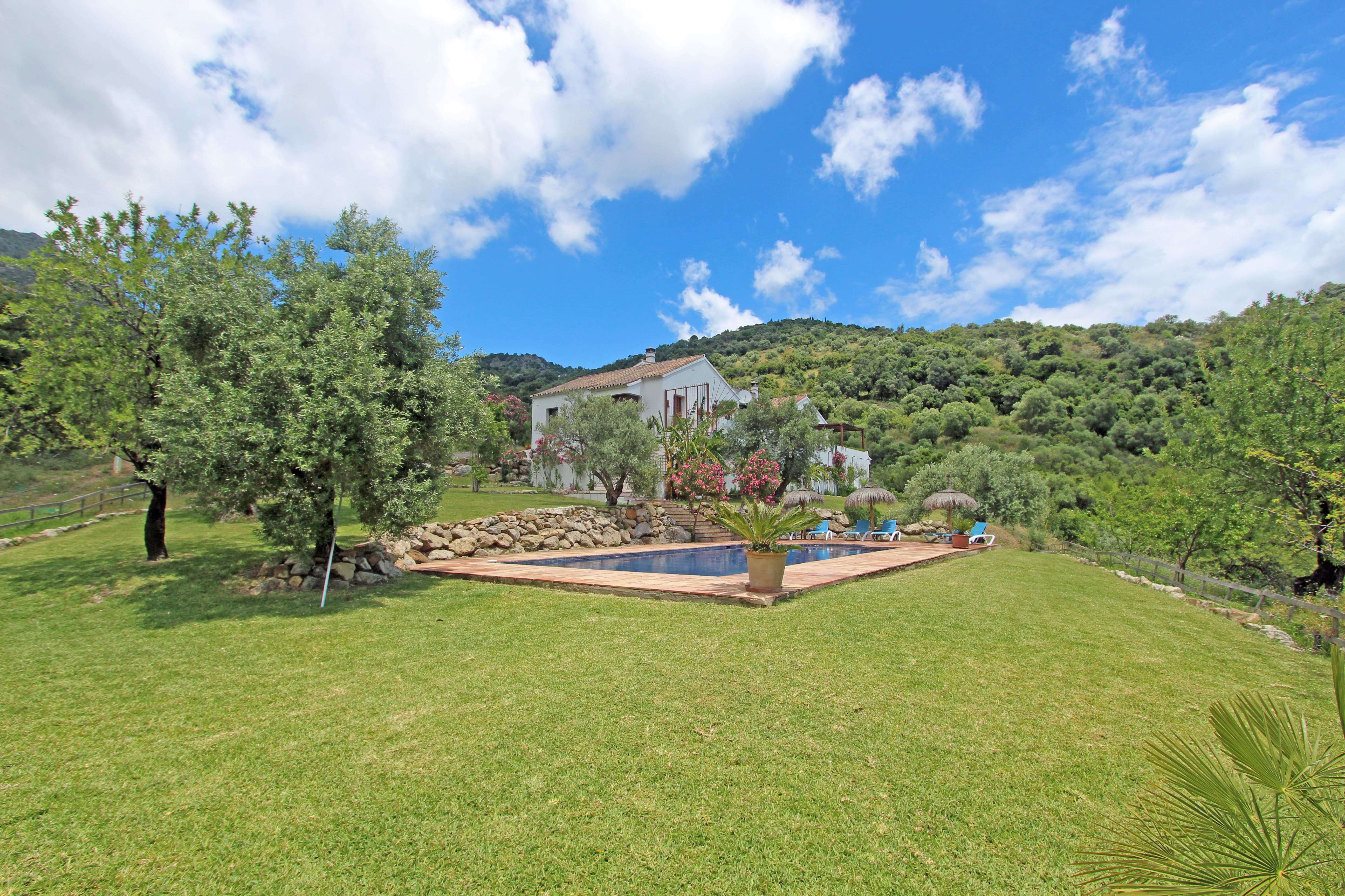 Villa Allegra is a spacious vacation home for 8 with private pool and panoramic views in Gaucin, Costa del Sol, Spain. This unique gem of a vacation villa is hidden among the beautiful rolling hills of Andalusia. This vacation home with private pool in the Costa del Sol is located on a gigantic private estate with 43 hectares of avocado trees.