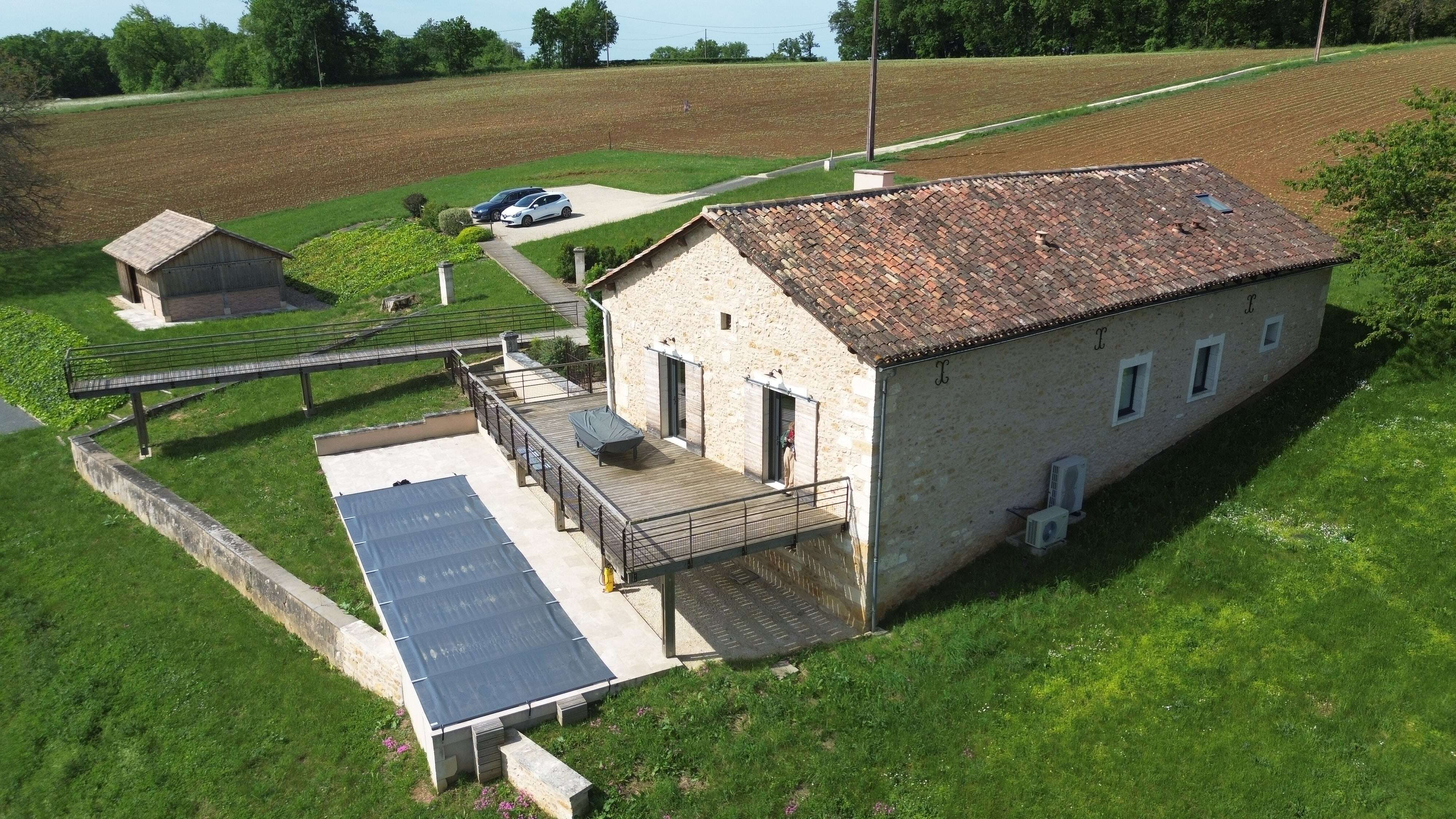 Villa Charmante au Périgord is a beautifully renovated holiday home for 10 people with 5 bedrooms with jacuzzi in one of the most beautiful regions of the Dordogne (Fouleix, Nouvelle-Aquitaine). The holiday home for 10 people with a private heated swimming pool offers a pleasant combination of French authenticity and modern comfort.