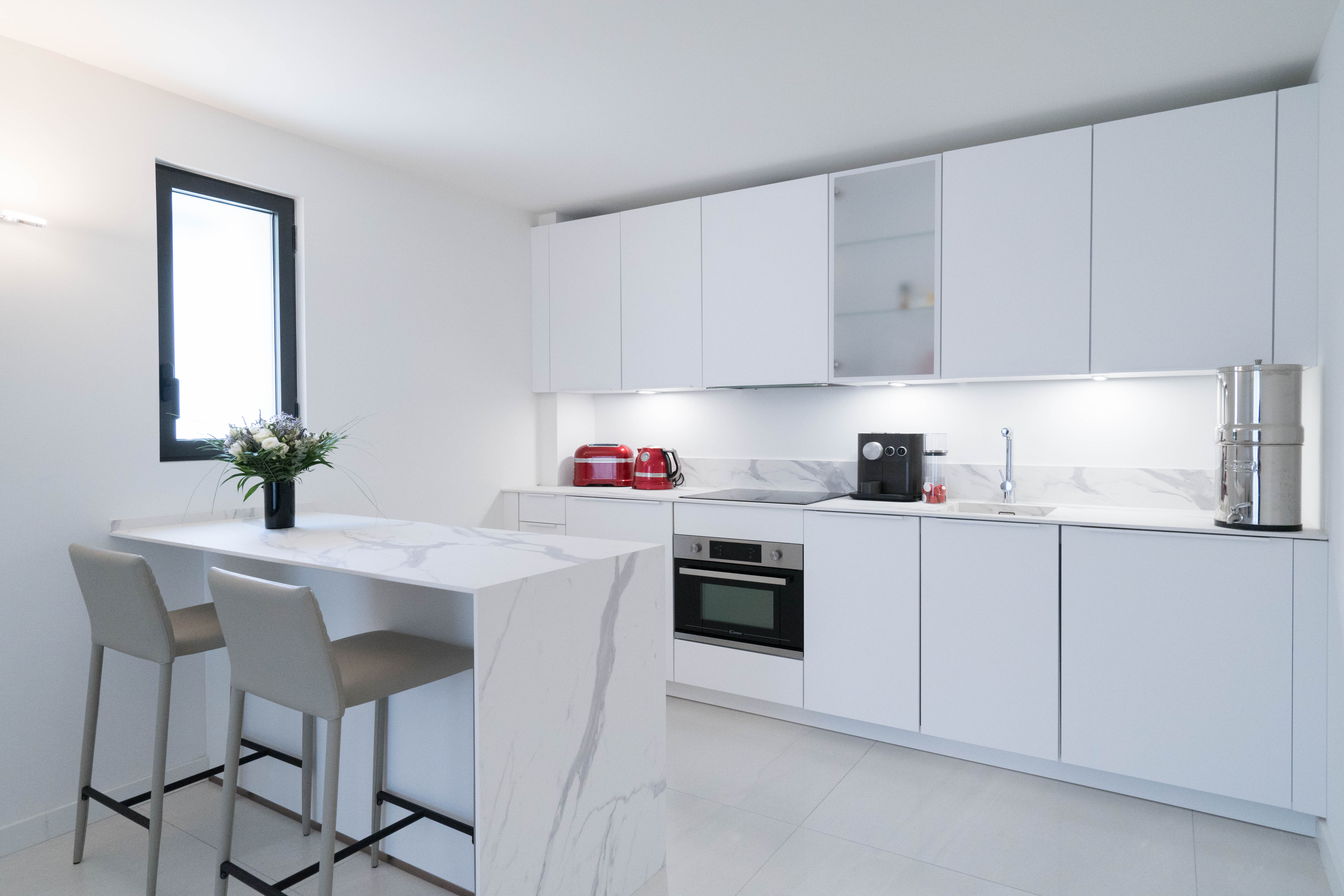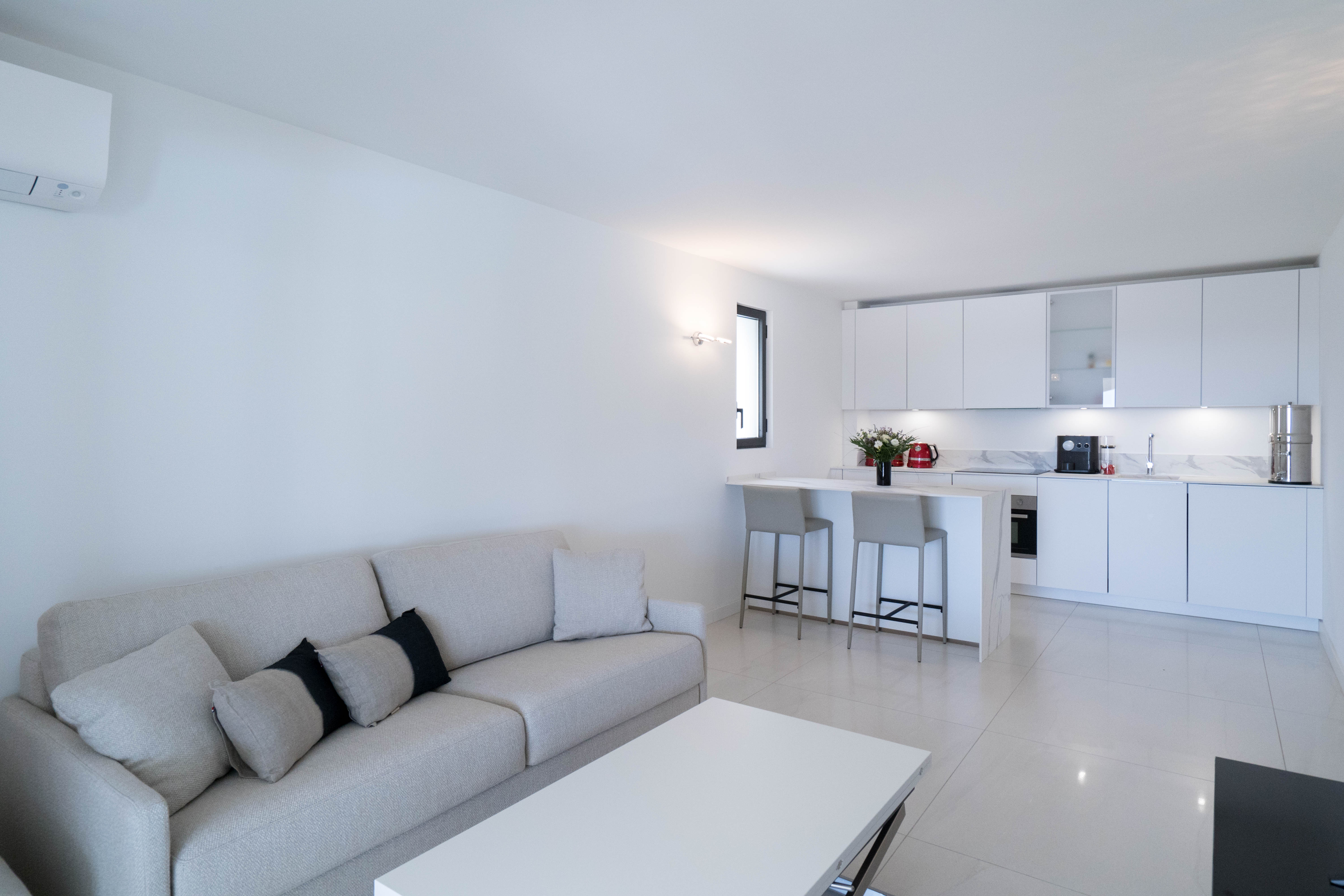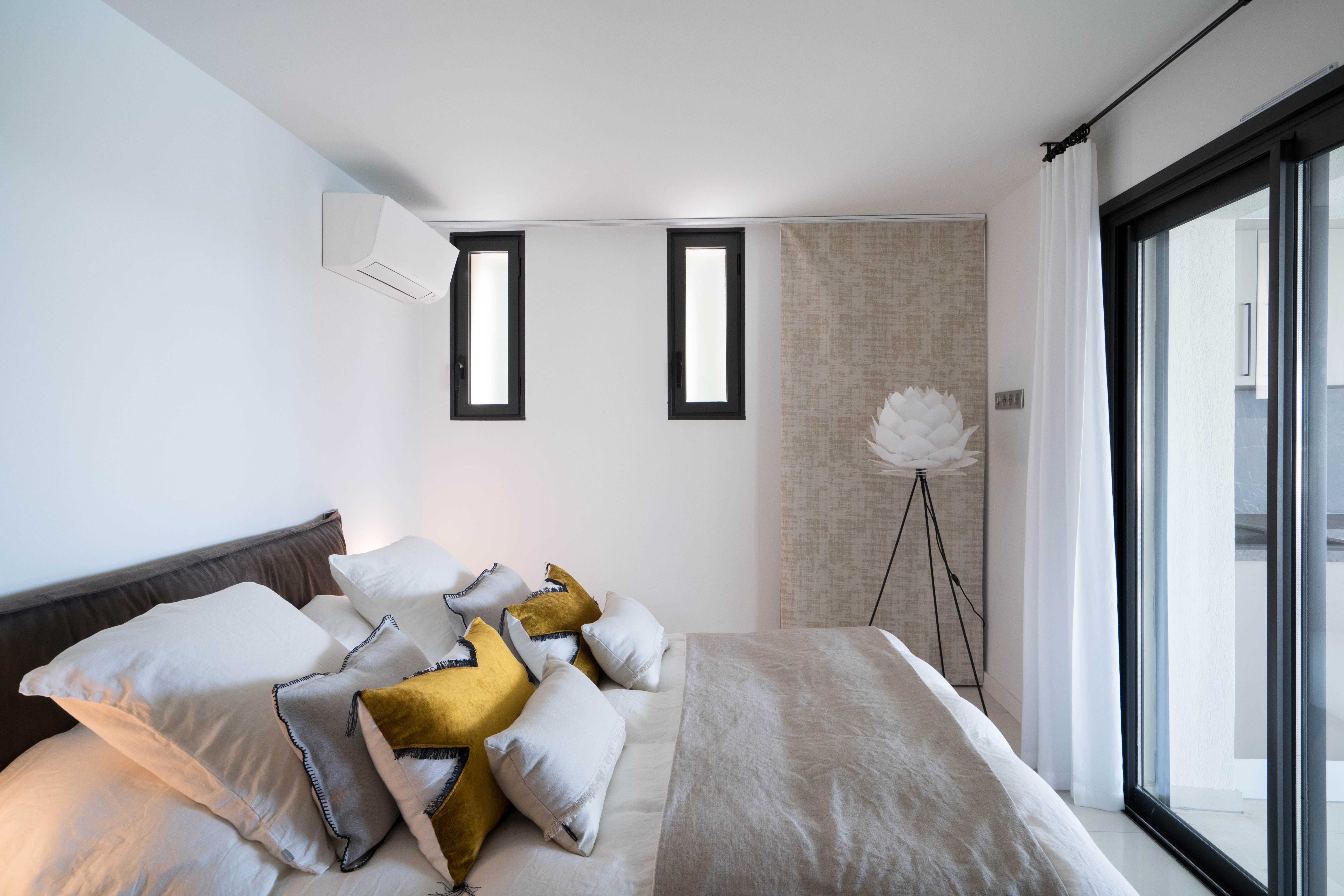 The lower part of this holiday home is completely independent from the upper part and features a modern and refined interior. With a beautiful living room and an open kitchen, as well as 3 bedrooms, each with its own bathroom and direct access to the stunning terrace. The interior is luxurious and beautifully furnished, and with air conditioning in every room, ensuring a comfortable and memorable stay.