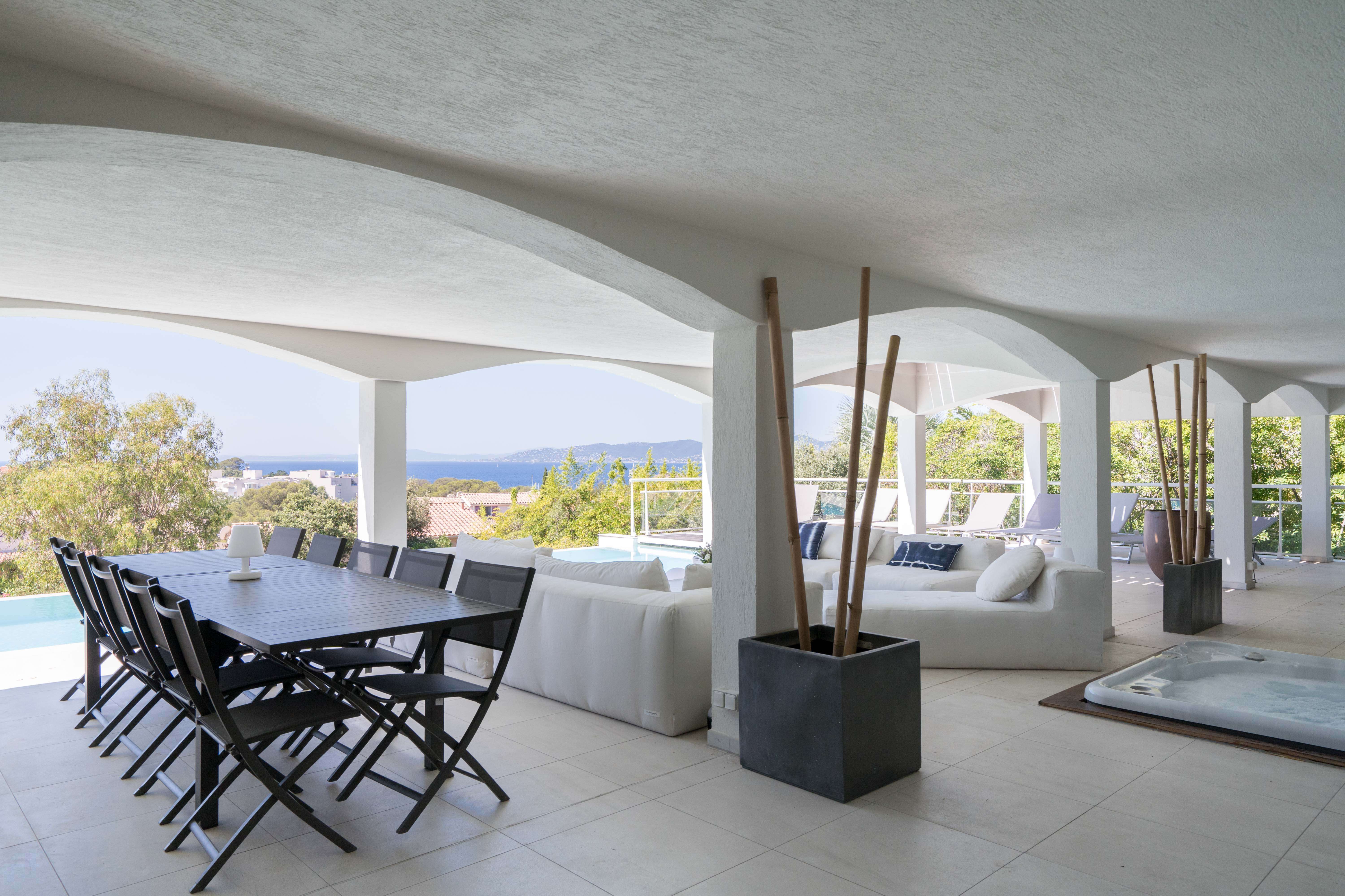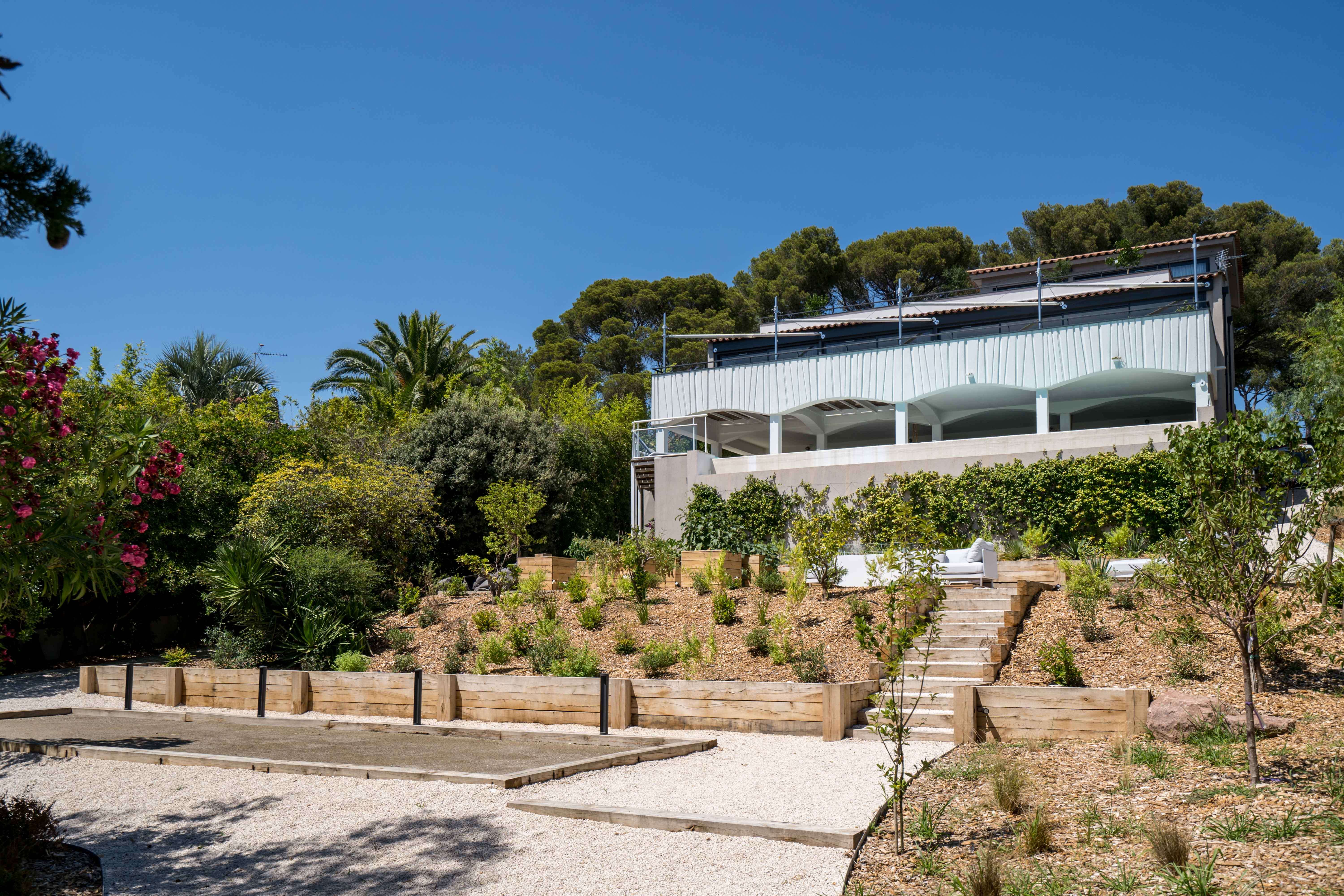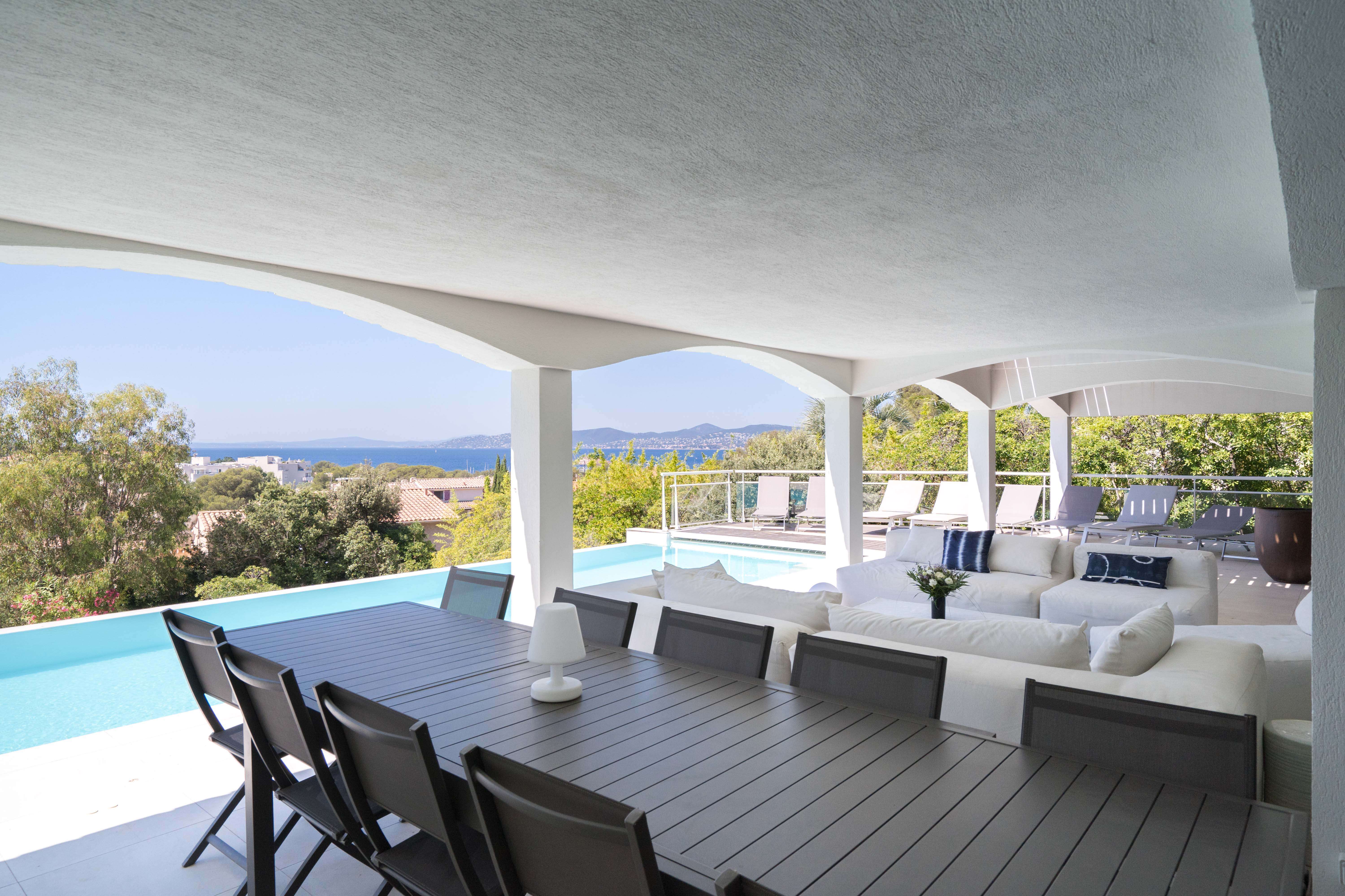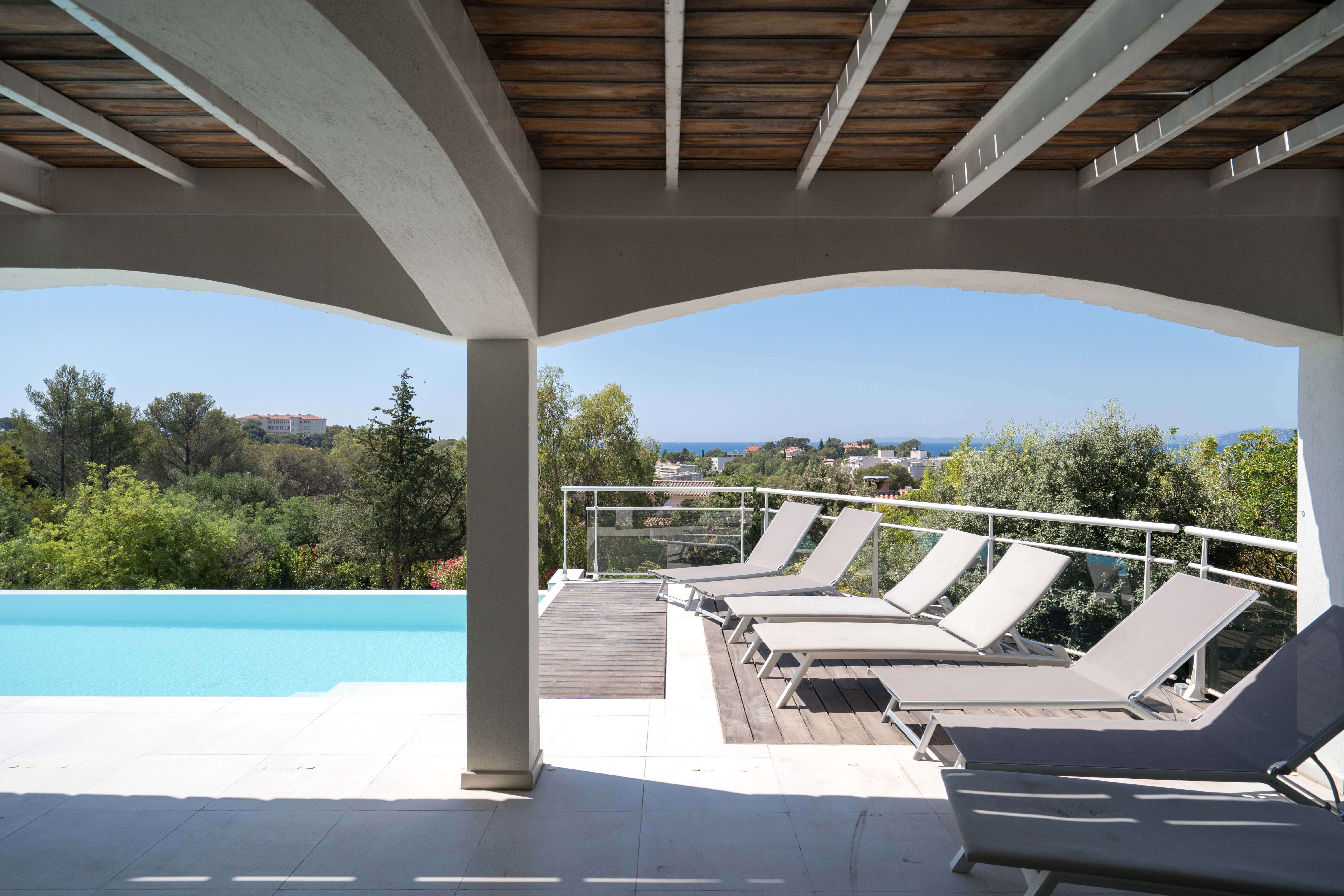The Villa Ciel Bleu is a luxurious holiday home for 6 people with a private pool in Saint-Raphaël, on the French Riviera. It is a private accommodation on the ground floor of this villa. You will have private access to the heated pool, jacuzzi, and hammam, as well as the garden and petanque court. With 120m² of stunning terraces, you will enjoy breathtaking sea views up to Saint-Tropez.
