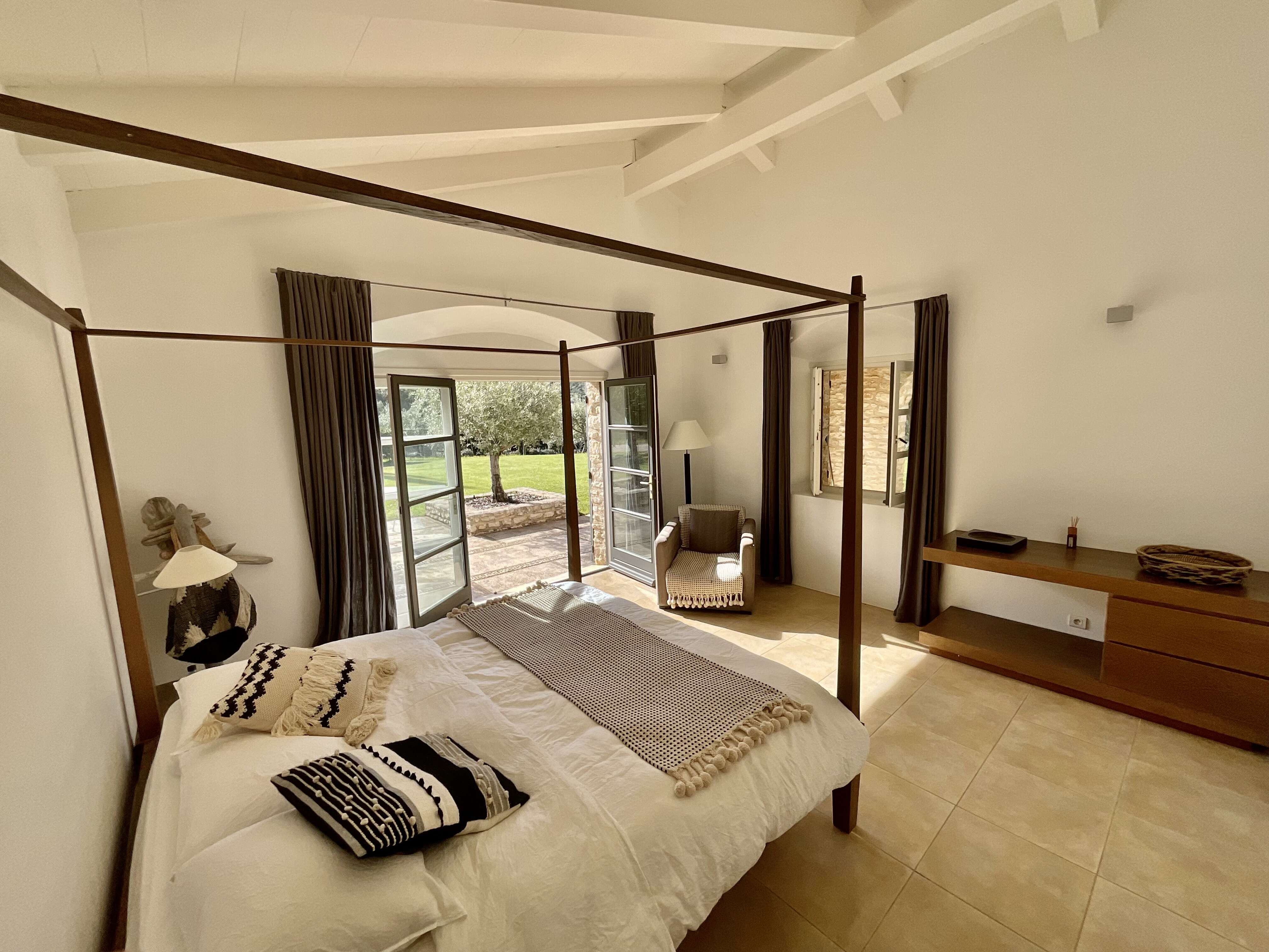 Inside, you will find a modern and spacious open space decorated with taste. The fully equipped open kitchen leads to a bright living room with an open fire and a television with streaming. Whether with family or friends, the villa can comfortably accommodate up to 9 people with its 4 bedrooms and 4 bathrooms, including 1 outdoor shower.