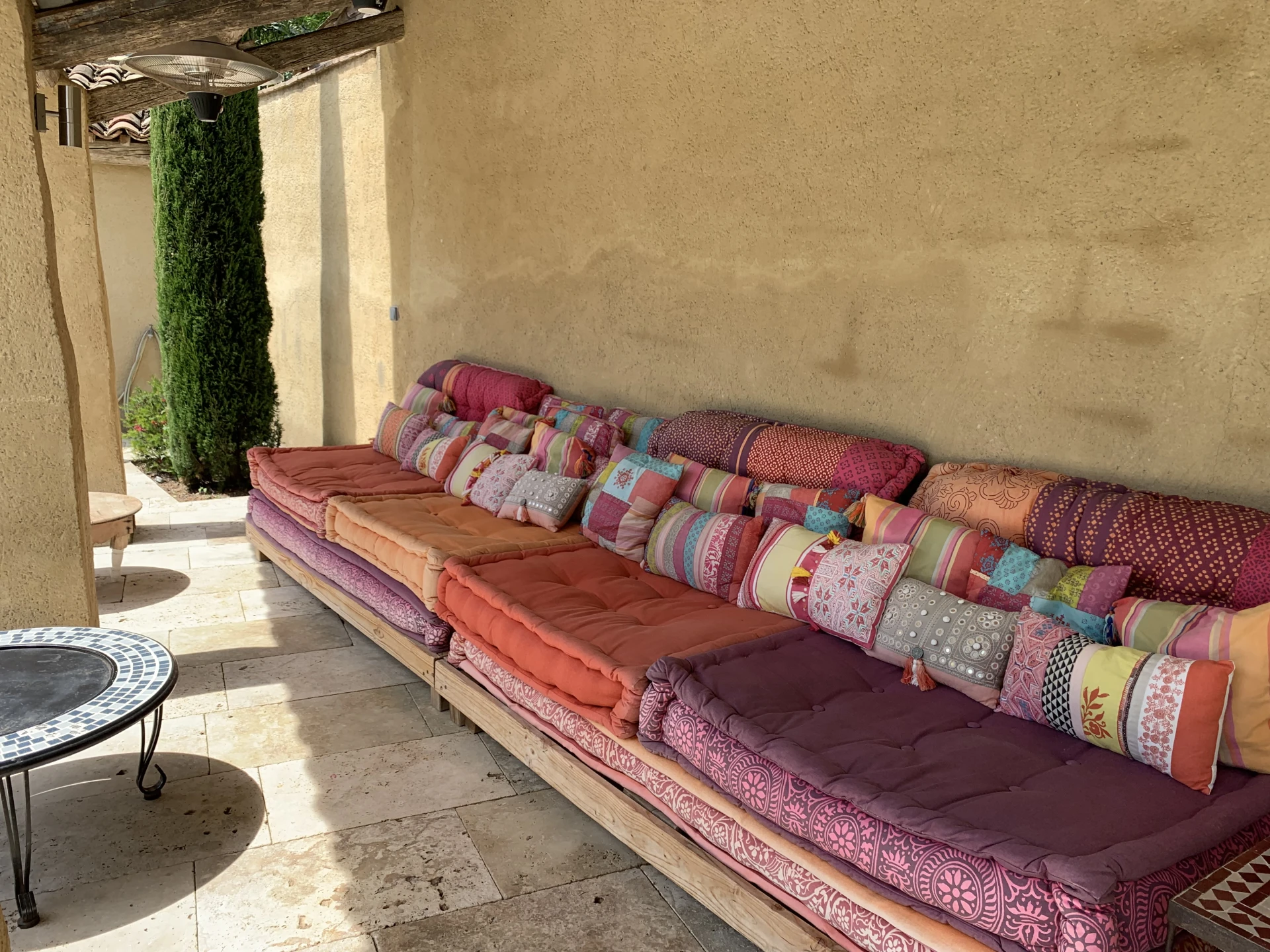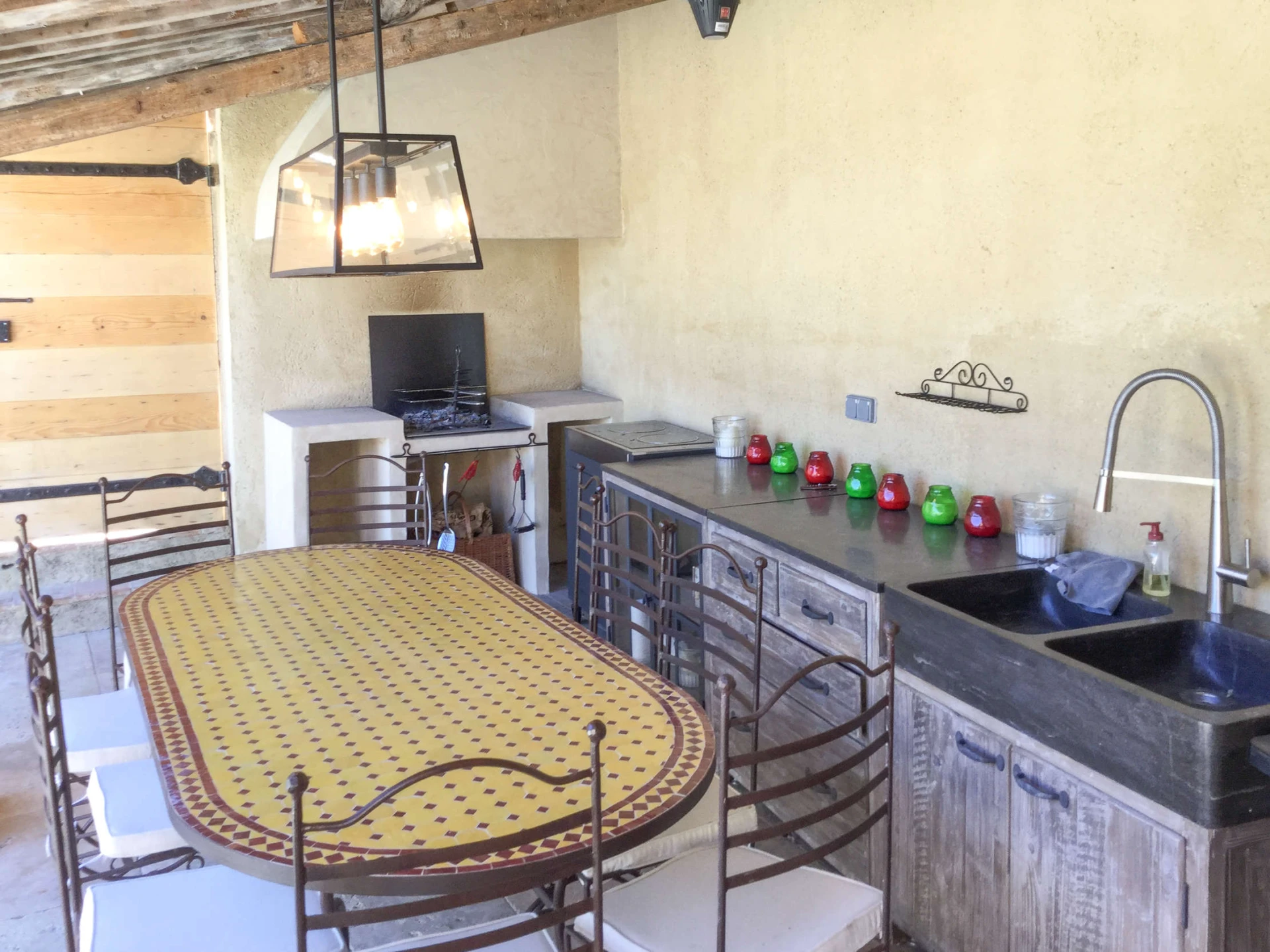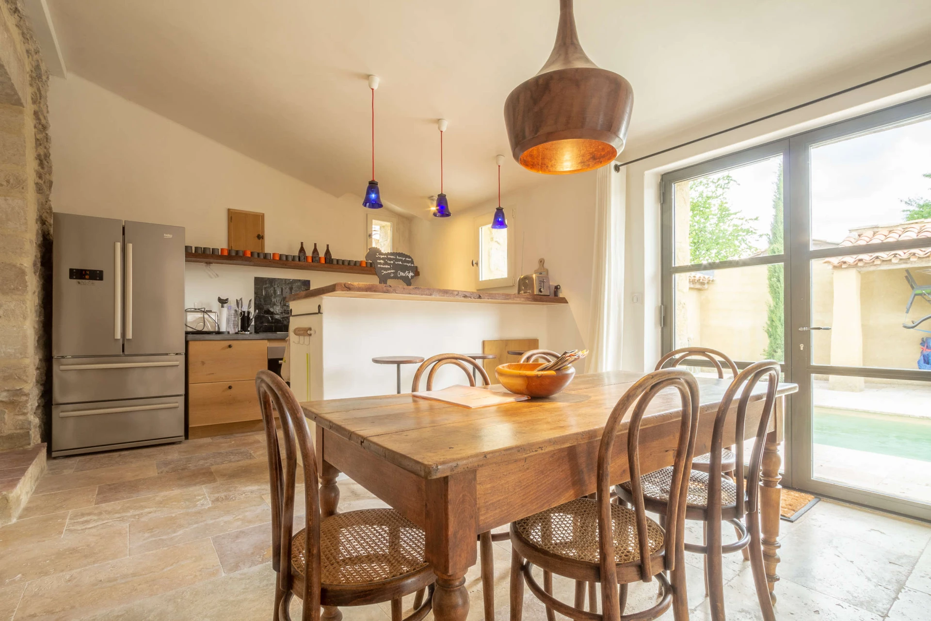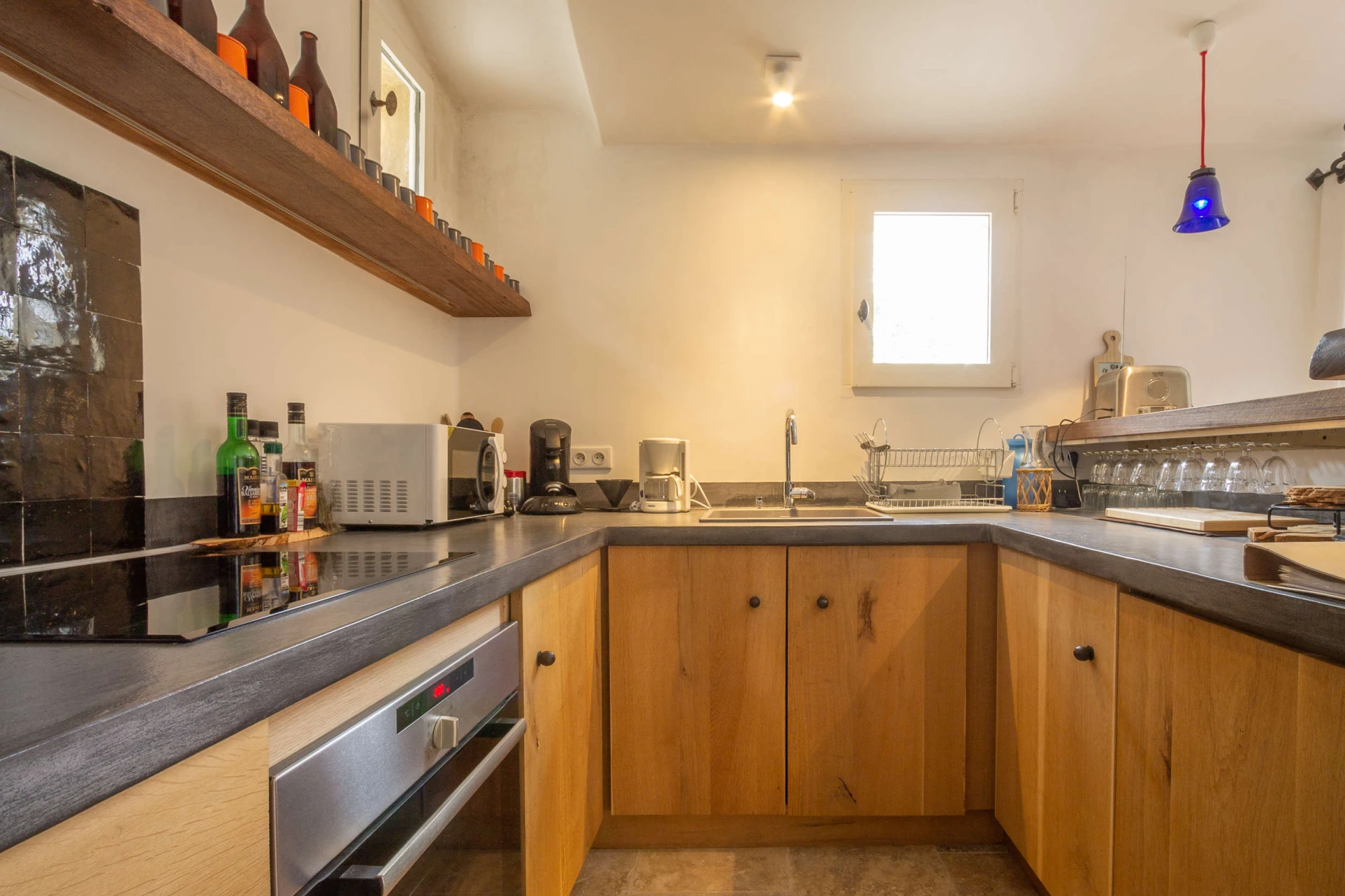 This holiday home with private pool is a renovated bergerie, a former farm house, and was furnished with great taste. The interior is bathes in natural sunlight and it's very cozy and stylish. Very comfertable vintage sleep couch for 2 persons. The open kitchen,with practical American fridge and 2 freezer drawers, opens onto the large private pool (3x8m-save for children). By the pool, there are many open and covered terraces that are very pleasant. Thanks to the summer kitchen with you can easily live outside all day. The summer kitchen has 2 induction plates, plancha and grill + a classic barbecue with coal.