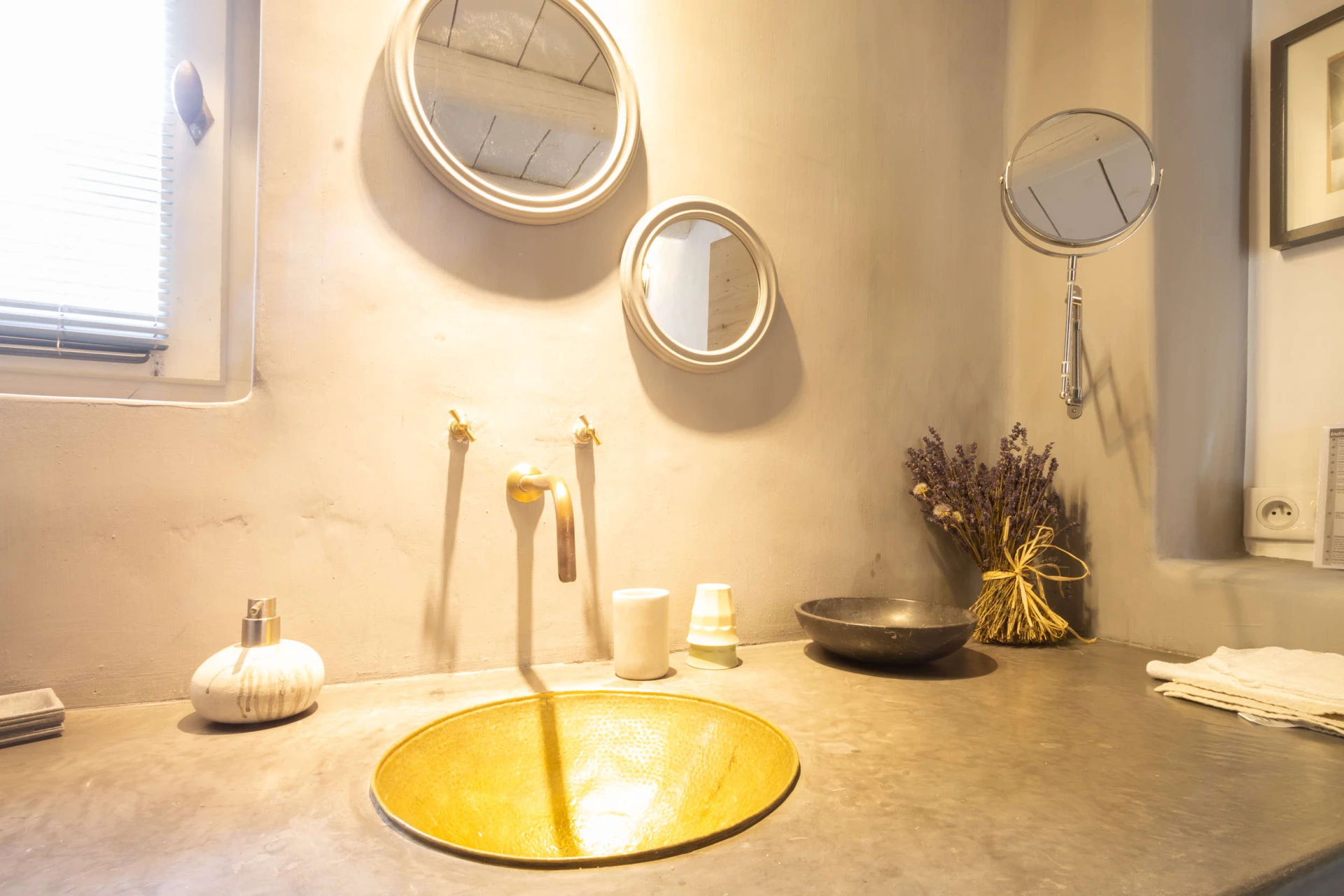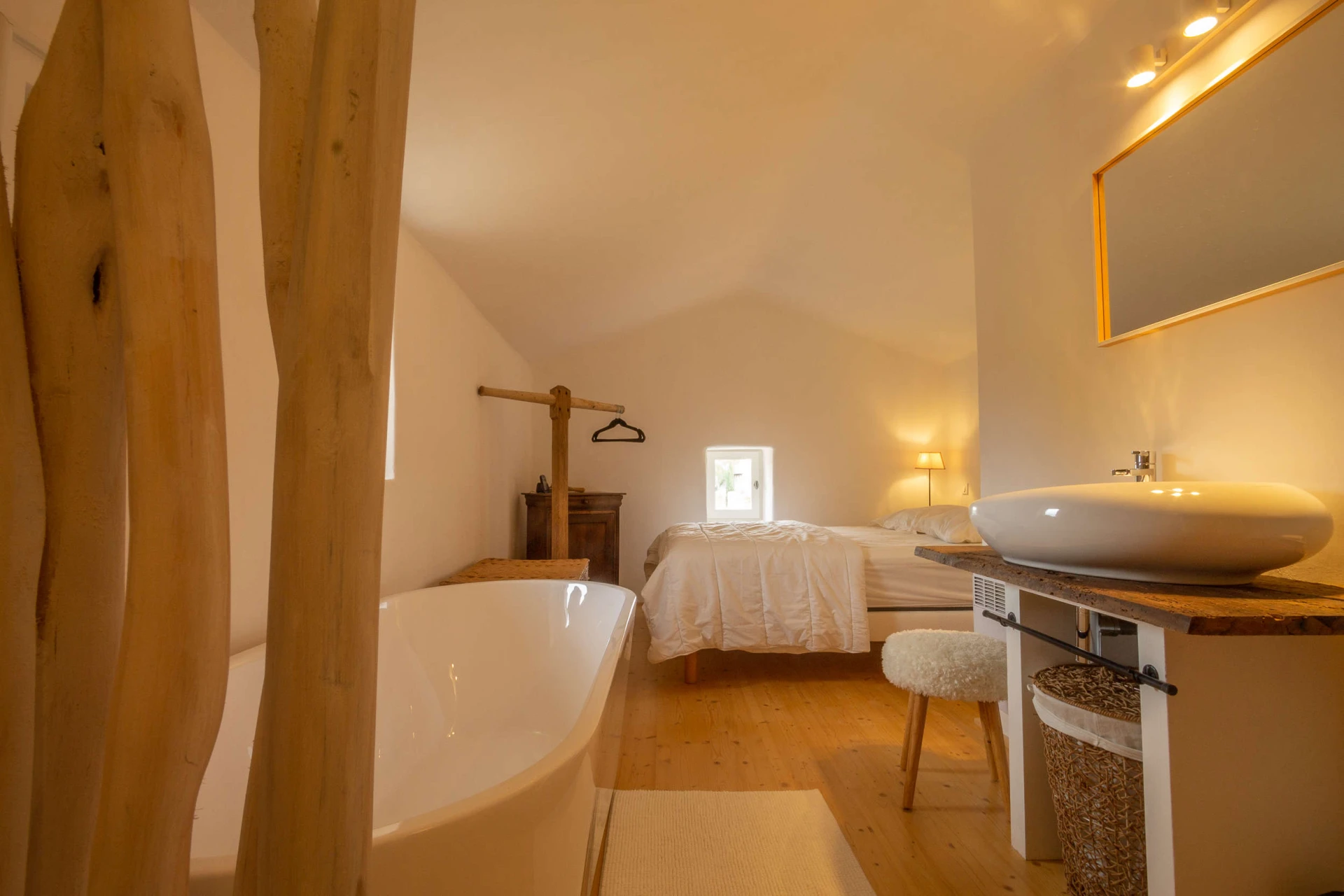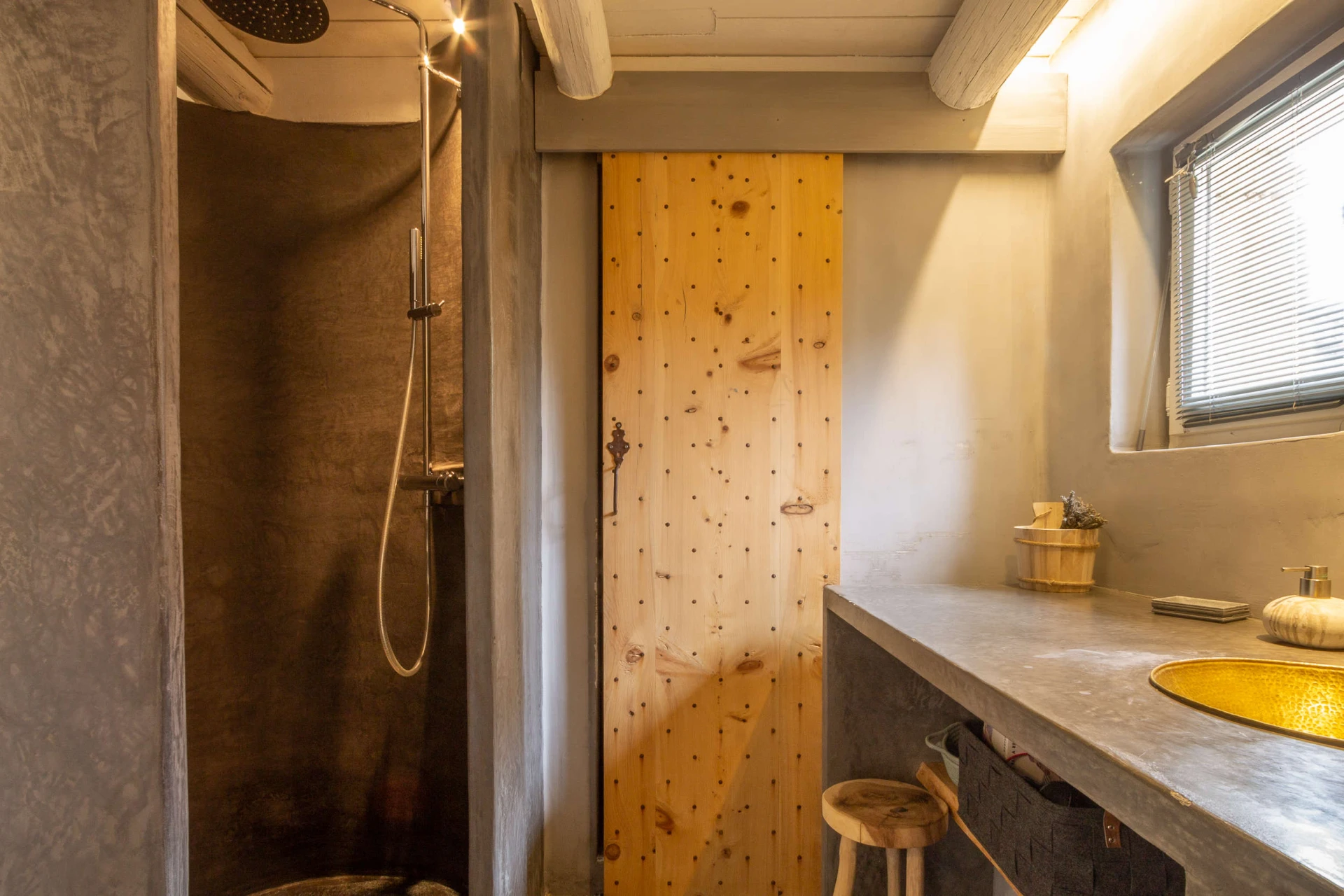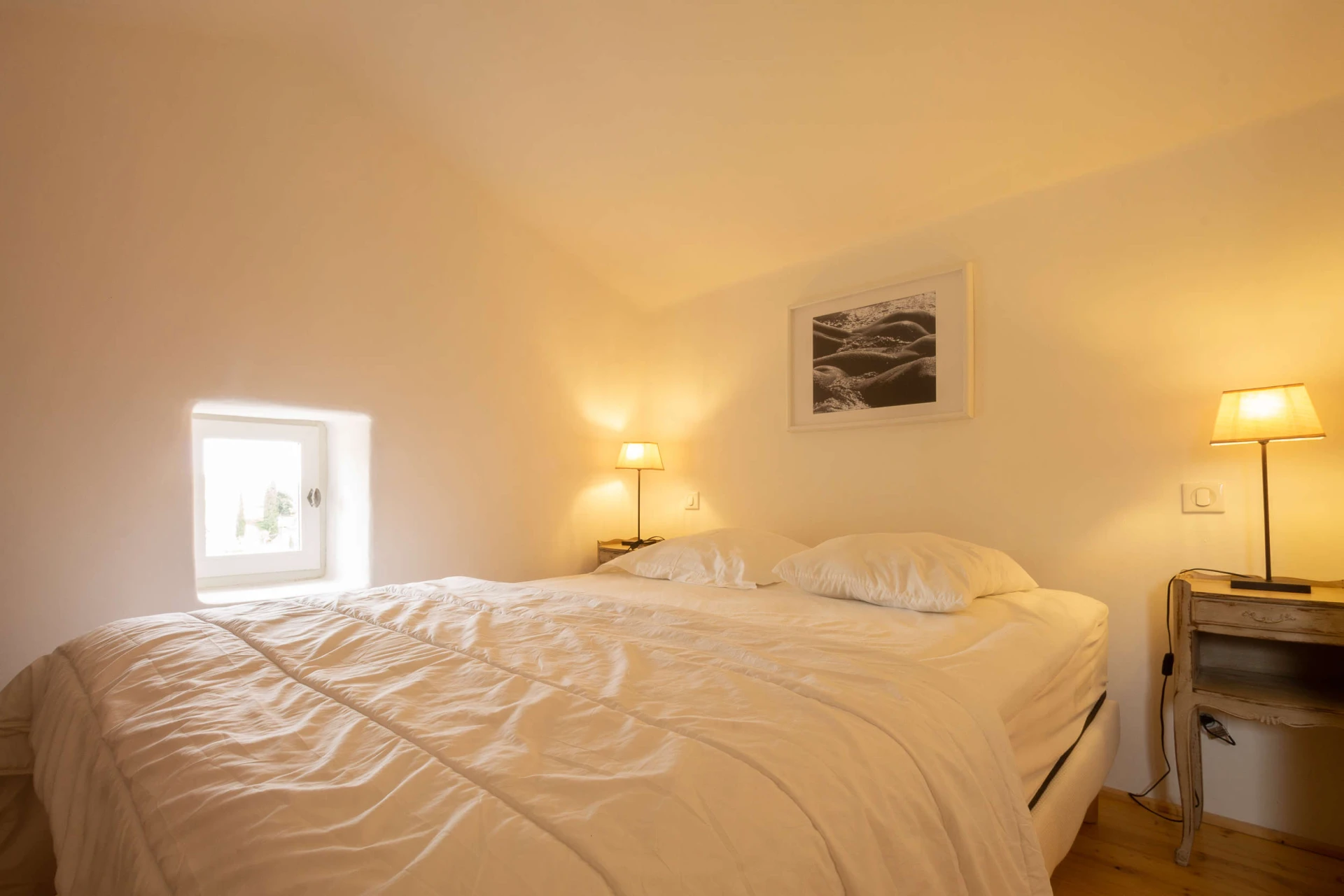 This holiday home with private pool is a renovated bergerie, a former farm house, and was furnished with great taste. The interior is bathes in natural sunlight and it's very cozy and stylish. Very comfertable vintage sleep couch for 2 persons. The open kitchen,with practical American fridge and 2 freezer drawers, opens onto the large private pool (3x8m-save for children). By the pool, there are many open and covered terraces that are very pleasant. Thanks to the summer kitchen with you can easily live outside all day. The summer kitchen has 2 induction plates, plancha and grill + a classic barbecue with coal.