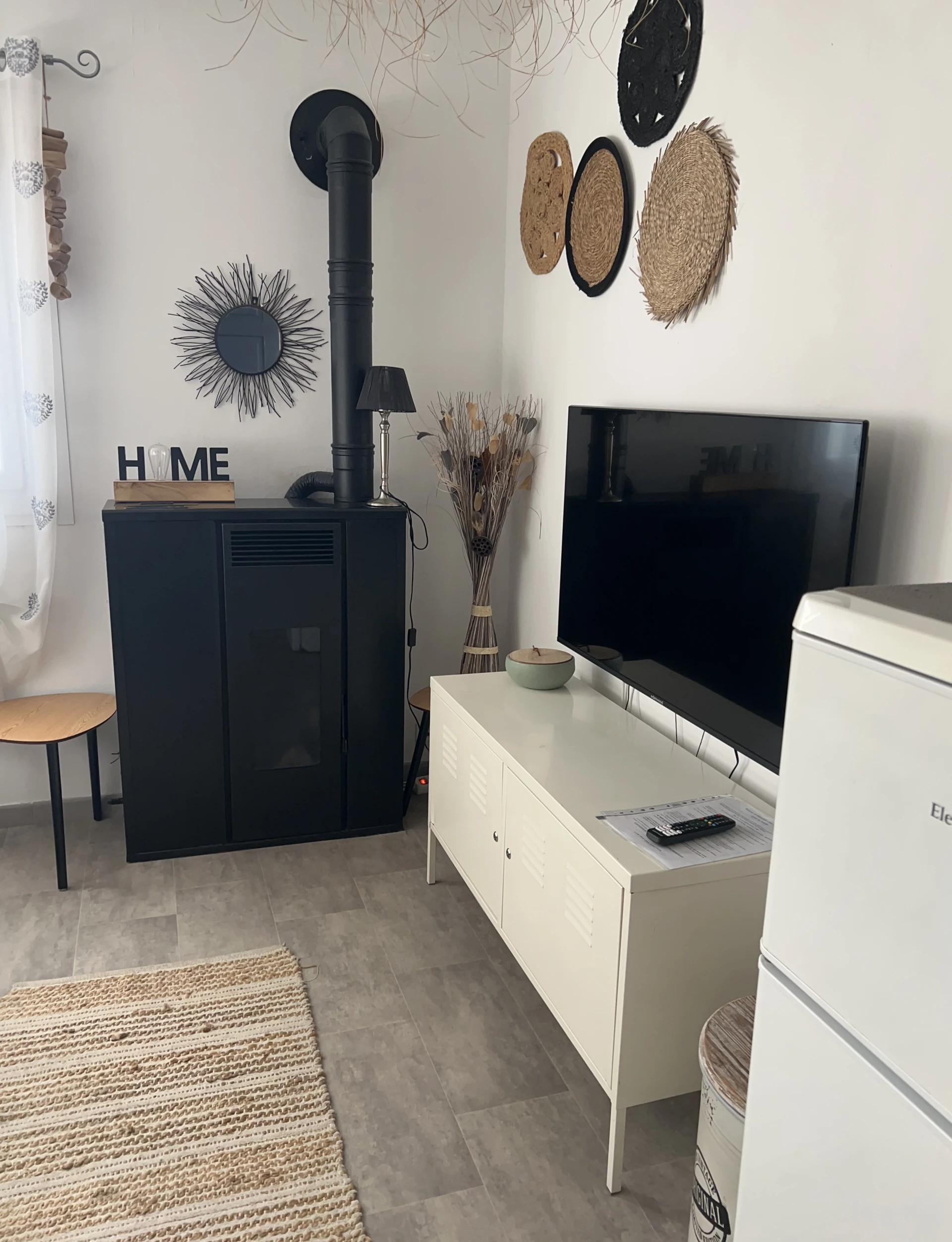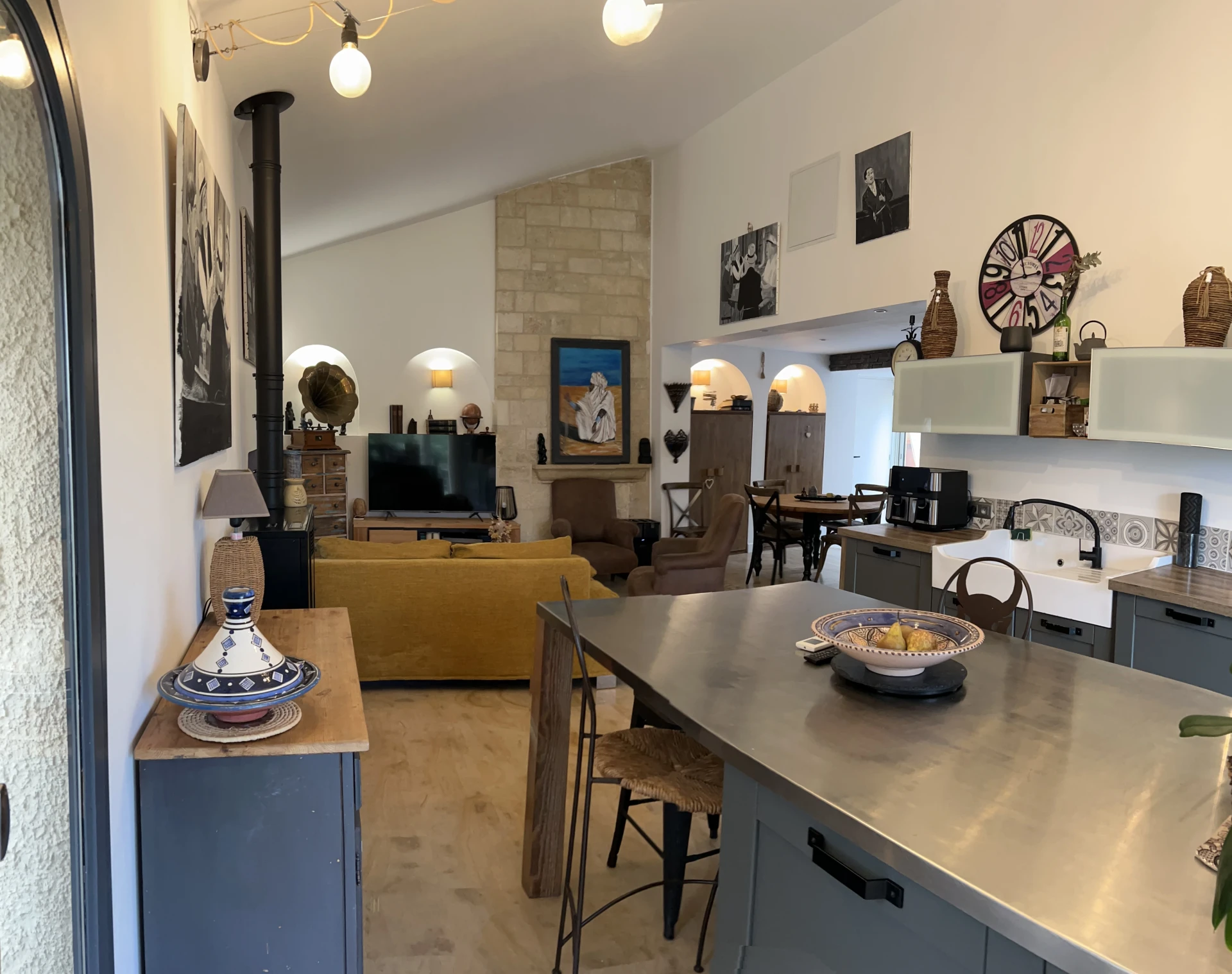 This vacation home stands out thanks to its refined interior design, featuring numerous objects and works of art from all corners of the world. The main building has a beautiful open kitchen, a living room, and a dining room, all combined into a spacious and bright living area. There are also two bedrooms that can accommodate up to four people. Adjacent to the vacation home is a separate studio that offers complete privacy for two additional guests, with its own kitchenette, bathroom, and bedroom.