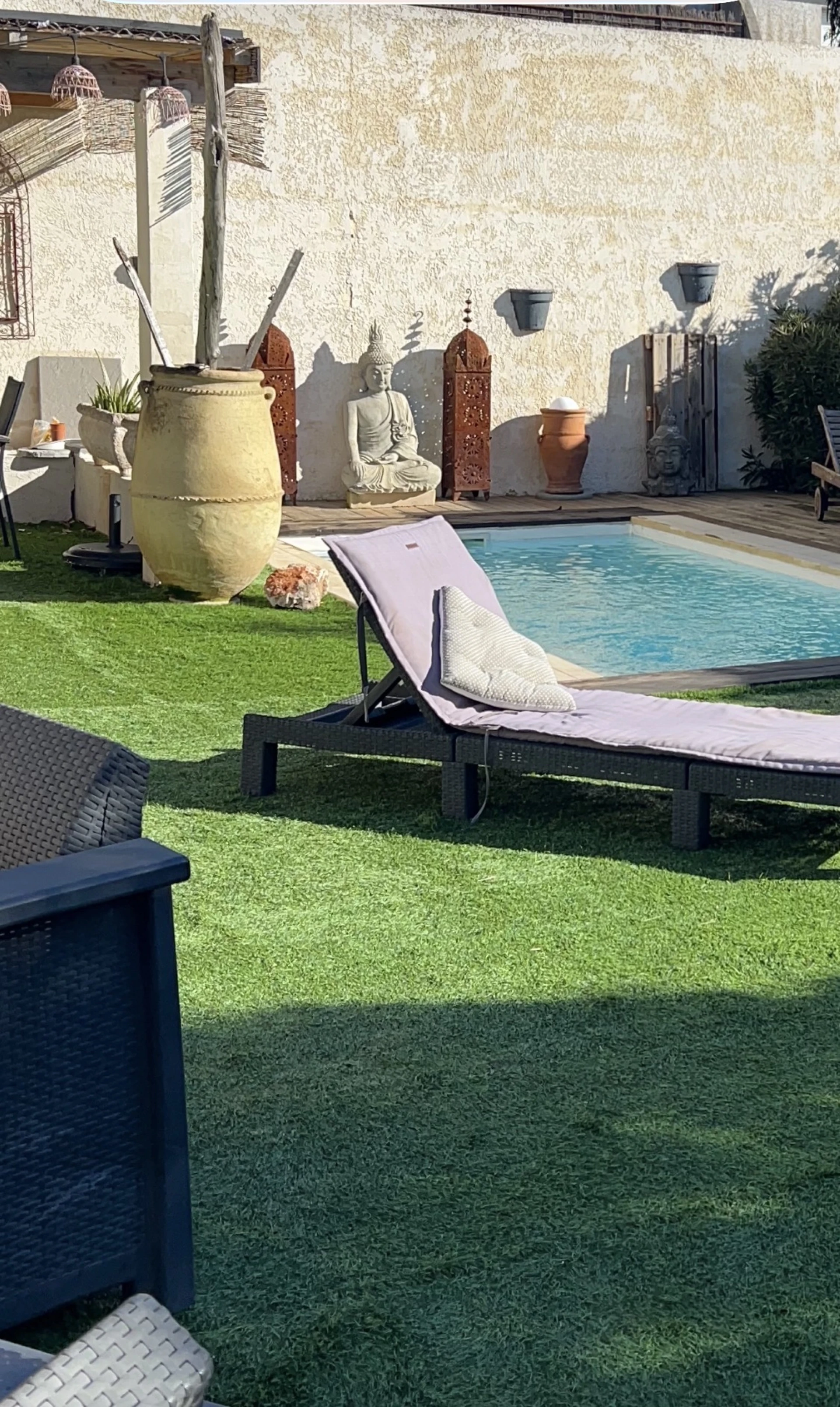 Welcome to Maison Shanti, a warm and cozy vacation rental with private pool, suitable for up to 6 people. Located less than 10 km from Montpellier, in Saint-Jean-de-Védas, in the Hérault department (southern France), the house lives up to its name: "Shanti," synonymous with peace and serenity.