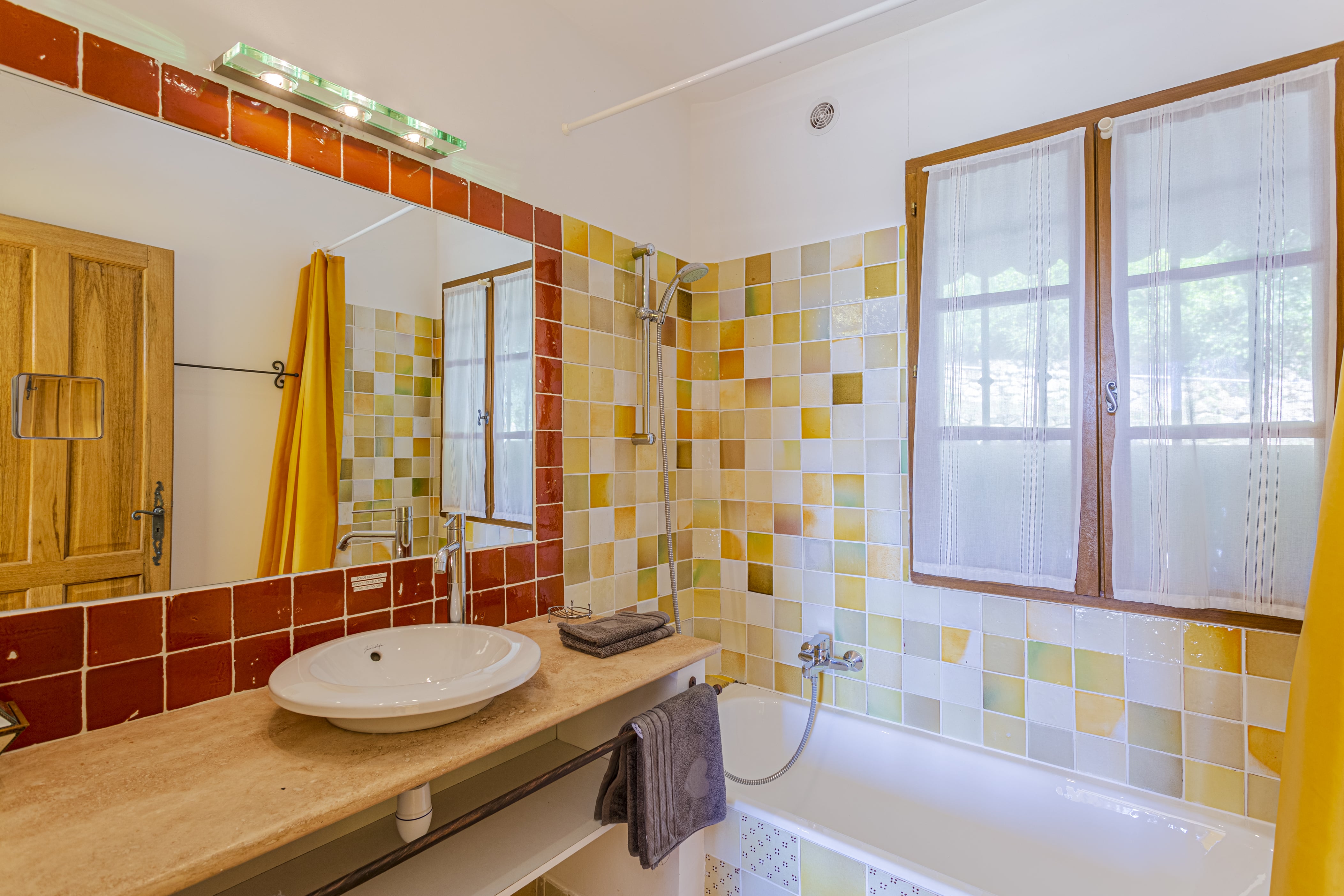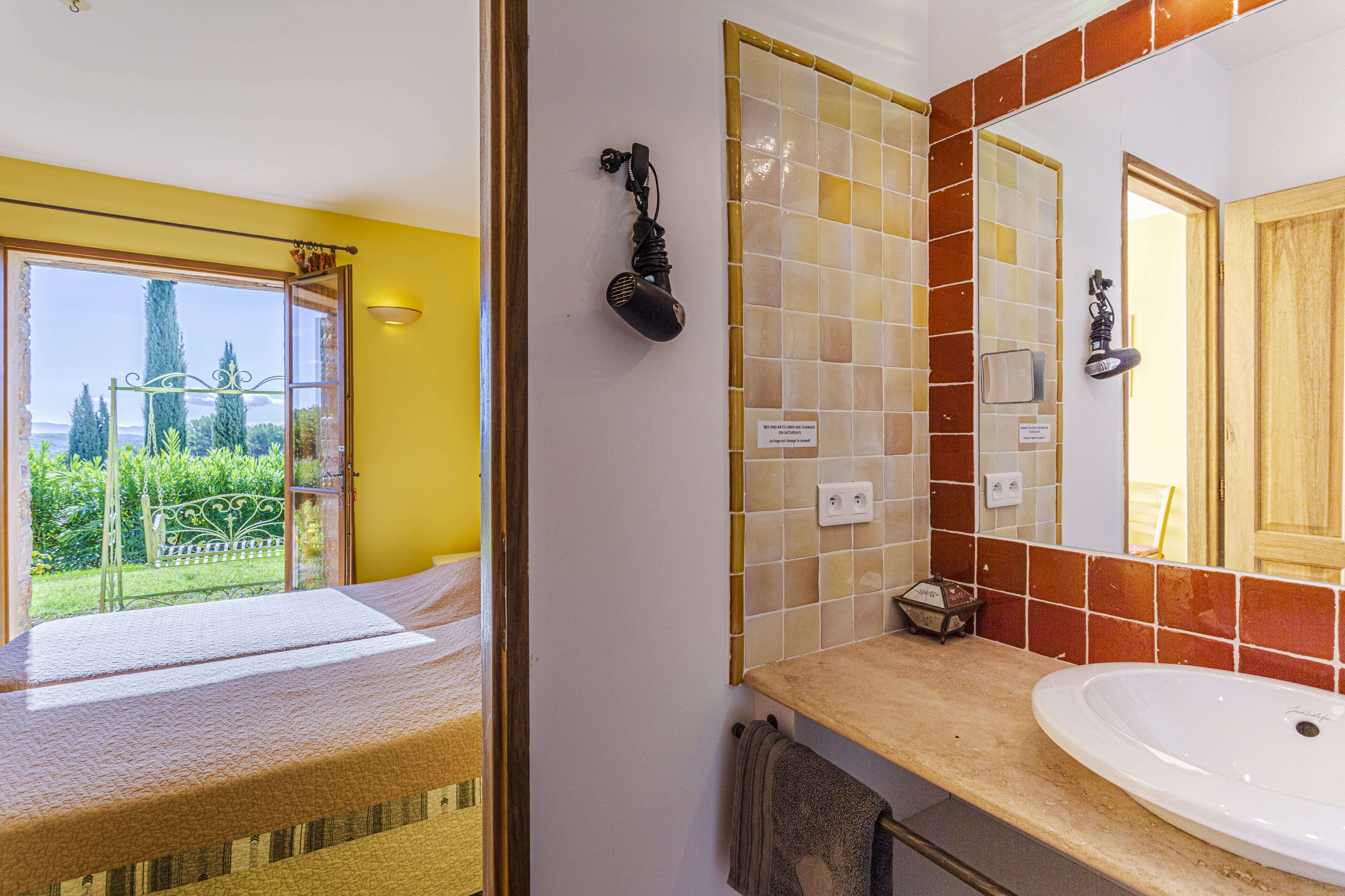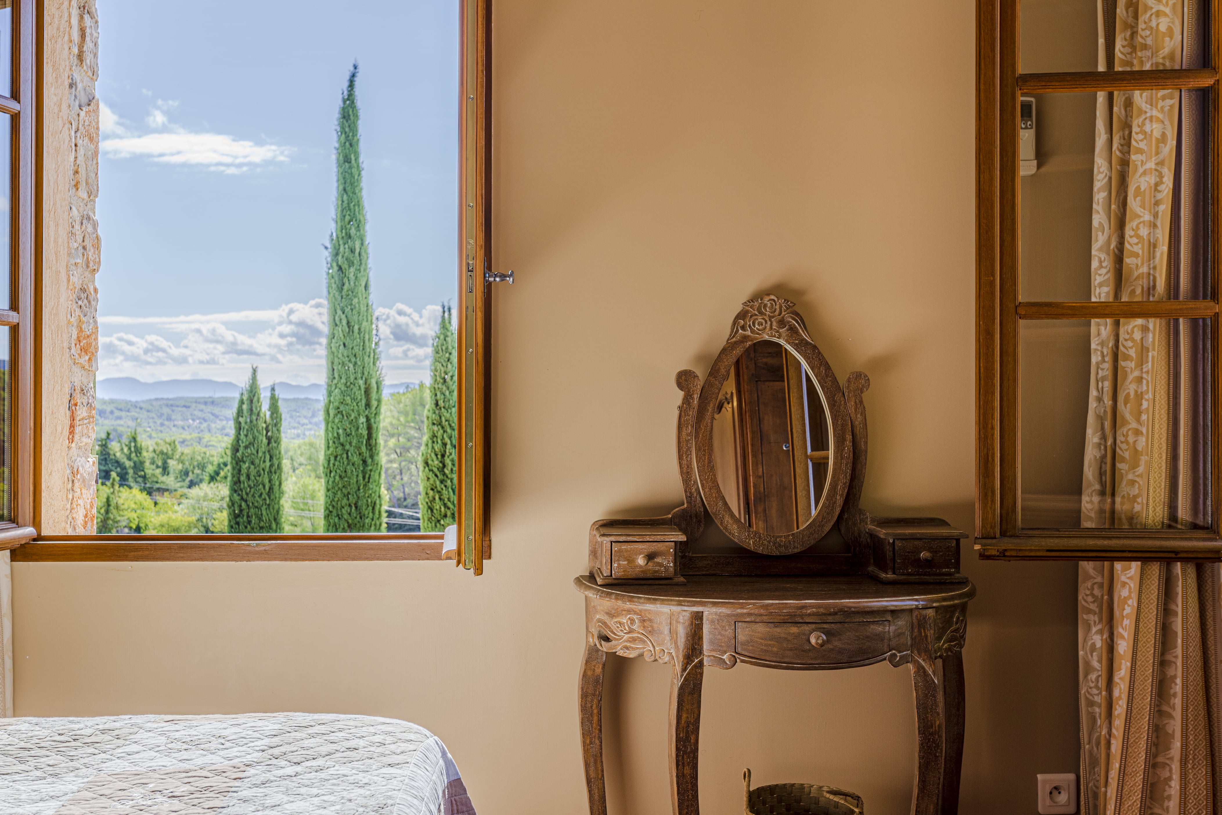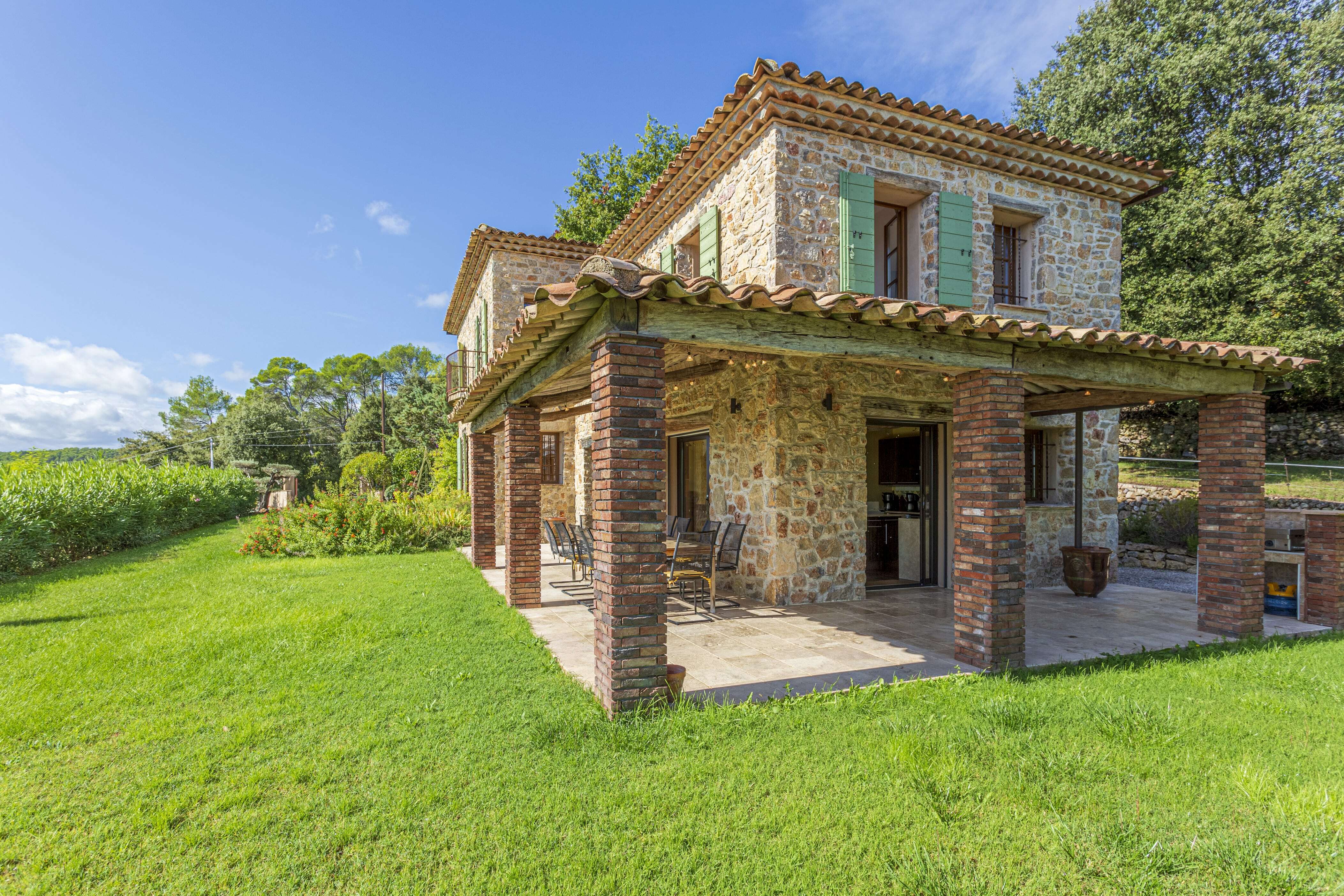 The holiday home in Lorgues with swimming pool was built in the authentic style of the region with a beautiful, attractive, natural stone facade in combination with authentic oak beams as lintels above the window frames. The wooden shutters are double brushed before installation to bring back the character of an old bastide even more vividly.