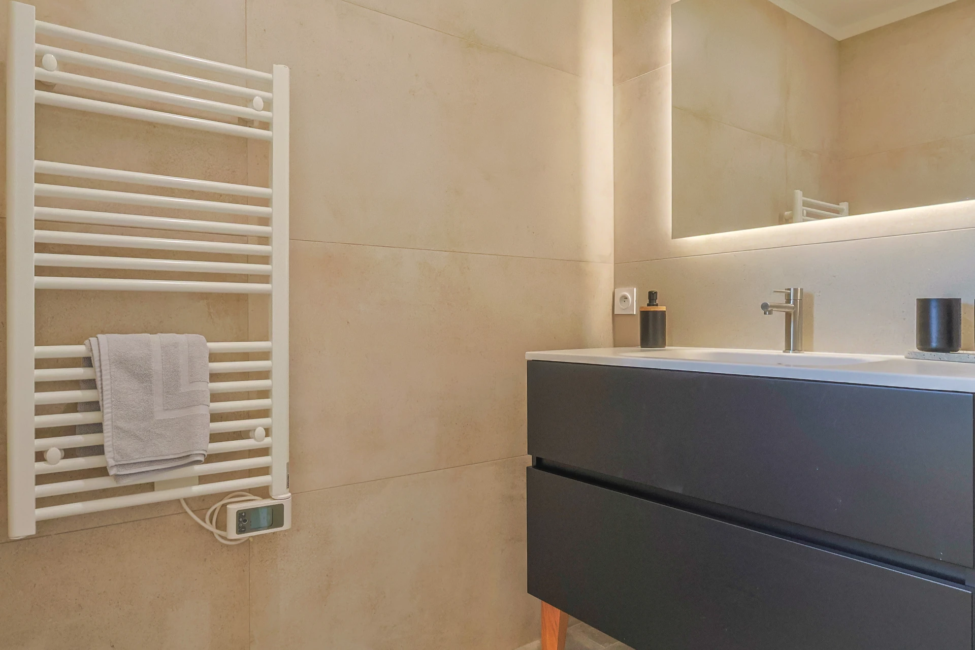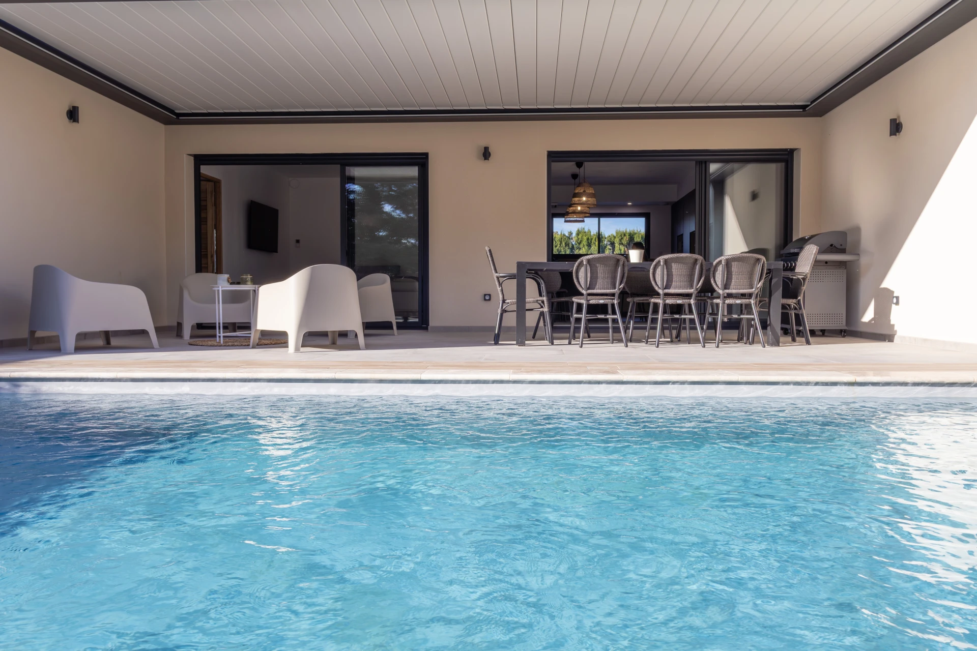 Enjoy a beautifully landscaped garden with a covered terrace by a bioclimatic pergola, ideal for al fresco dining. There is also a comfortable outdoor lounge area, perfect for relaxing in the shade with a drink. The private pool (9 x 3.5 m, depth: 1.4 m) can be heated on request (with supplement in April; May, June, September and October) and is equipped with lighting and an electric safety cover. The pool is open from the Easter holidays until the end of October. For even more fun, guests can use the gas barbecue and enjoy games on the petanque court.