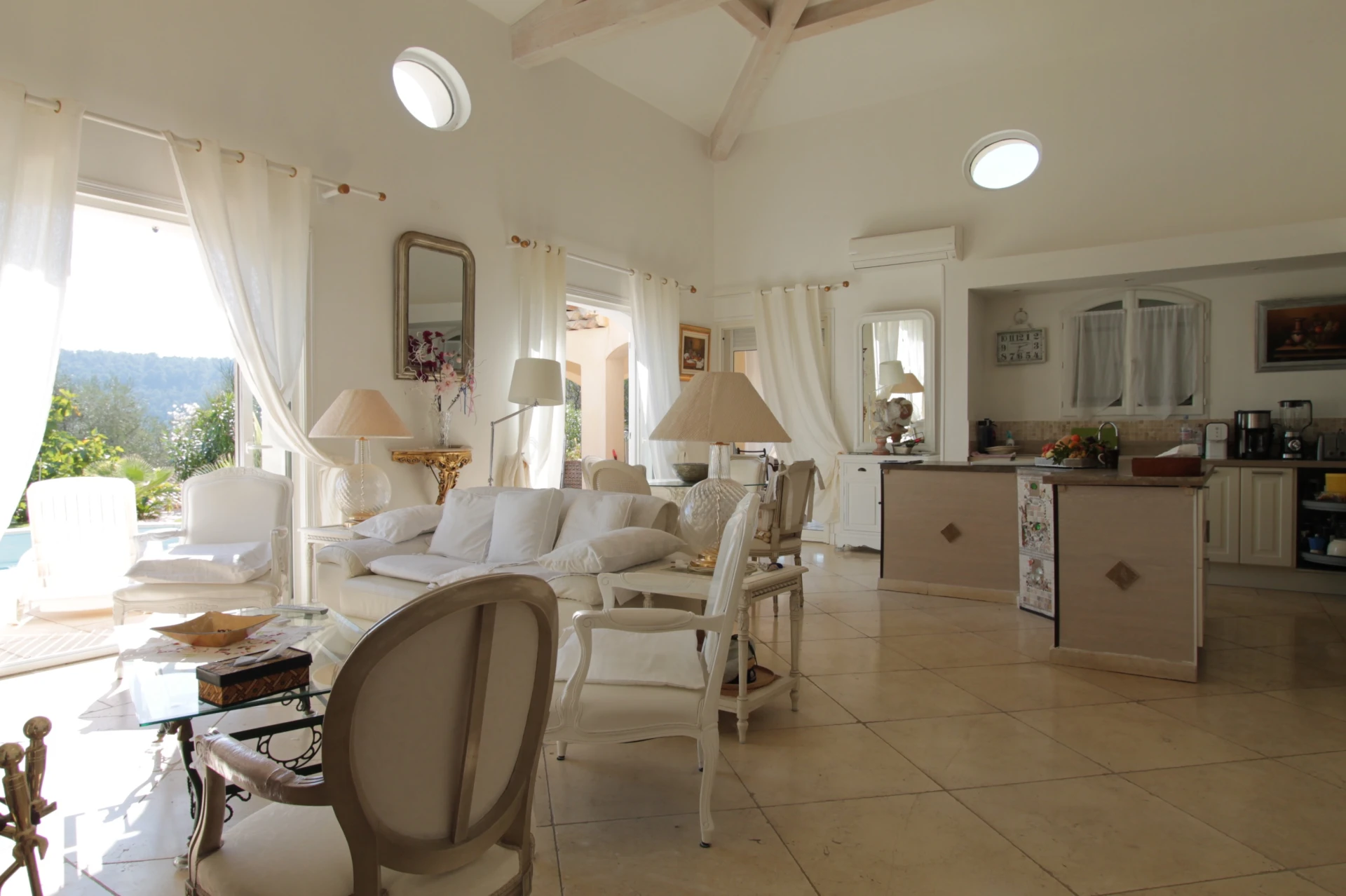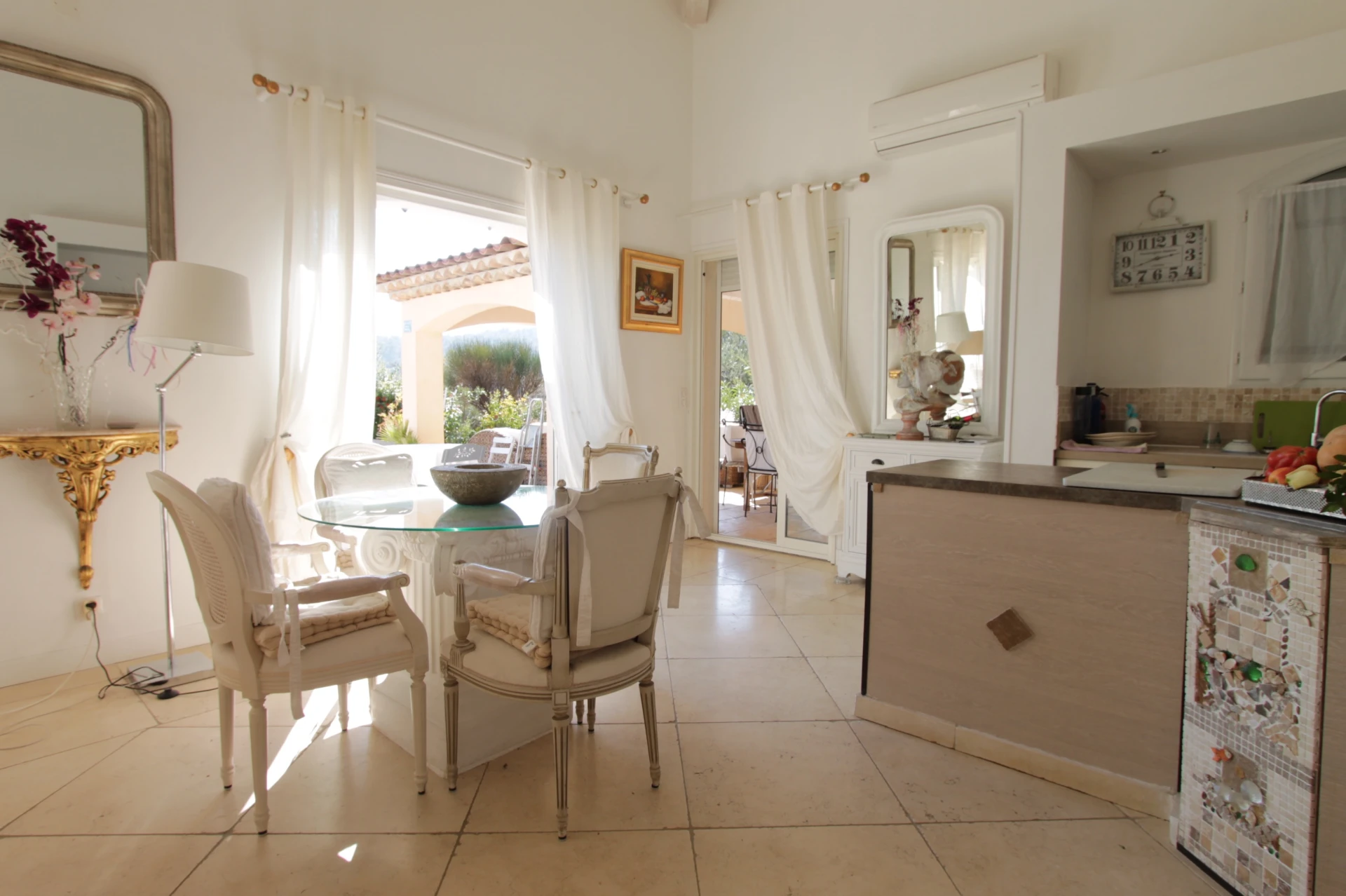 The holiday home has a cosy interior with lots of light. The kitchen is very well equipped and there is air-conditioning in the living room. Both bedrooms offer direct access to the terrace and swimming pool.