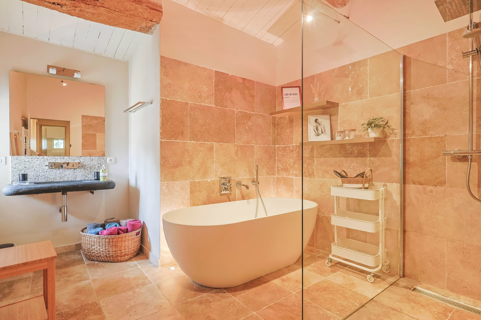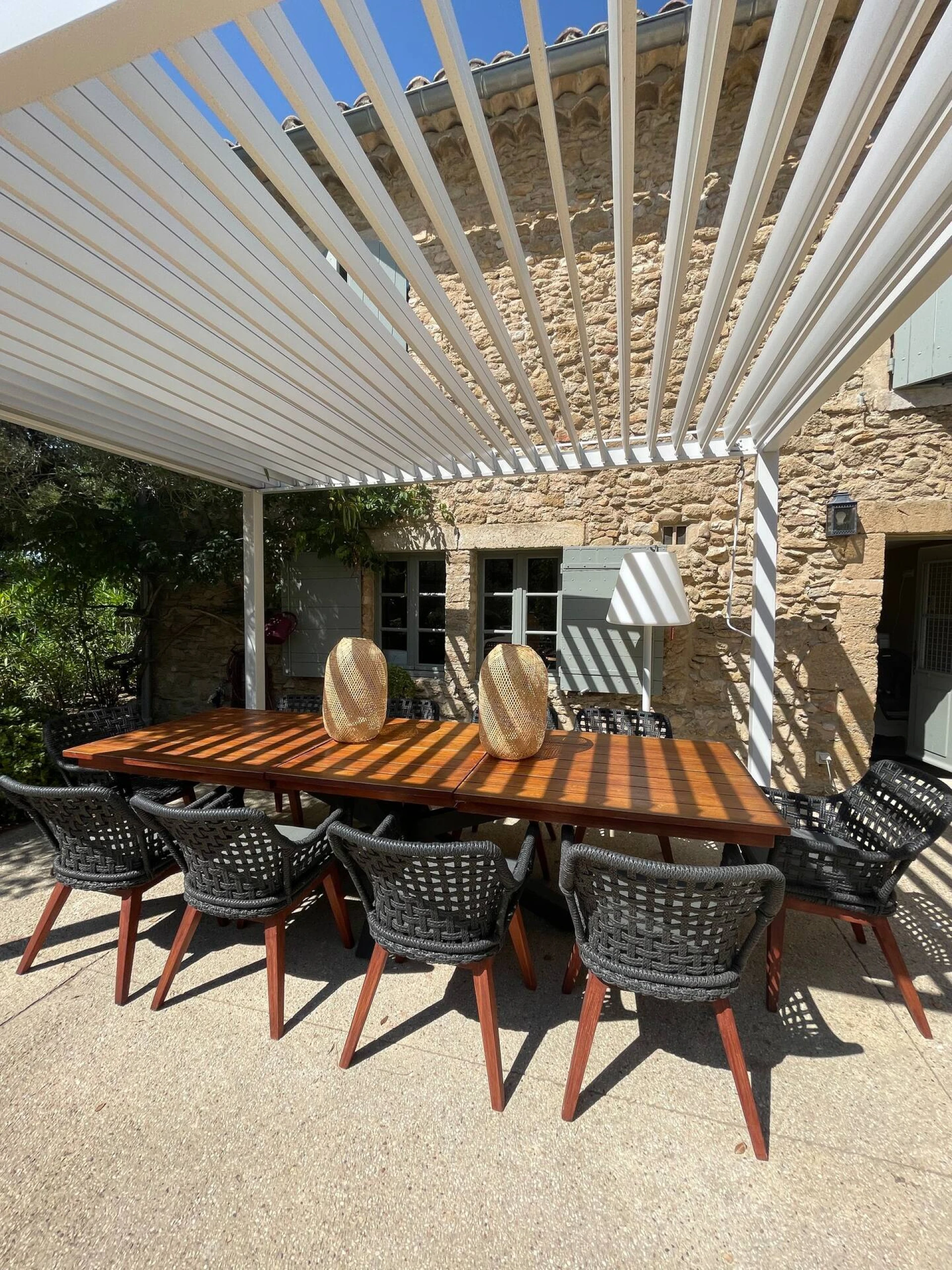 This holiday home in Provence with beautiful private pool (6x3m - 160cm deep) is surrounded by a beautiful garden where colourful flowers and exotic plants blend harmoniously. An attractive terrace features elegant garden furniture, perfect for outdoor dining. Comfortable loungers invite you to relax, while a bioclimatic pergola, which can be adapted to your needs, offers a shady or sunny spot at any time of day. Every detail has been thought of here to provide comfort and tranquillity in an enchanting natural setting where you can enjoy a moment of relaxation and conviviality. It is the ideal place to re-energise with family and friends, or simply to rediscover yourself.
