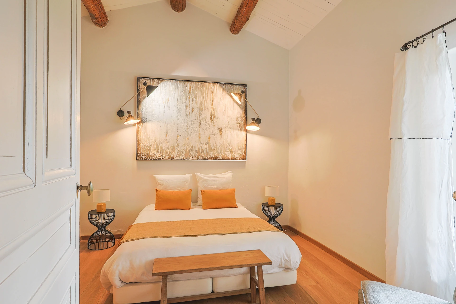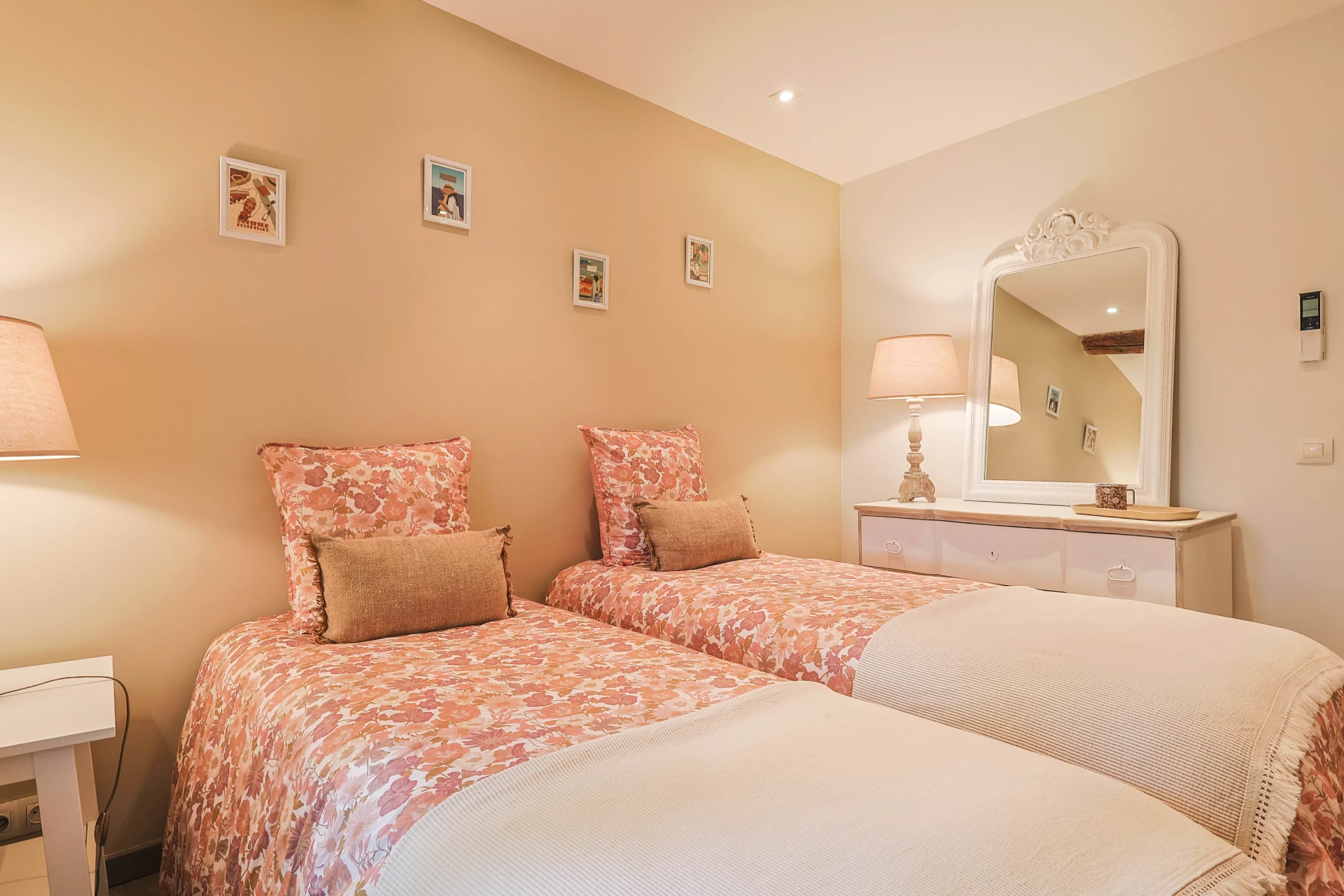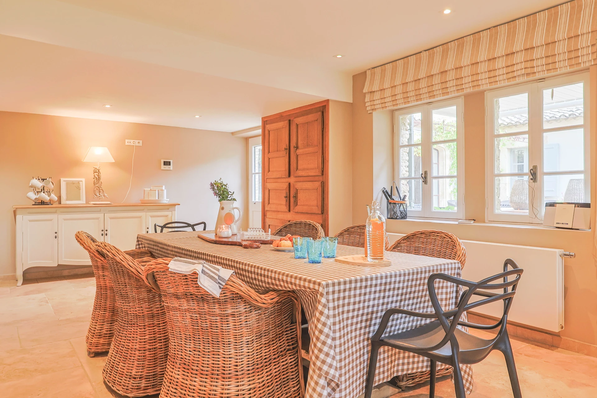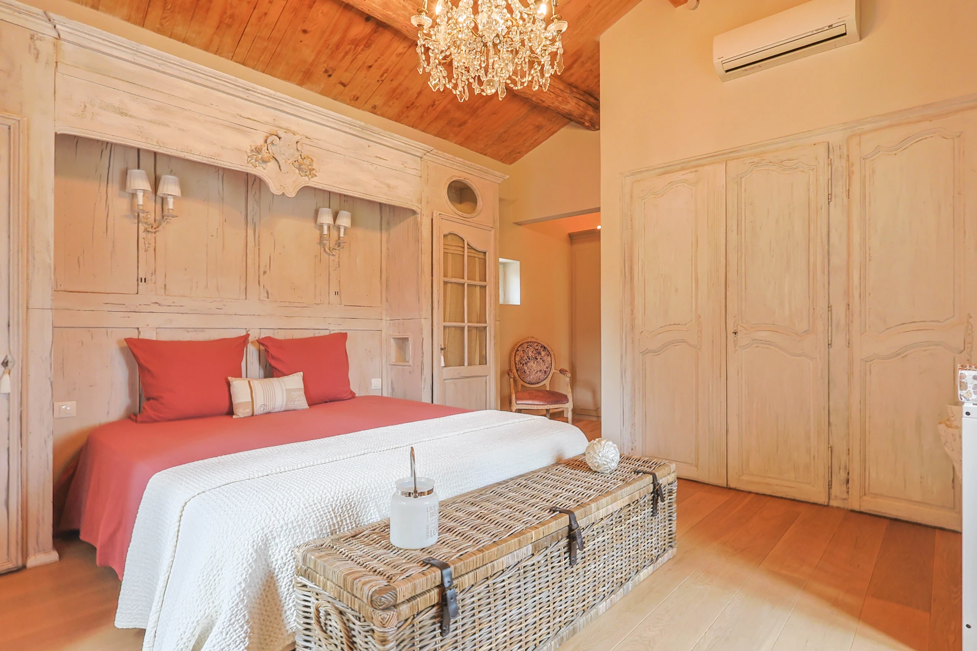 This cosy house has five bedrooms, decorated in soothing neutral tones. The wooden furniture, with its clean, modern design, adds a touch of sophistication. The ground floor has elegant tiled floors, while the first floor has solid parquet for a cosy atmosphere. The property is fully fenced, including a pool alarm. The villa is within walking distance of the village.