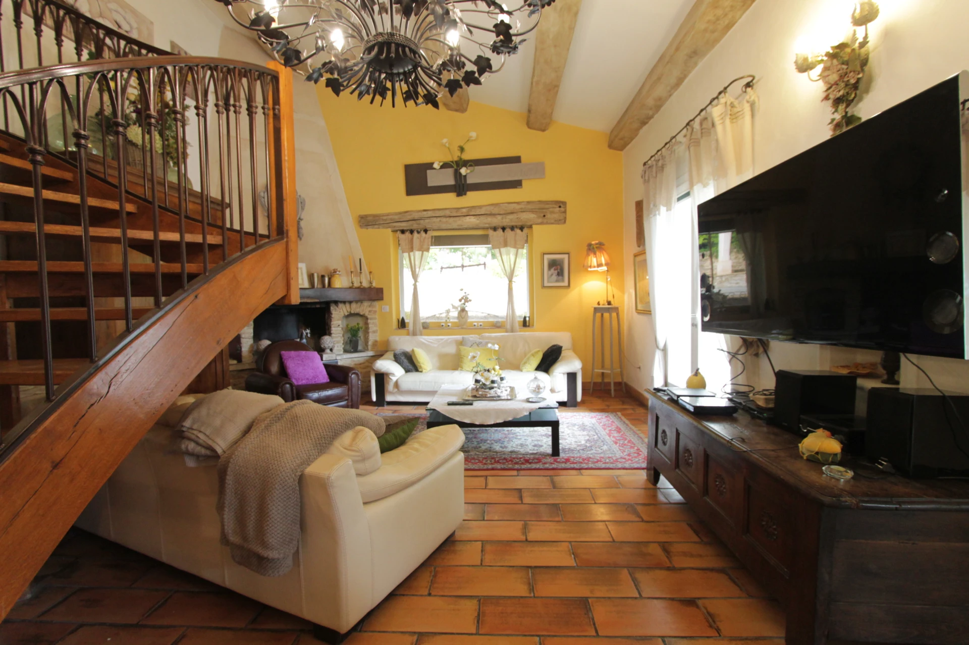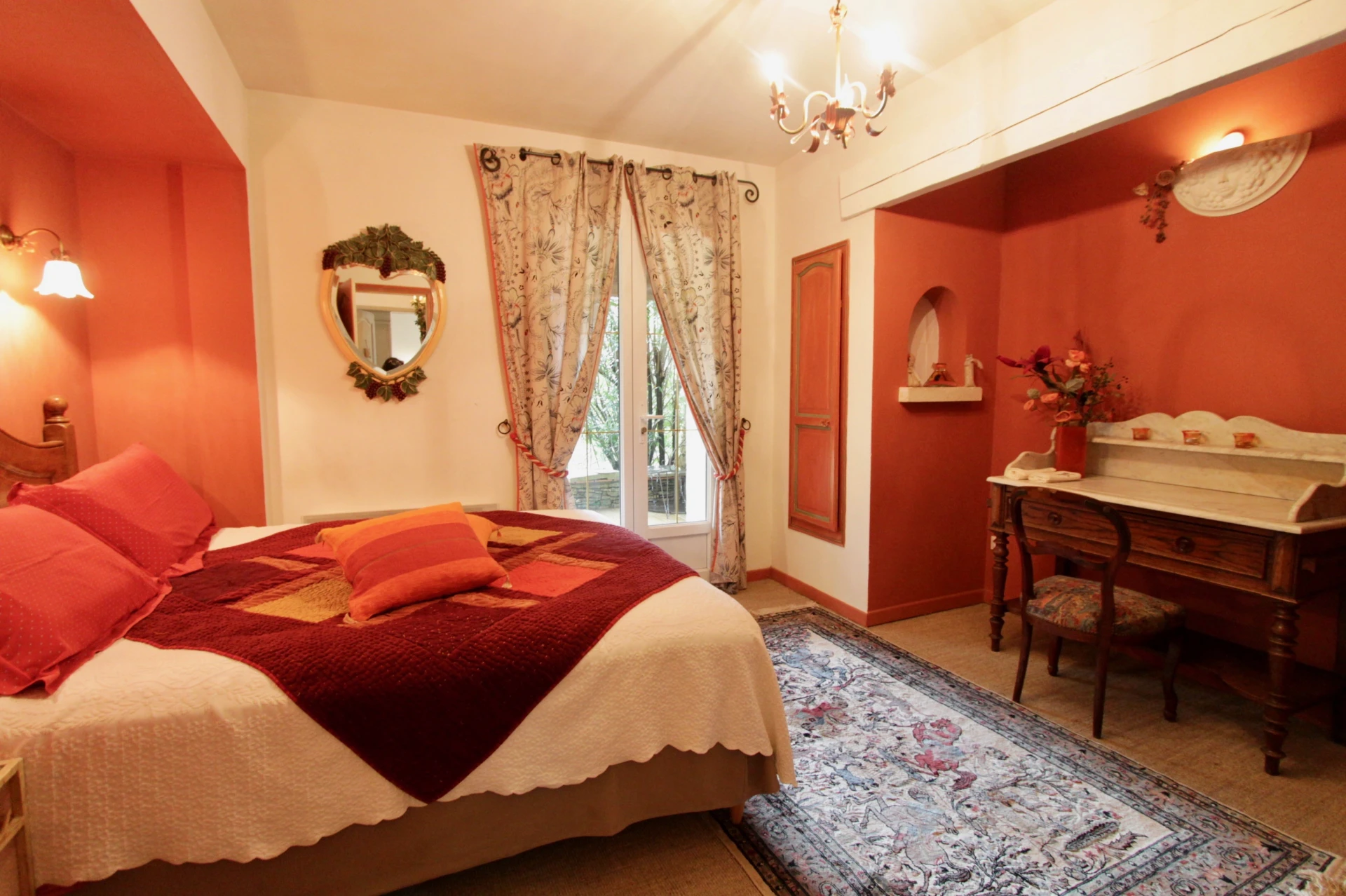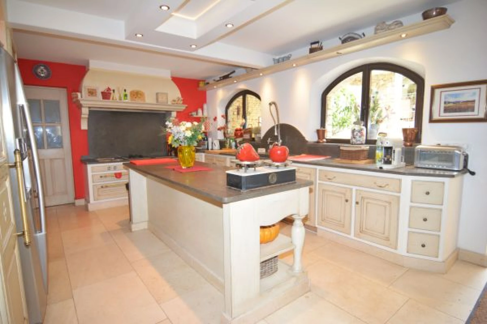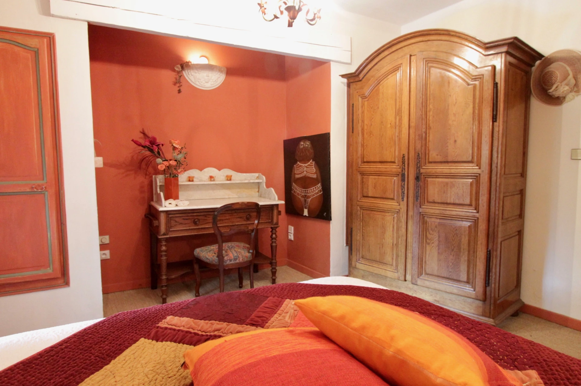 This holiday home in Provence with swimming pool is very charmingly decorated, combining both modern and authentic furniture. The kitchen is spacious with a large beautiful cooking island and teppaniaki, induction and stove present. The kitchen appliances are of superior quality. The two doors in the kitchen open onto a nice terrace. Some other nice advantages are the presence of 3 different kinds of coffee machines, a beer tab (you have to buy the beer yourself), and several spices and basic necessities are available for the tenants. From the living room you have a nice view of the infinity pool. There is a very large television with built-in speakers. There is also a bedroom en suite of 100m2 which is also luxuriously furnished.