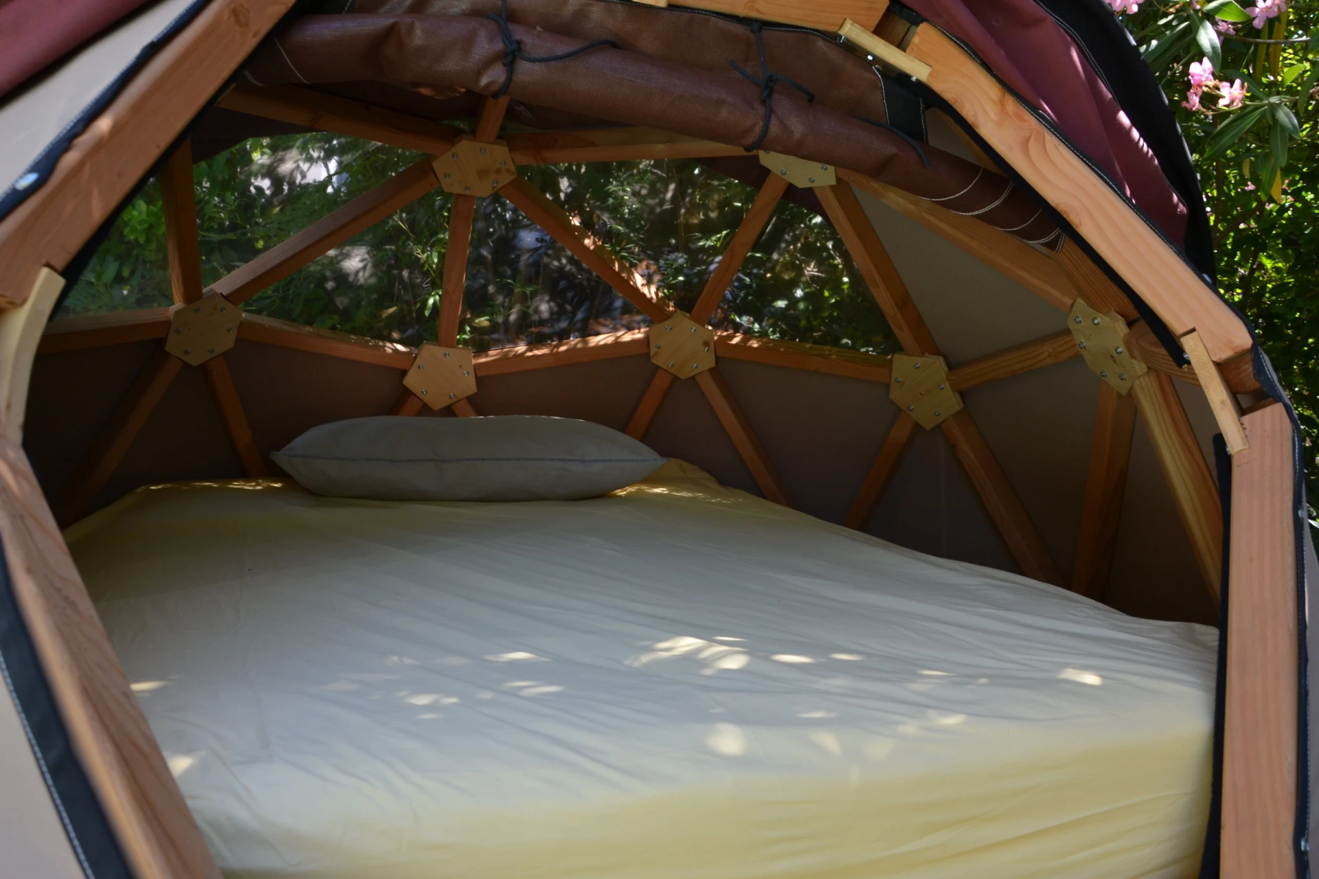 - An unusual annex in the garden: the starry dome: this is an intimate cocoon dome for 2 people, an unusual annex that can be used as an extra bed (140x190 mattress) or as a place to dream, take a nap, relax, spend a night contemplating the starry sky... This intimate, unheated cocoon is an annex that could be particularly suitable in the summer for children looking for adventure and a space of autonomy on the fringe of the main gîte