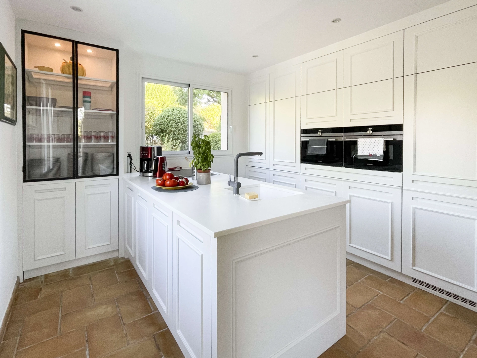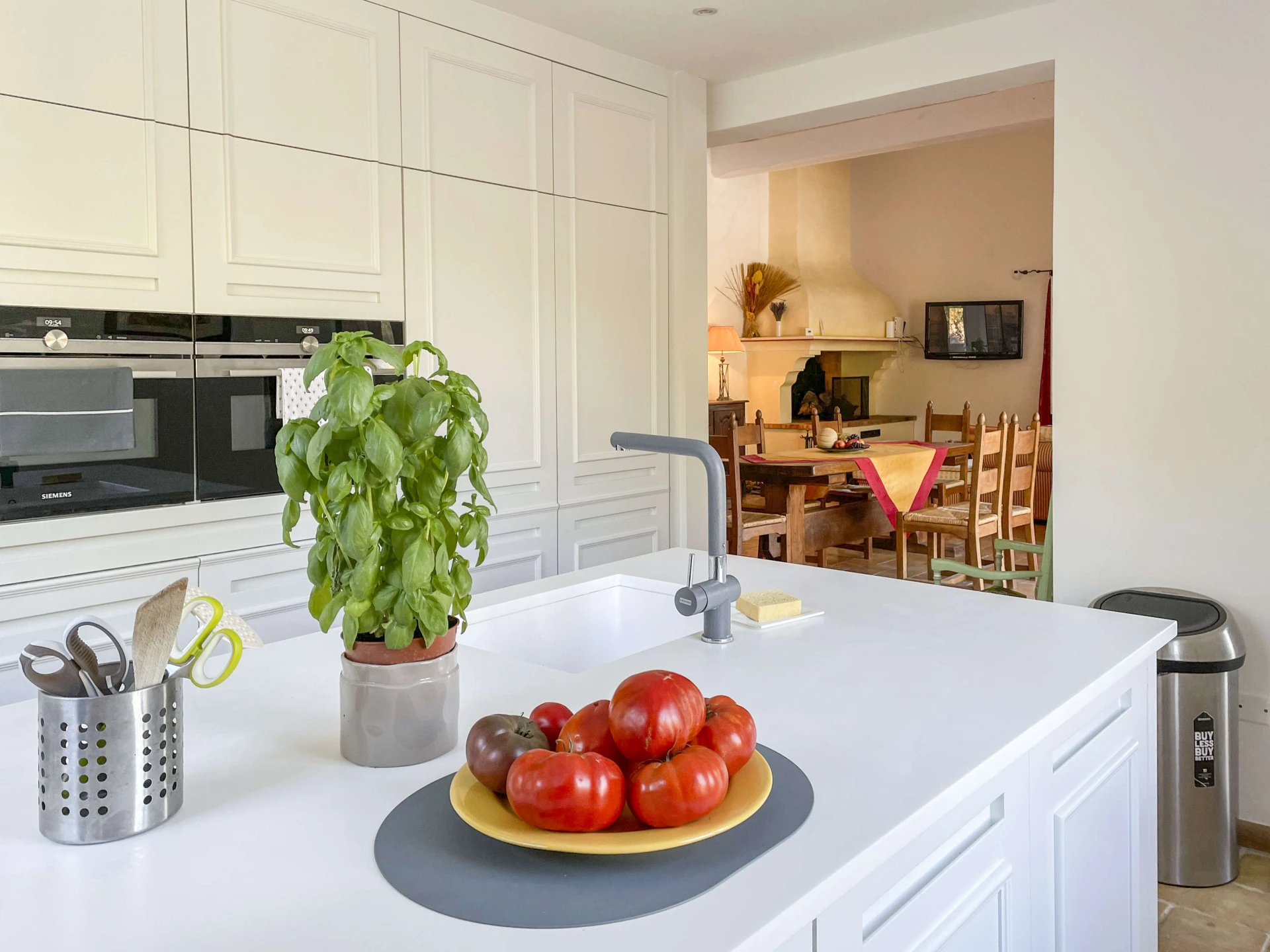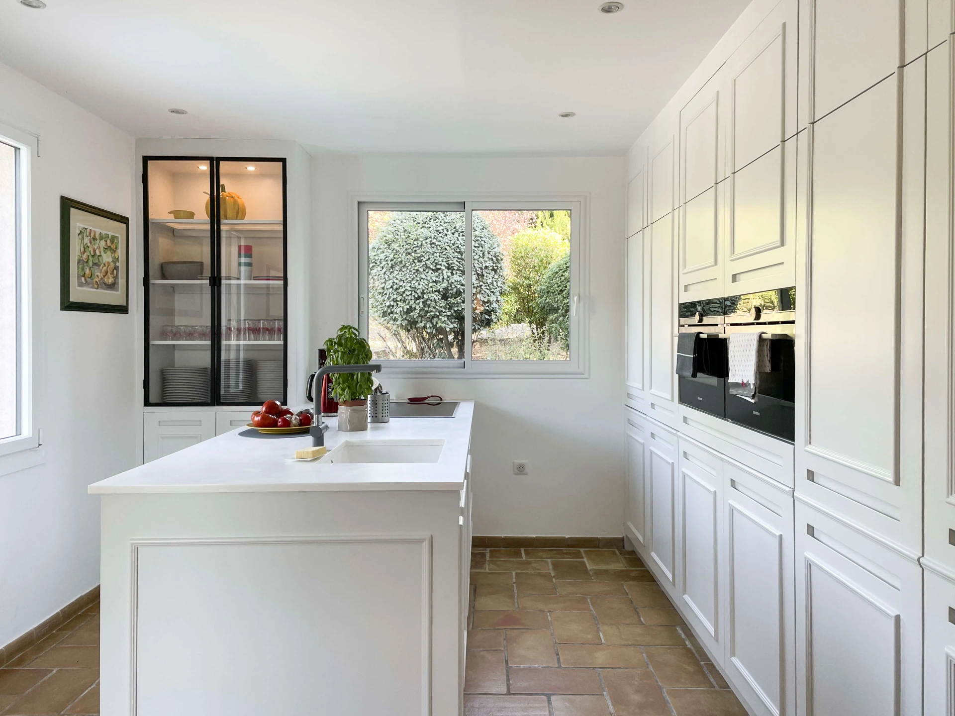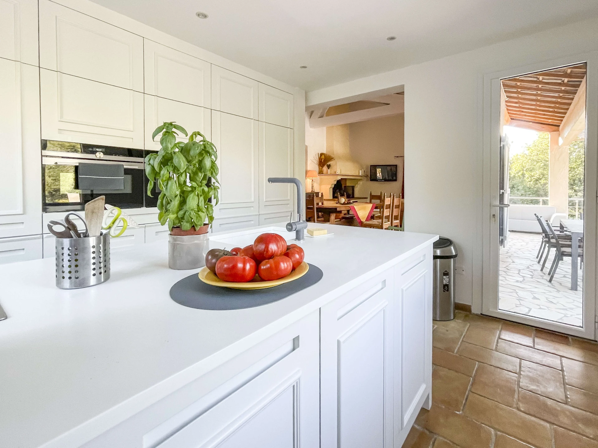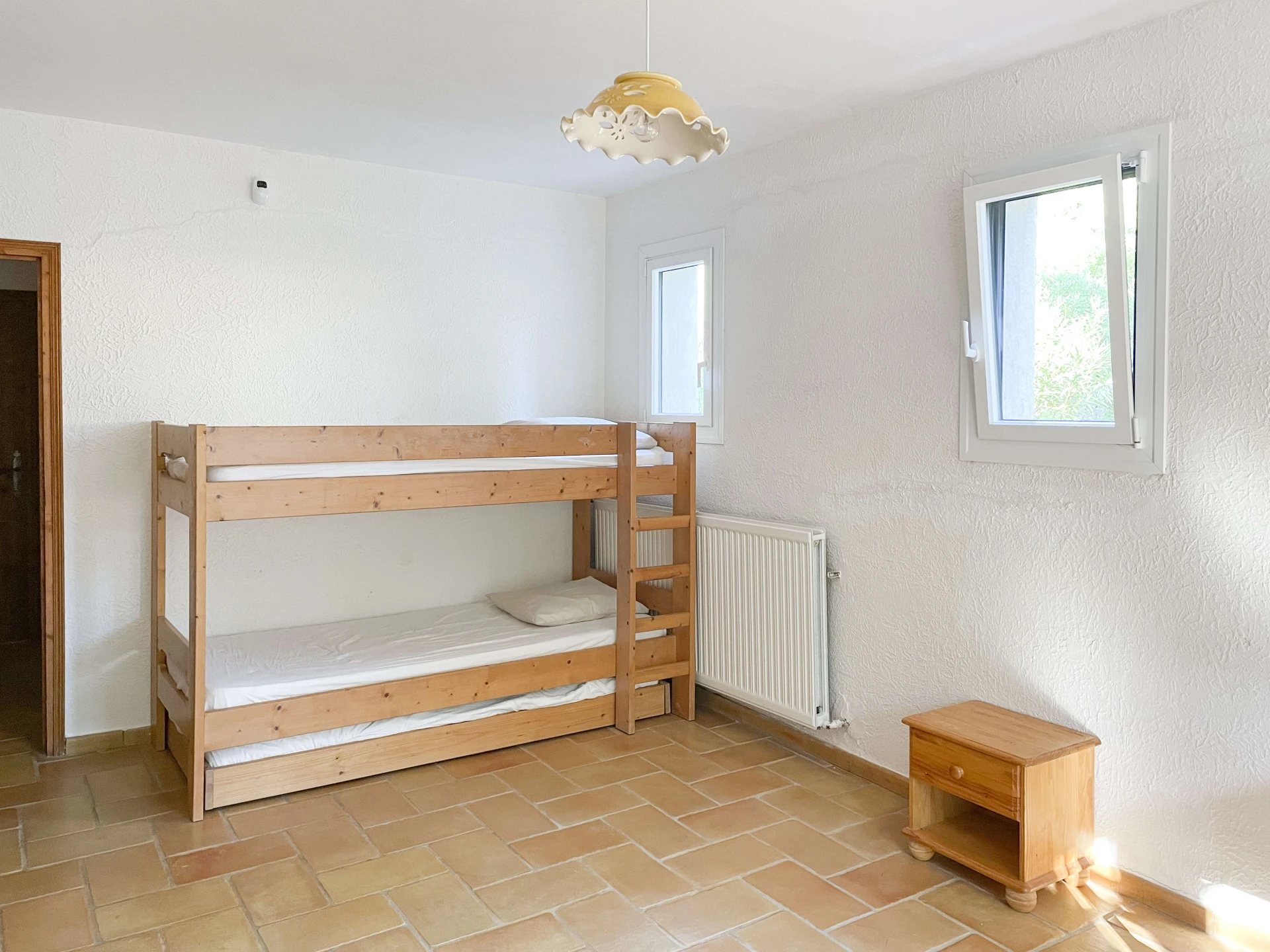 The interior of Villa Louvadiou is authentic and charming, with beautiful high ceilings in the living room (up to 6 metres), providing natural ventilation. This holiday home is furnished with high-quality materials. The living room and dining room give direct access to the terraces around the pool. One of the bedrooms has a private balcony with stunning views of the pool and the green surroundings of Lorgues. This villa is ideal for 8 people + 2 children (up to 12 years old) or 6 adults + 4 children.