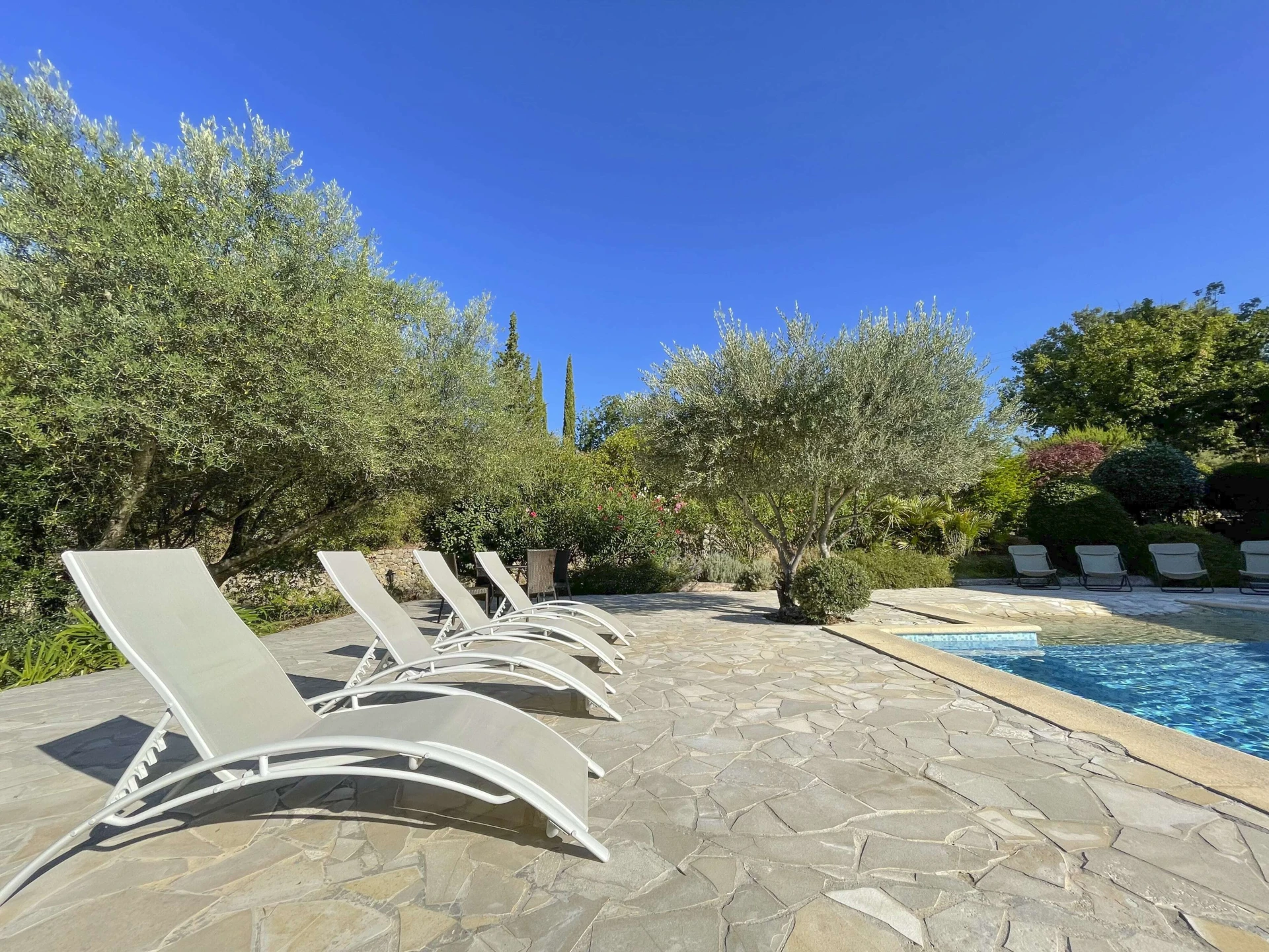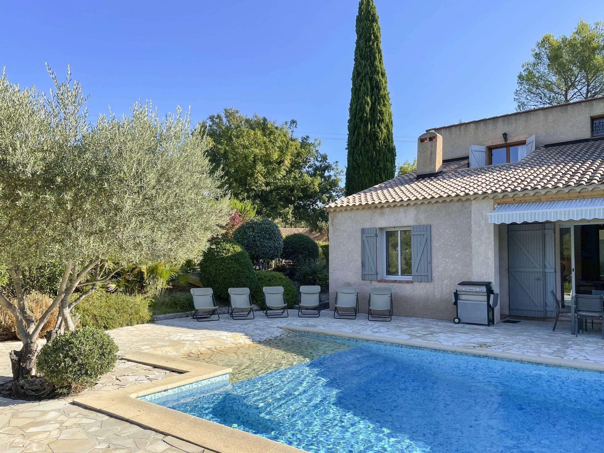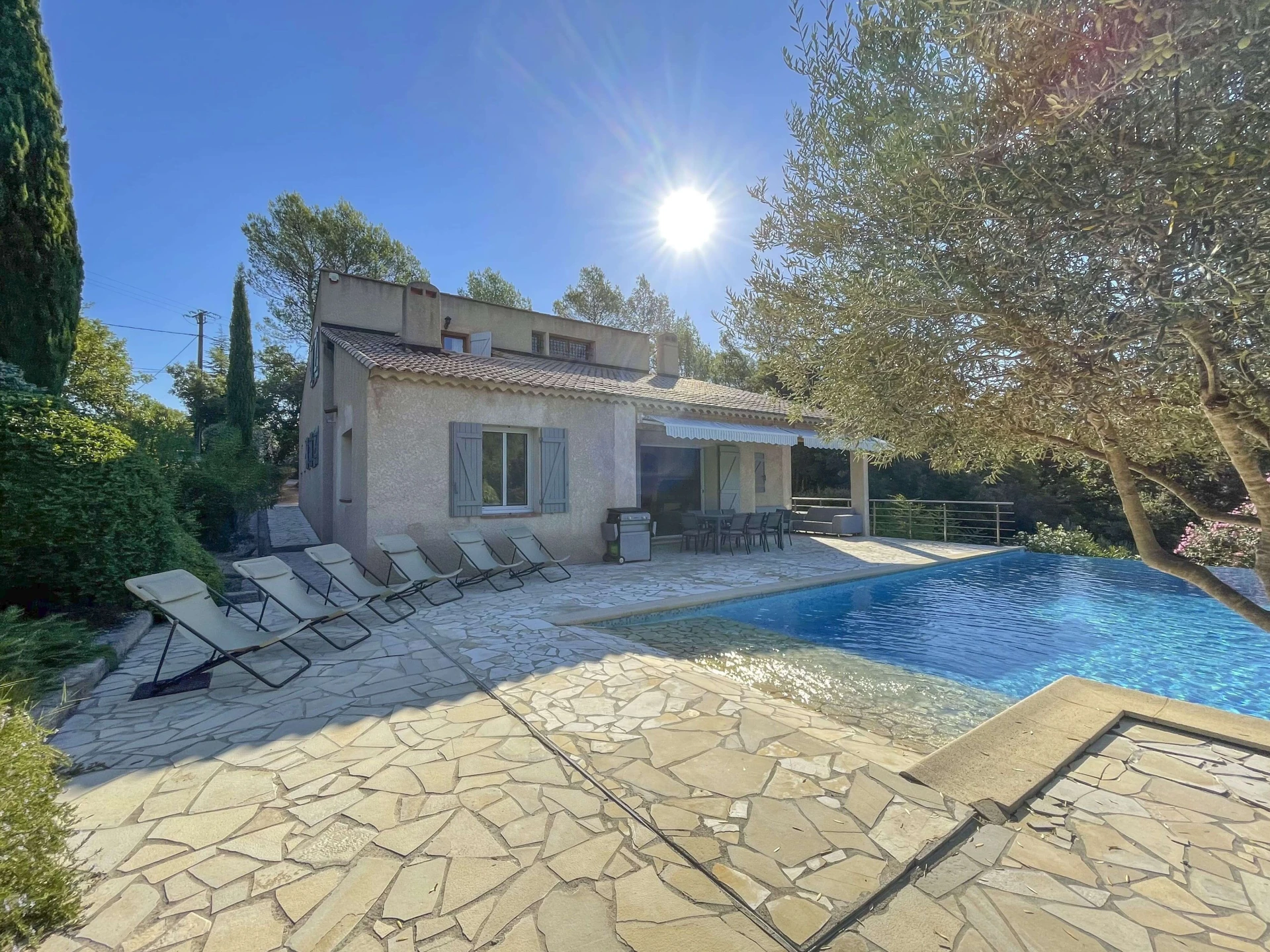 Villa Louvadiou is a beautiful holiday home with a private infinity pool, suitable for 8 adults and 2 children, located in Lorgues. This property is located in Lorgues (Var, Provence) on a private property of 4,000 m². The villa features a vast, lush Mediterranean garden with laurel bushes, olive trees and lavender.