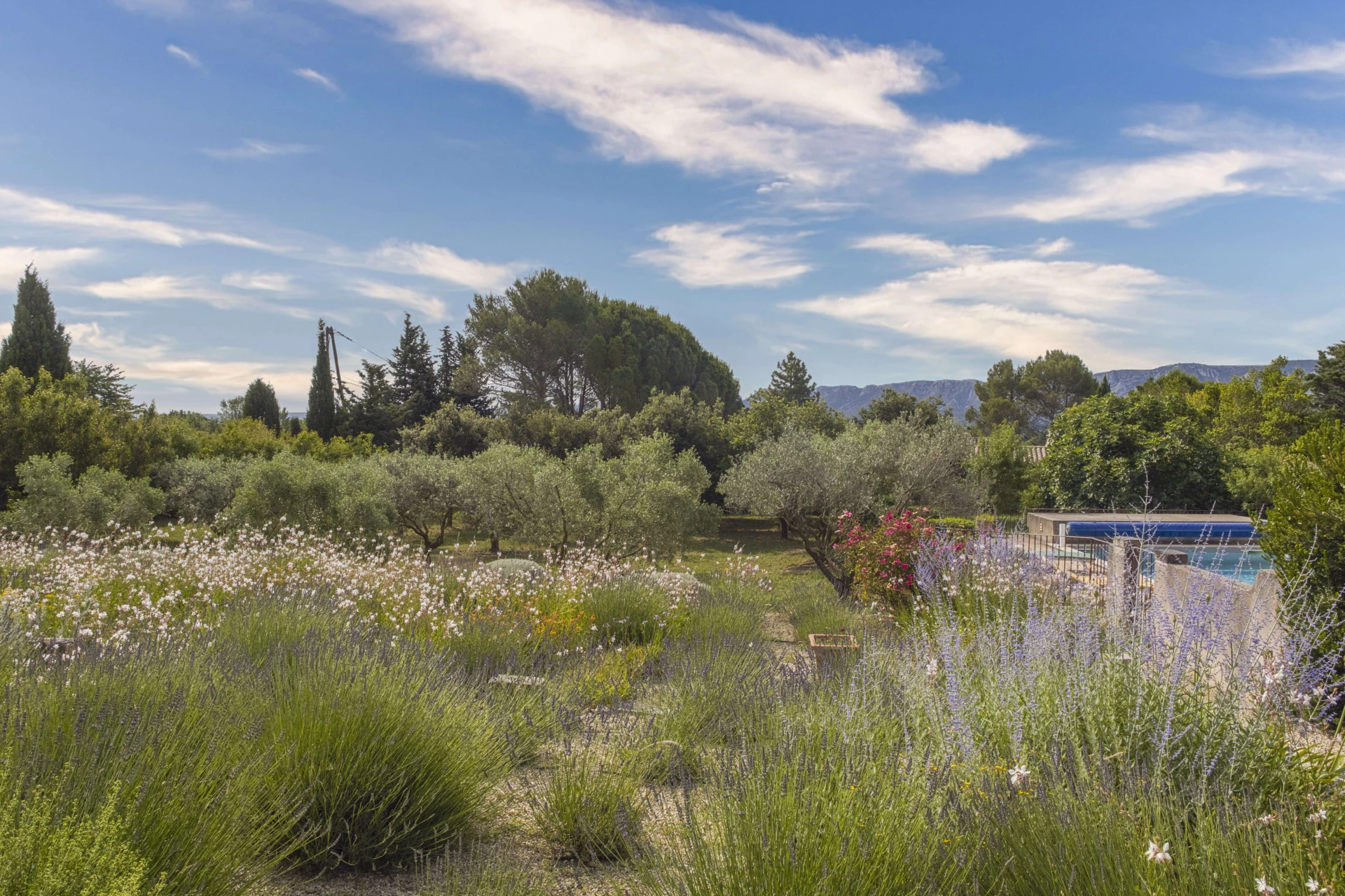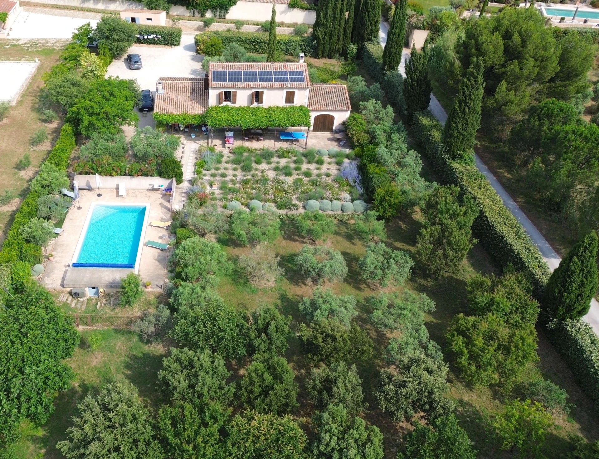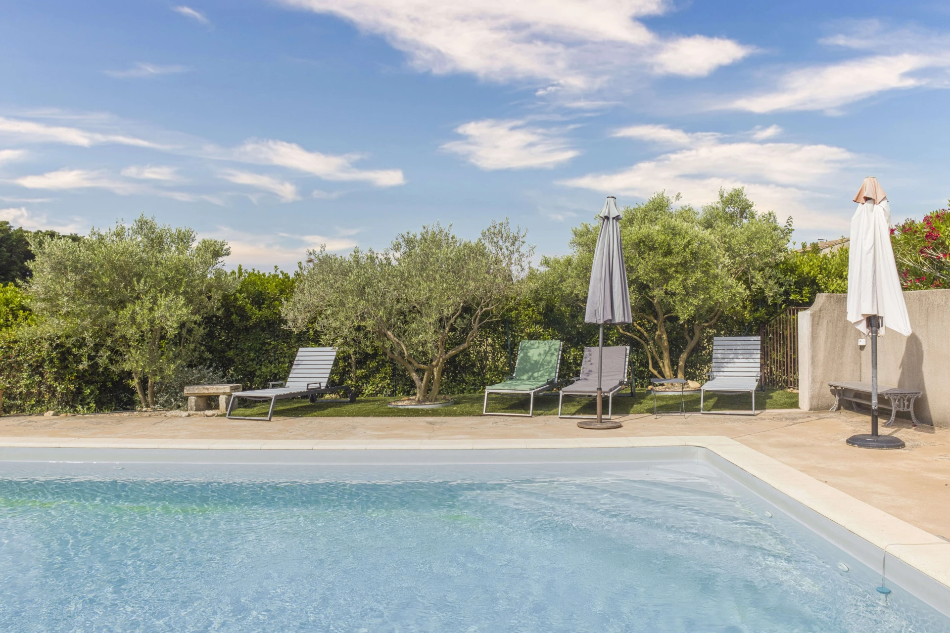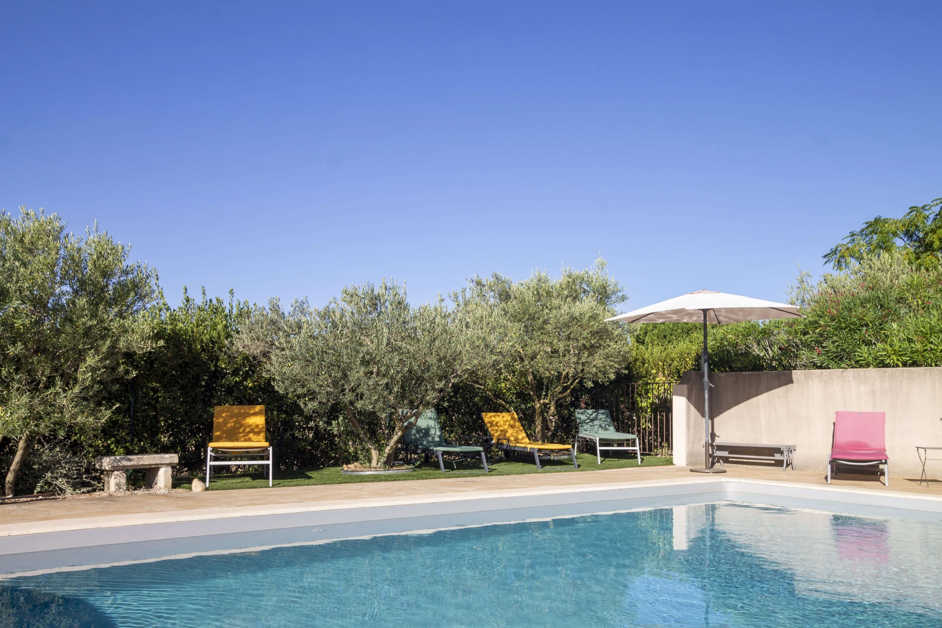 The spacious, heated private pool with wide steps (10x5m - depth of 1.5m, open from April to October) can be heated on request up to a maximum of 25°C. There is a beautiful garden with typical Provençal flora, including the fragrant lavender that immediately evokes a sense of relaxation and an authentic holiday atmosphere. Furthermore, the generous garden offers complete privacy without overlooked, making it an ideal location for naturism enthusiasts.