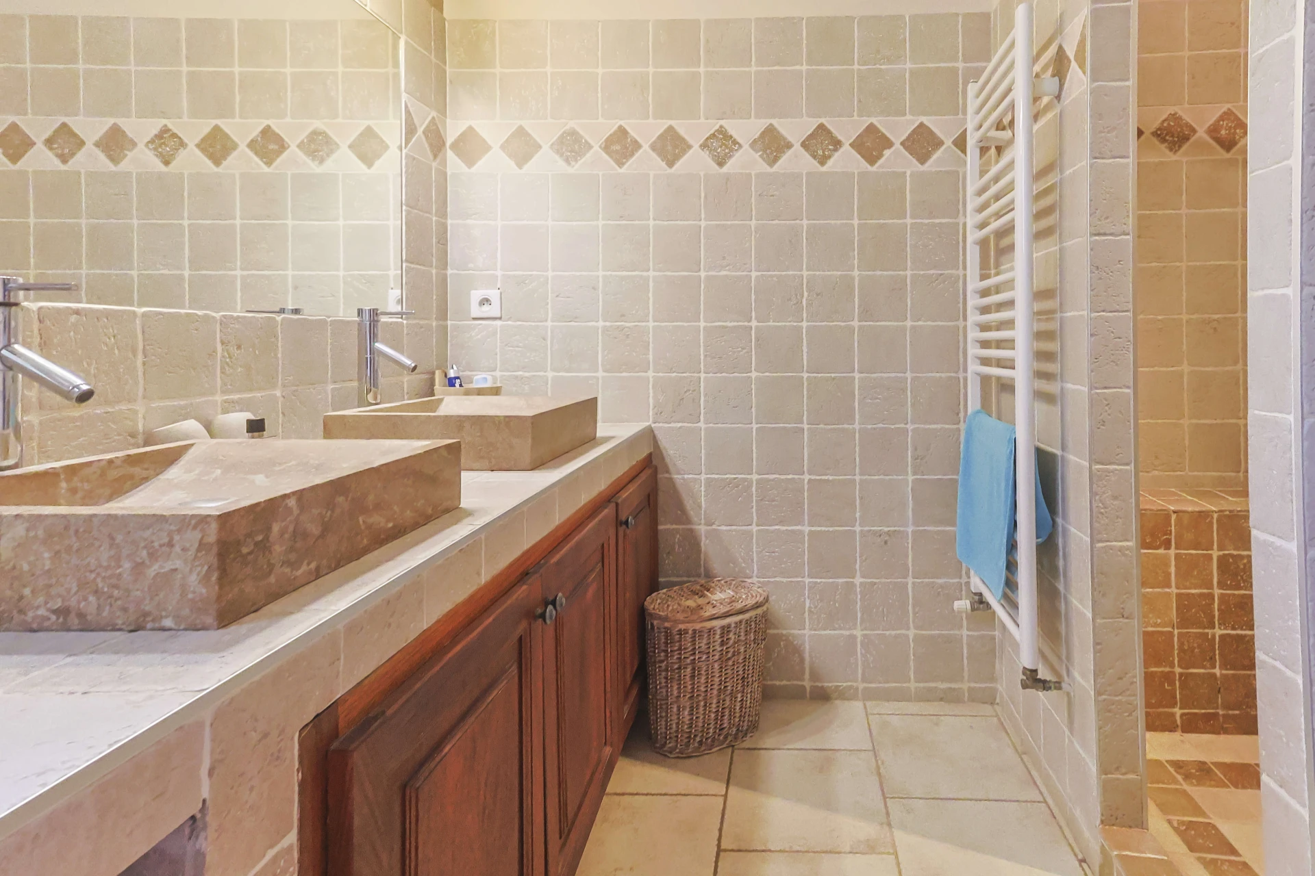 It offers a large garden (2500m²), which is entirely fenced, but also a beautiful private swimming pool (9x4.5m, 160cm deep) with a children’s pool (90cm deep), a Pétanque court, pingpong and a small field to play ball.