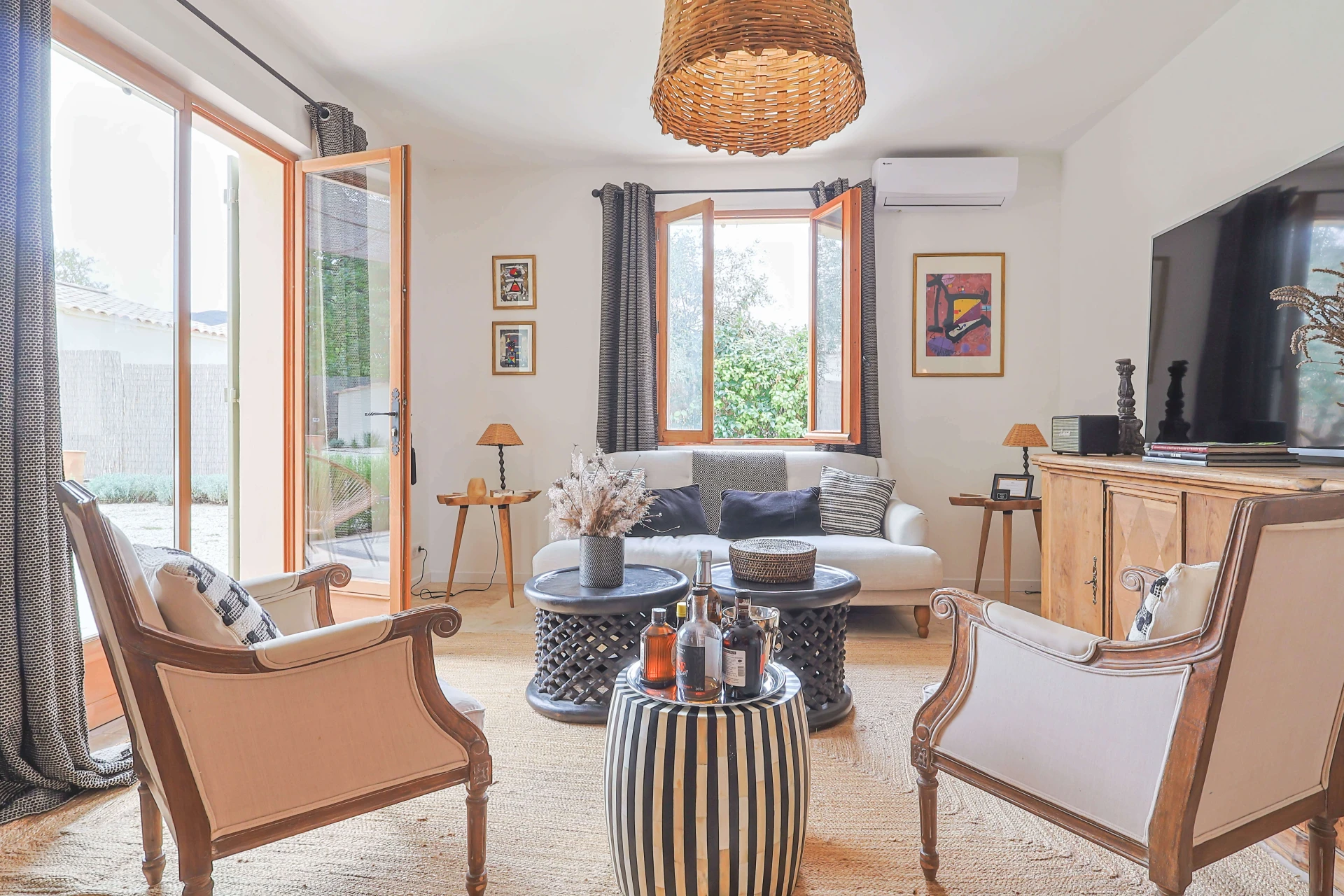 Fully and carefully renovated, this house has been designed to provide you with absolute comfort while maintaining its authentic character. Villa Boho Chic can comfortably accommodate up to 8 people, with its 4 bedrooms featuring private terraces and 3 comfortable bathrooms. One of the bedrooms is a family suite, with one room equipped with two single beds, and a master bedroom with its own en-suite bathroom and private terrace.