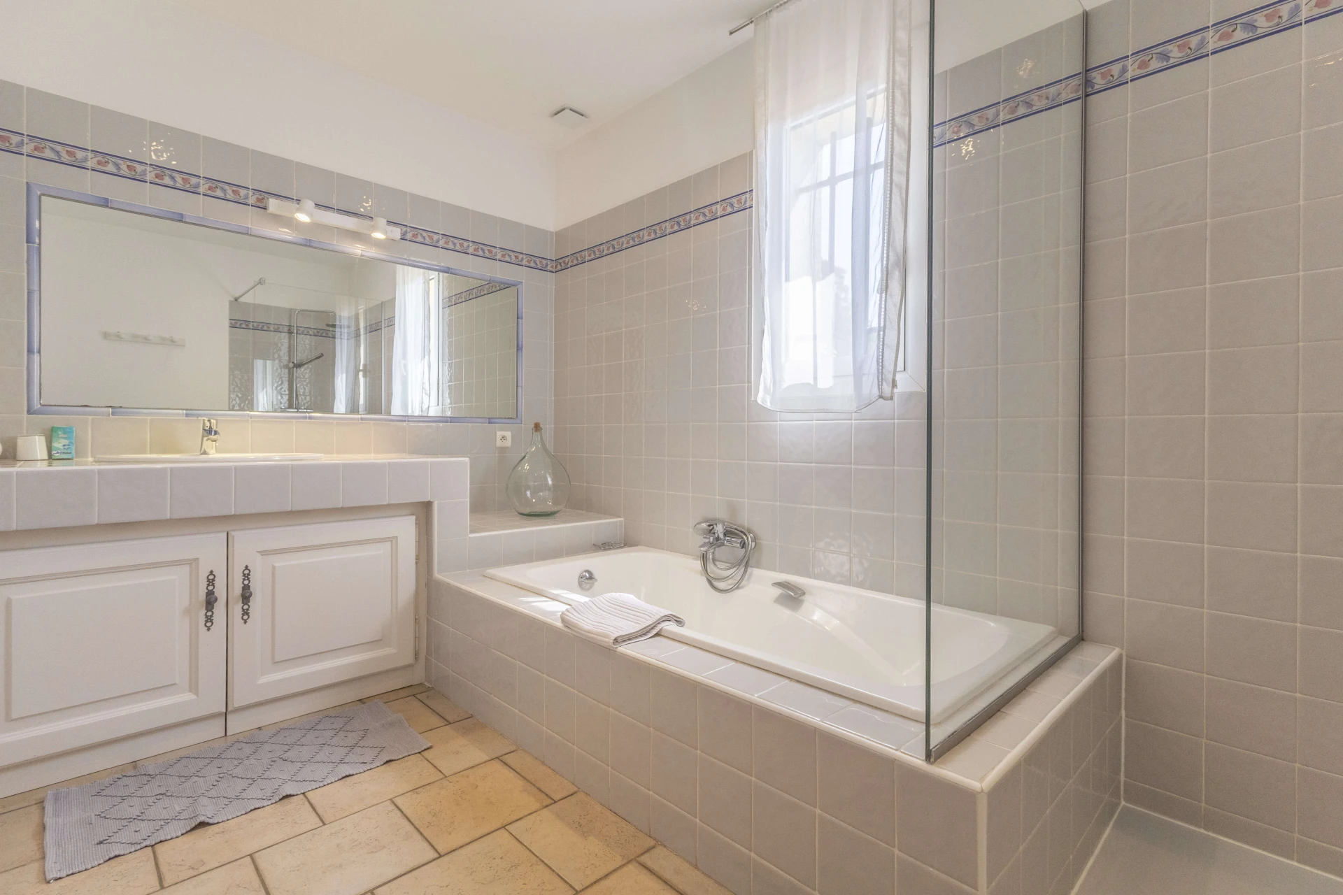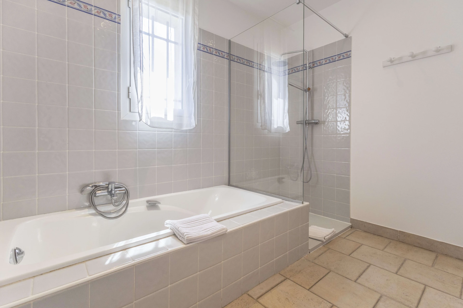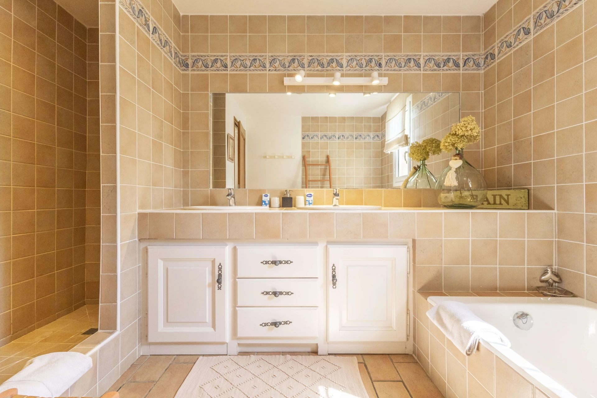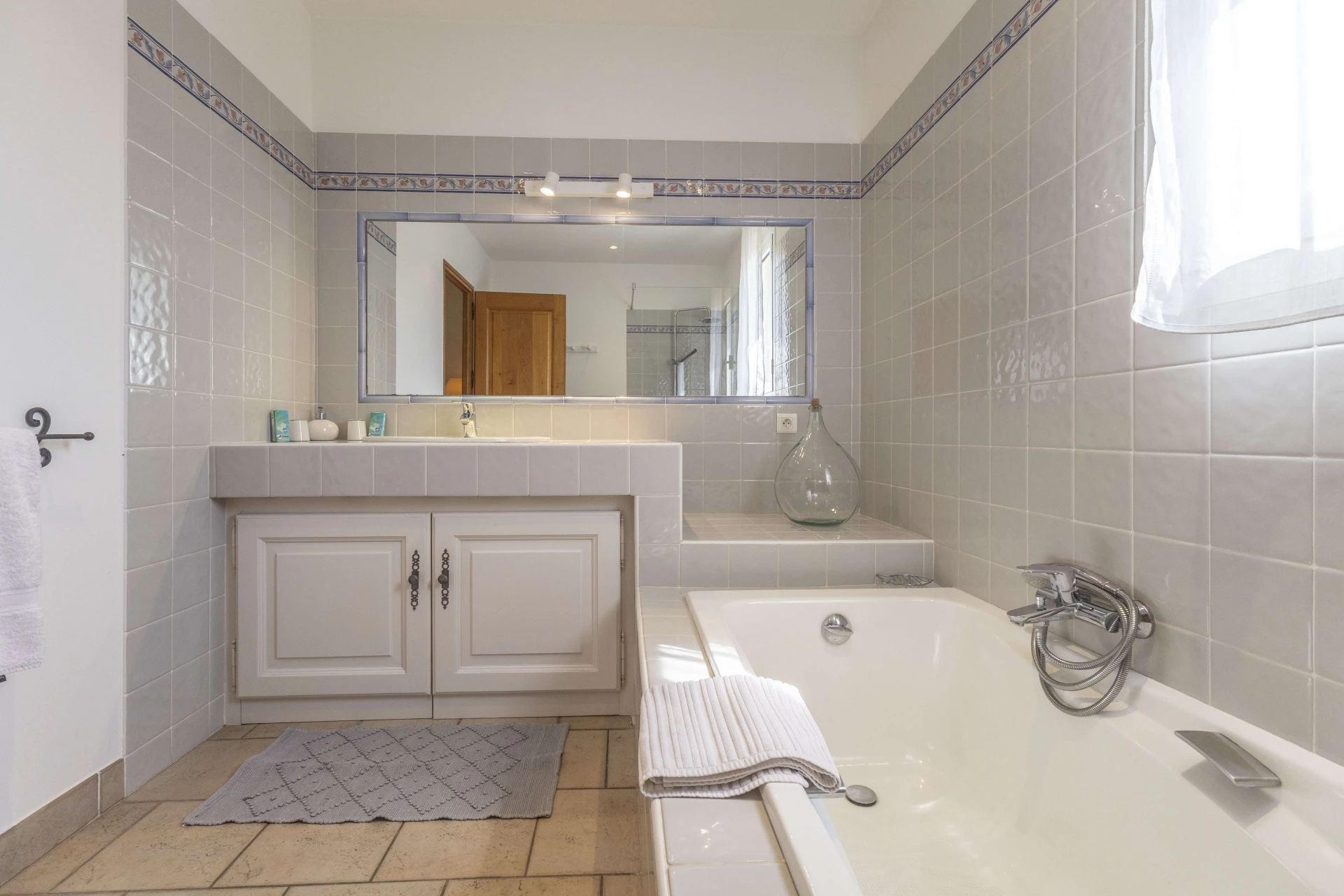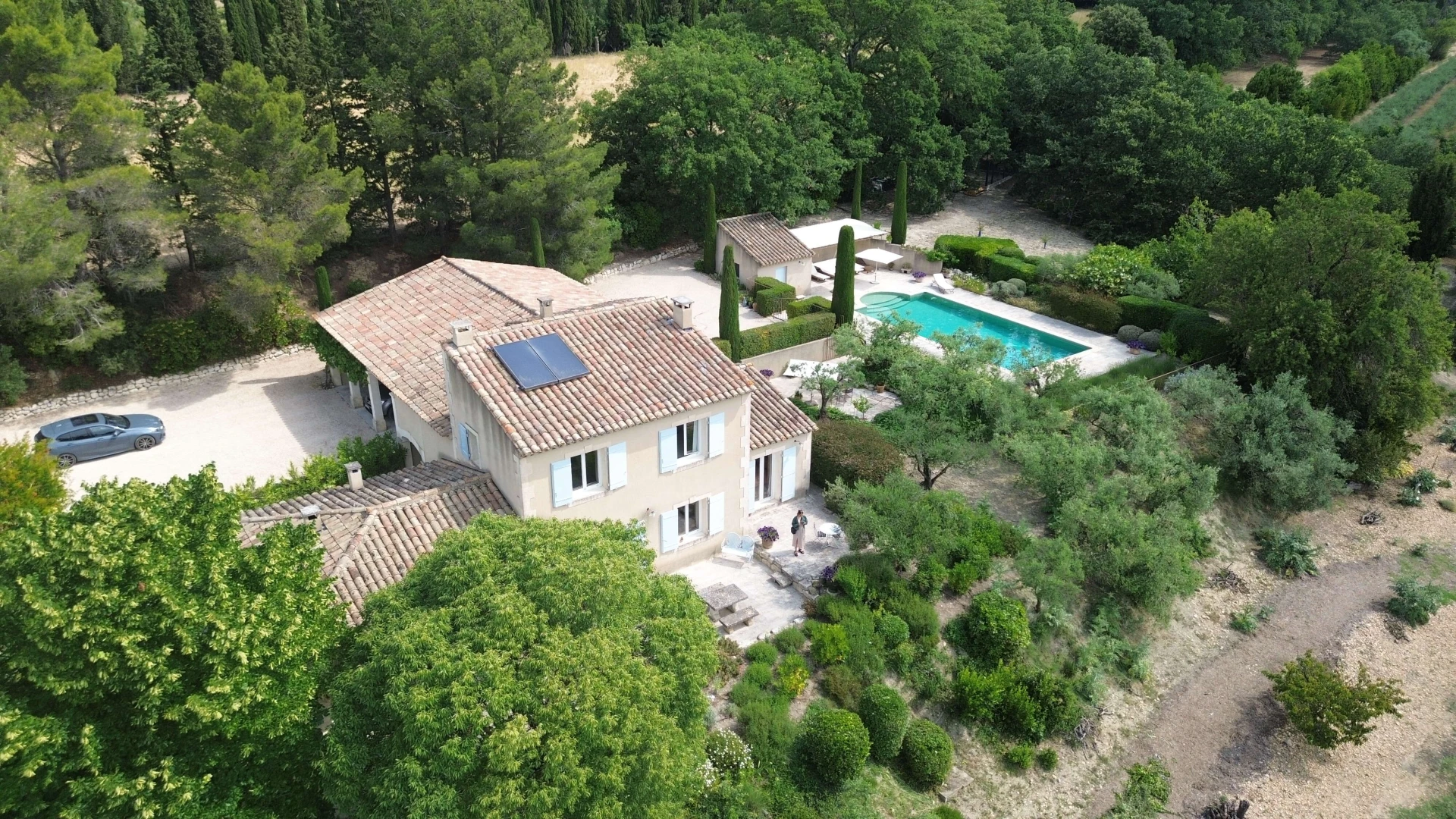 The heated and fenced private swimming pool (12x6m and 2.6m deep) is available from April to September and is surrounded by a spacious sunbathing area. The pool house, equipped with a garden table, garden furniture, and a separate toilet, offers the perfect setting for a delightful lunch. The covered terrace provides cooling and offers breathtaking panoramic views.