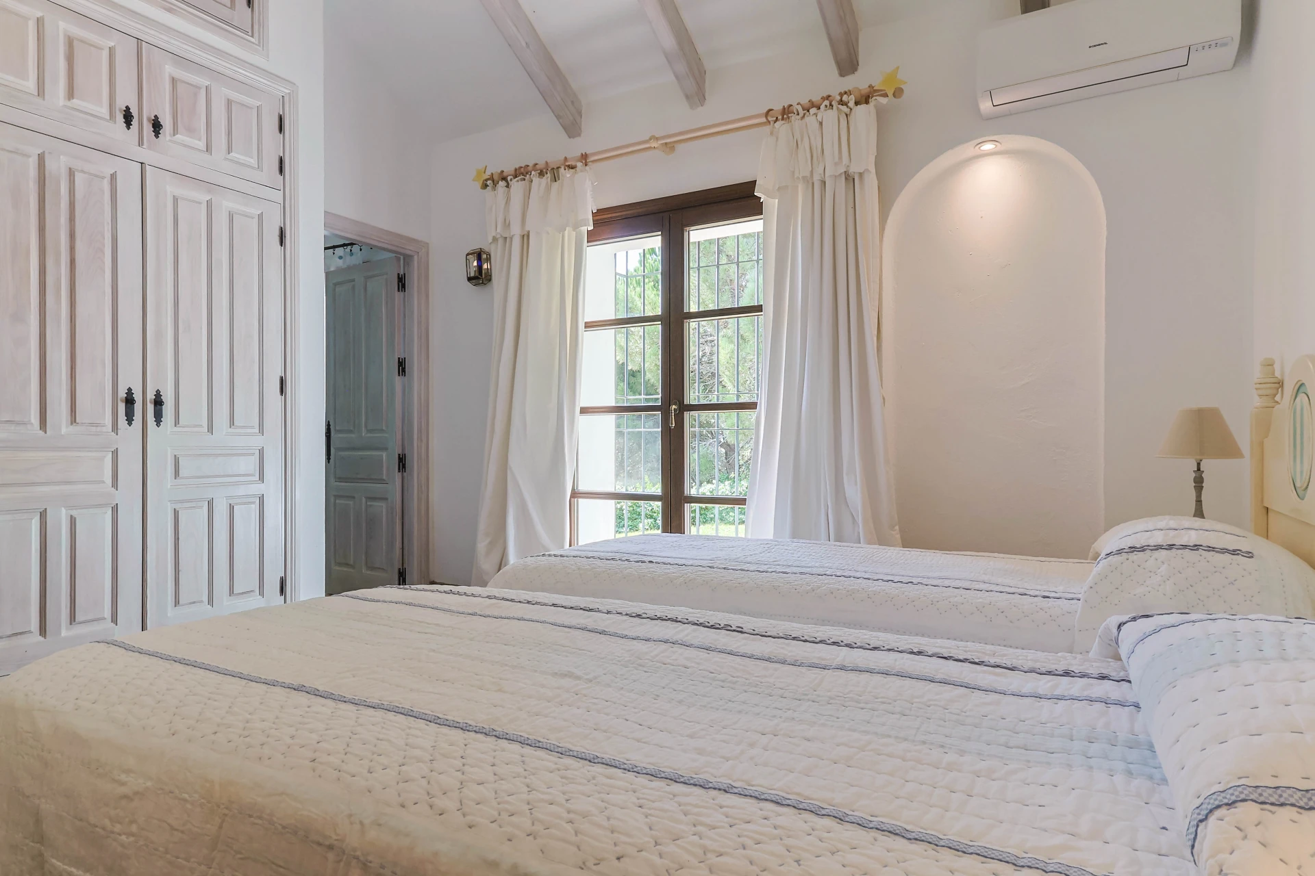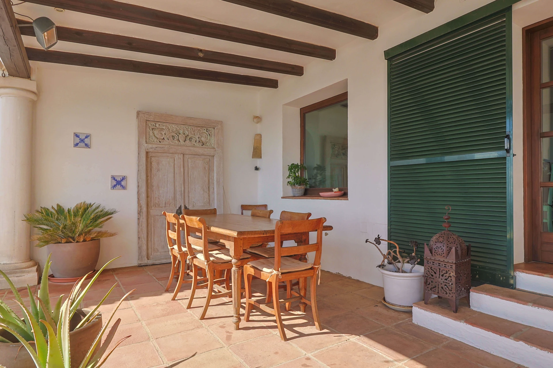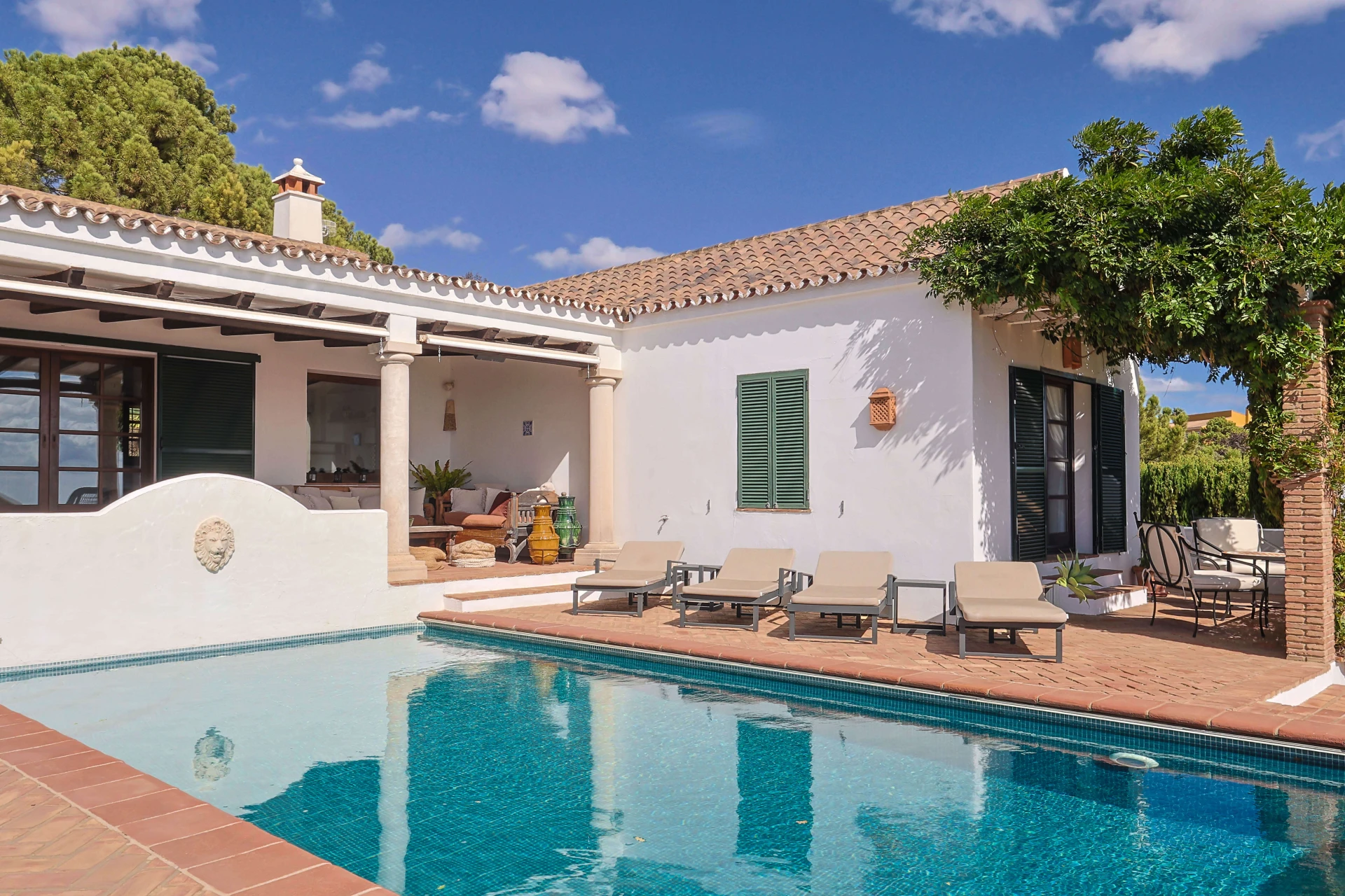La maison a été décorée avec goût avec un mélange de matériaux modernes et des éléments typiquement andalous. Les fabuleuses poutres en bois et les hauts plafonds donnent une impression d'espace et de luxe. Dans la maison principale se trouvent 4 chambres et 4 salles de bain, pouvant accueillir 8 personnes. Un studio indépendant récemment rénové peut être loué avec un supplément de 385 € par semaine. Le studio privé, magnifiquement décoré, dispose d'un salon, d'une cuisine ouverte, d'une salle de bain privée, d'une chambre pour 2 personnes et d'une belle terrasse. Parfait pour une famille qui recherche occasionnellement un peu d'intimité