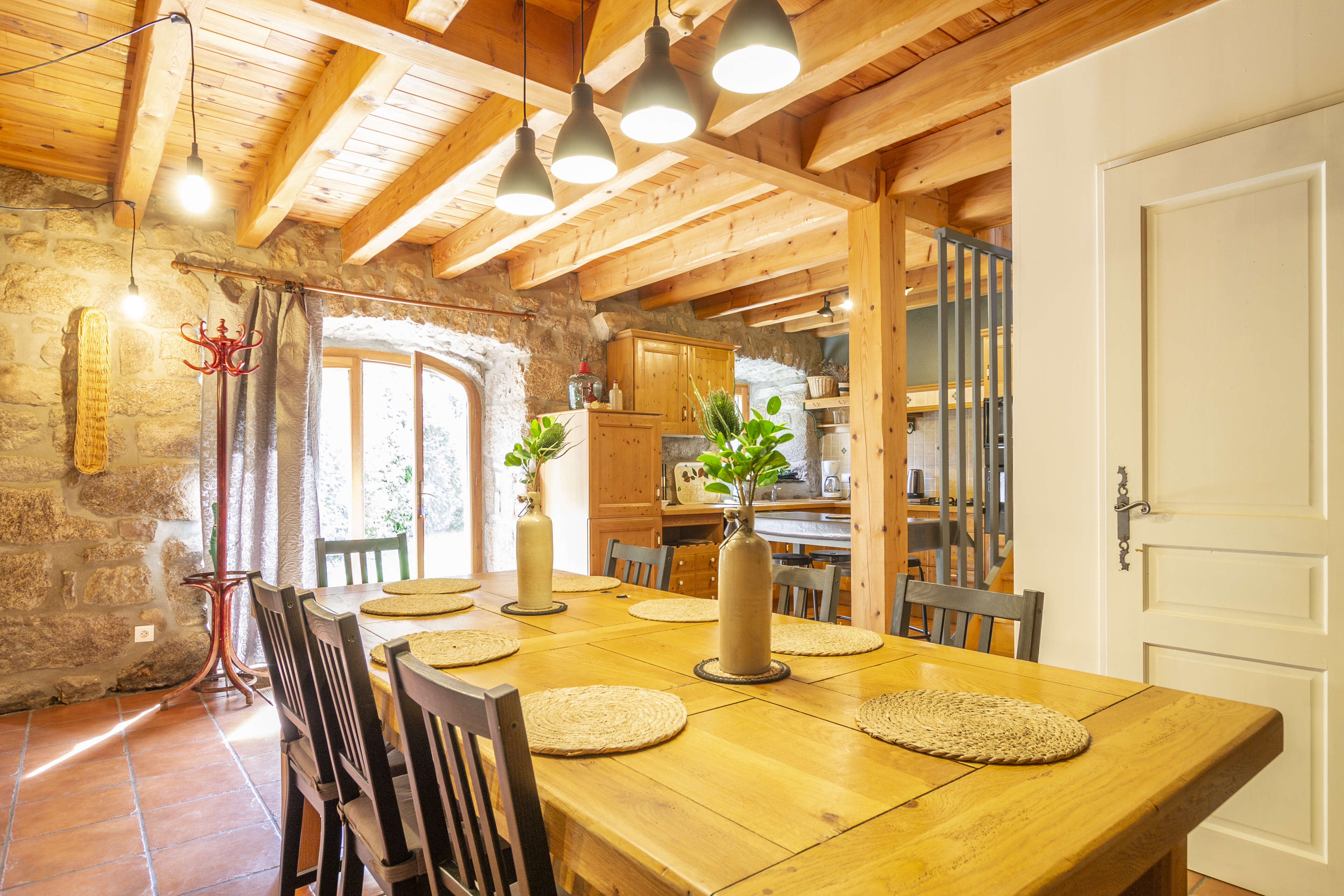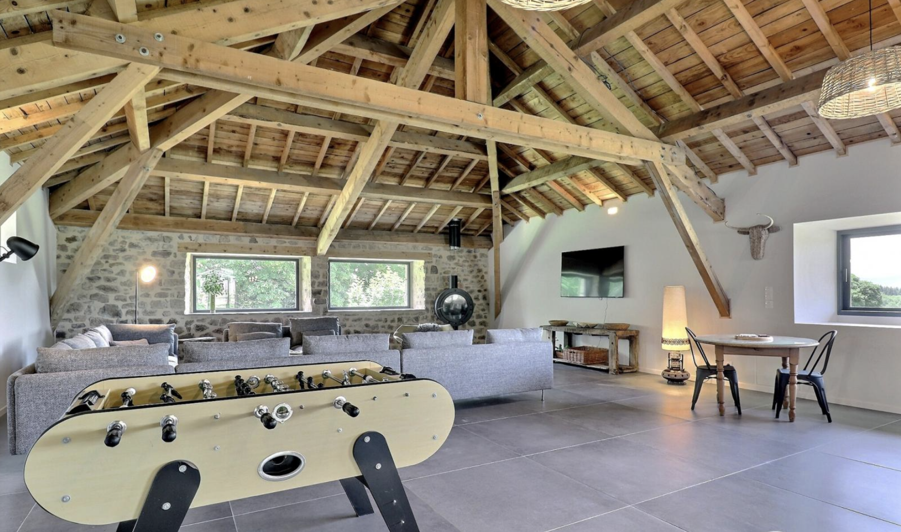 La maison de vacances avec piscine privée est complètement entourée par la nature. Depuis les différentes terrasses vous pourrez profiter d'un beau panorama sur l'espace verdoyant et montagneux du parc naturel des Monts d'Ardèche. La grande piscine privée chauffée (5x10m ouverte de mi-mai à fin septembre) est située au centre du jardin. Il est merveilleux de se détendre autour de la piscine privée sur les sièges du salon. En plus de beaucoup d'espace à l'extérieur, il y a aussi beaucoup d'activités à faire dans la maison de vacances. Organisez un concours de pétanque au pastis ou découvrez qui est le meilleur au tennis de table et au baby-foot.