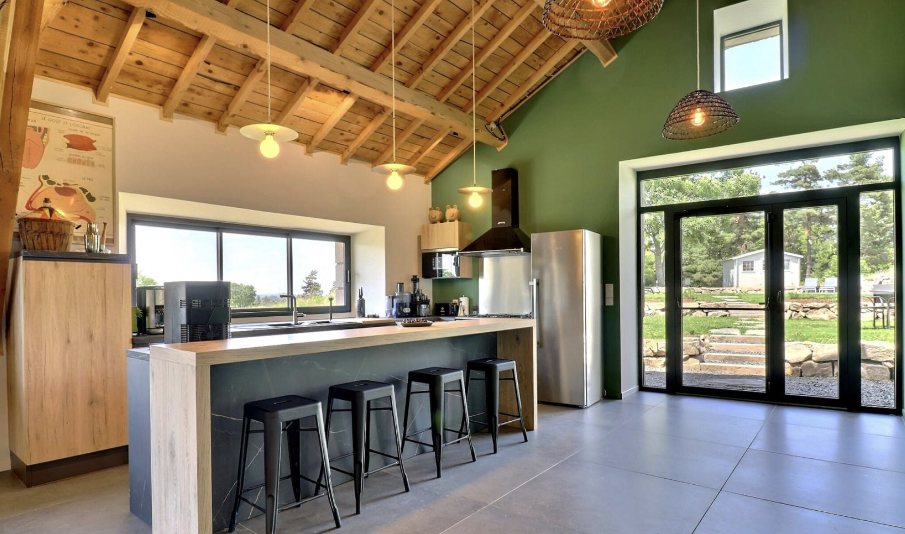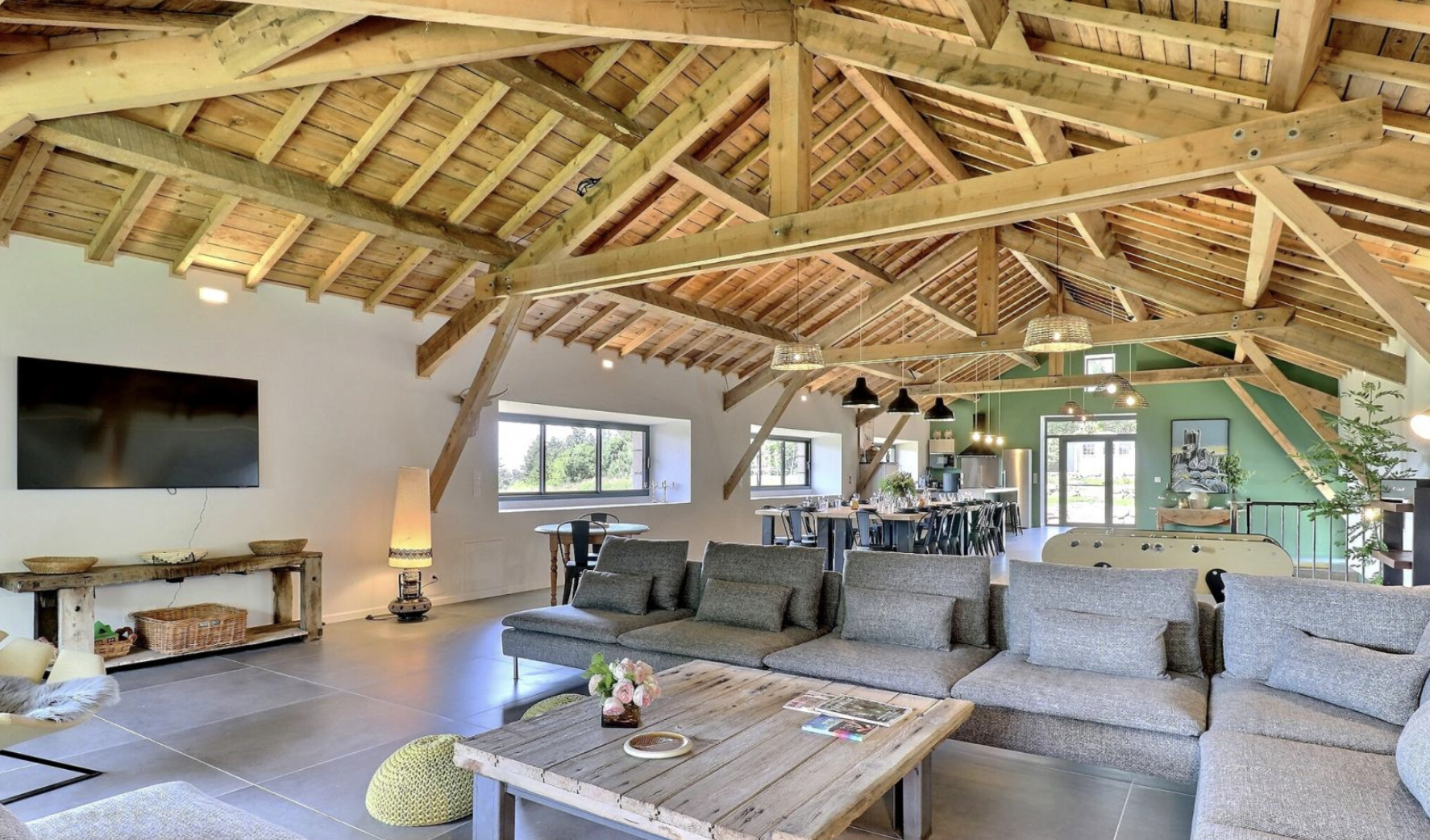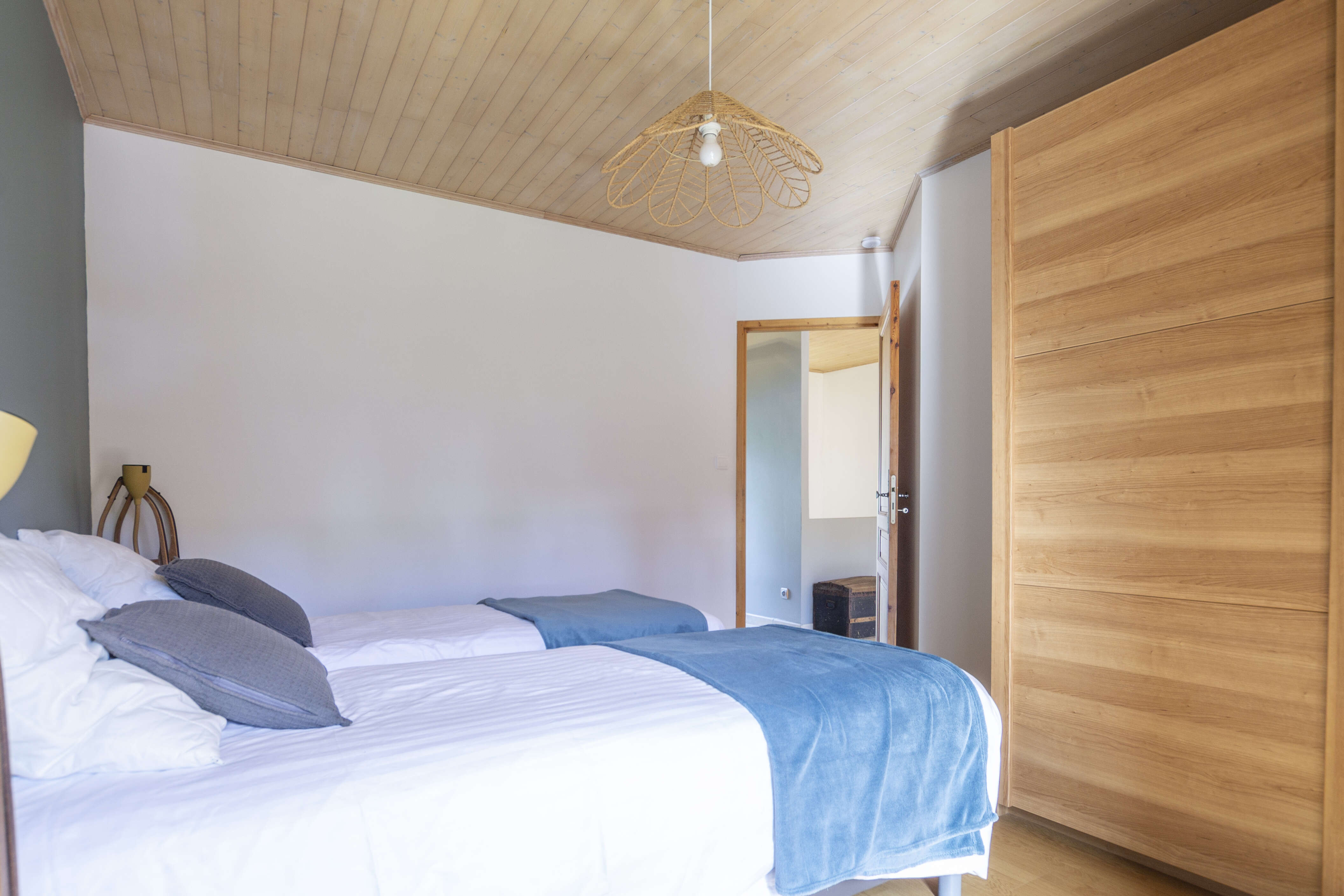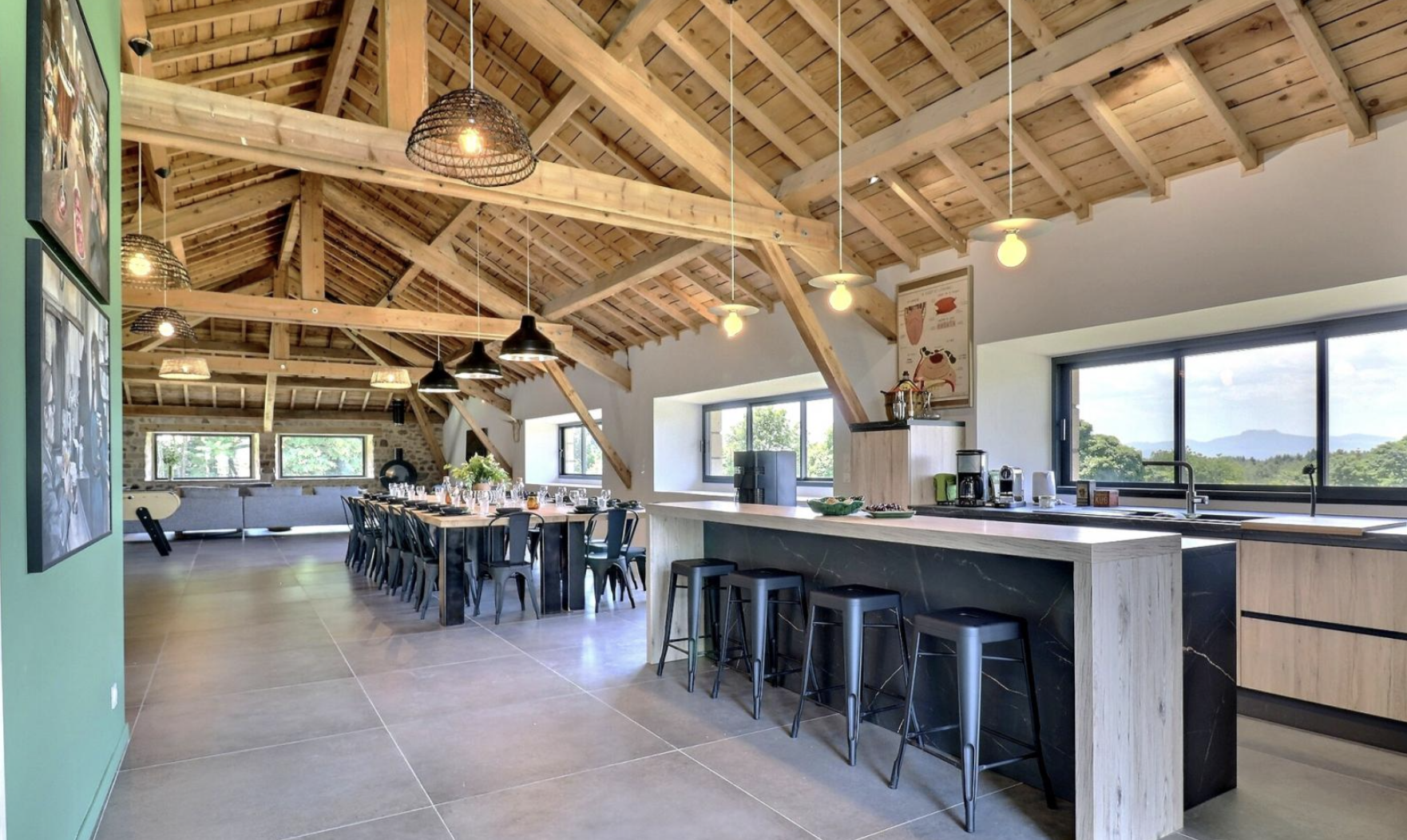La maison de vacances rénovée avec piscine privée chauffée était autrefois une ferme traditionnelle en pierre. Les rénovations ont été effectuées avec goût et matériaux de grande qualité. L'objectif était d'obtenir une belle combinaison de modernité et d'influences françaises traditionnelles. La maison de vacances pour groupes est située sur un gigantesque domaine de 3 hectares et se compose de 4 bâtiments indépendants. Le bâtiment principal/grange a un immense salon, salle à manger et cuisine, il y a beaucoup d'espace pour passer du temps ici avec la famille. Les chambres sont situées dans les 3 autres dépendances. Ils ont chacun leur propre entrée, terrasse et ont également leur propre cuisine et salon. Parfait pour les familles et les amis qui aiment se réunir, mais qui recherchent aussi occasionnellement l'intimité. L'une des maisons dispose d'une chambre et d'une salle de bain au rez-de-chaussée, ce qui la rend facilement accessible aux personnes à mobilité réduite. Dans l'une des maisons de vacances, 2 chambres sont communicantes, il faut donc passer par une chambre pour accéder à l'autre chambre avec salle de bain commune. Idéal pour une petite famille.