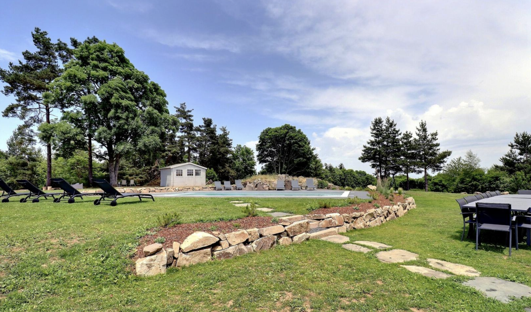 Cette belle villa de vacances pour 21 personnes avec piscine privée est parfaitement située entre les champs avec vue panoramique pour un agréable séjour en Ardèche (Saint-Agrève, France).