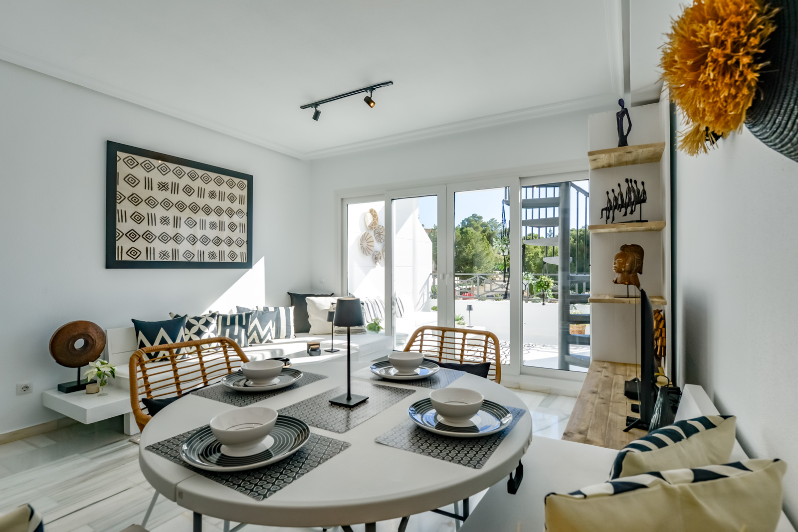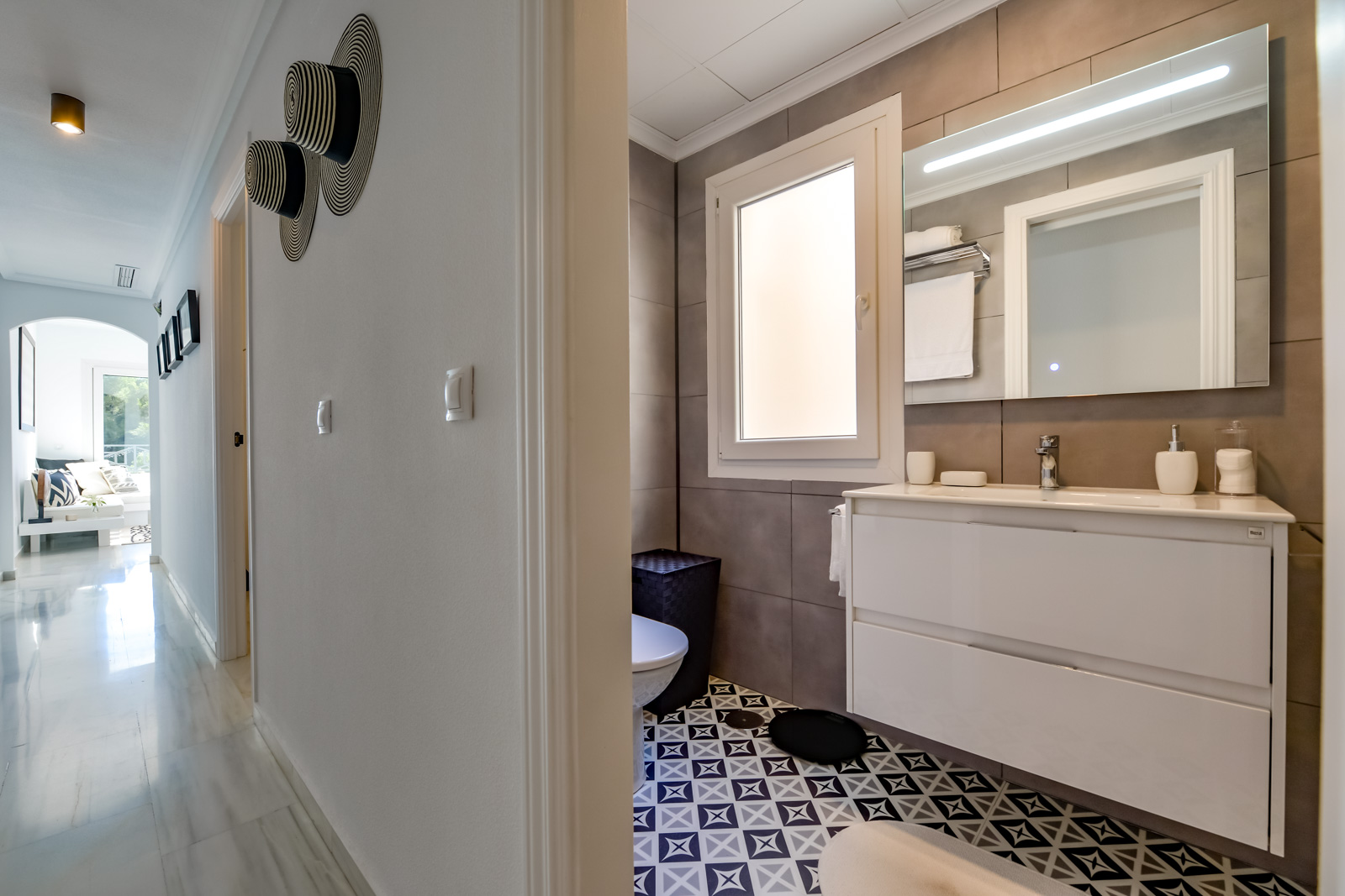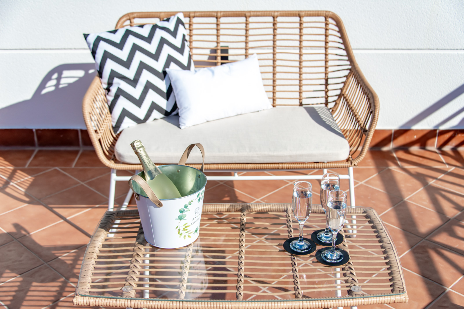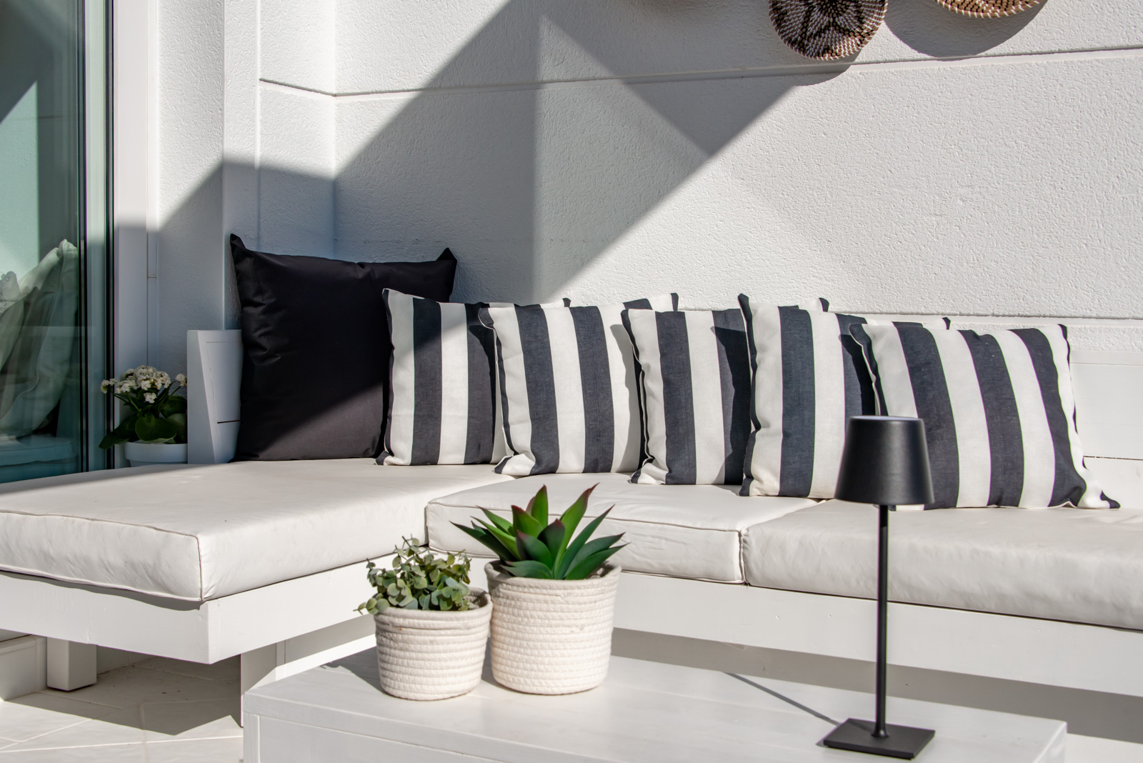 Cet appartement lumineux de style bohème dispose de plusieurs terrasses, dont une terrasse rooftop avec salon d'extérieur, douche extérieure et un petit bassin (ouvert du 01/05 au 15/10) pour vous rafraîchir durant les journées chaudes. Toutes les terrasses offrent des vues panoramiques sur la nature, la mer et la magnifique baie de Puerto Blanco. On ne se croirait pas en ville !