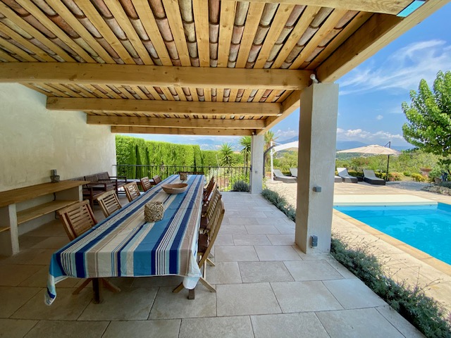 Cette maison de vacances climatisée jouit d’un immense jardin prive planté d’arbres et d’une grande piscine privée sécurisée (11x5m) entourée de terrasses et d’une aire de jeux. Une des terrasses ouvre sur une grande cuisine d’été avec plancha et barbecue.