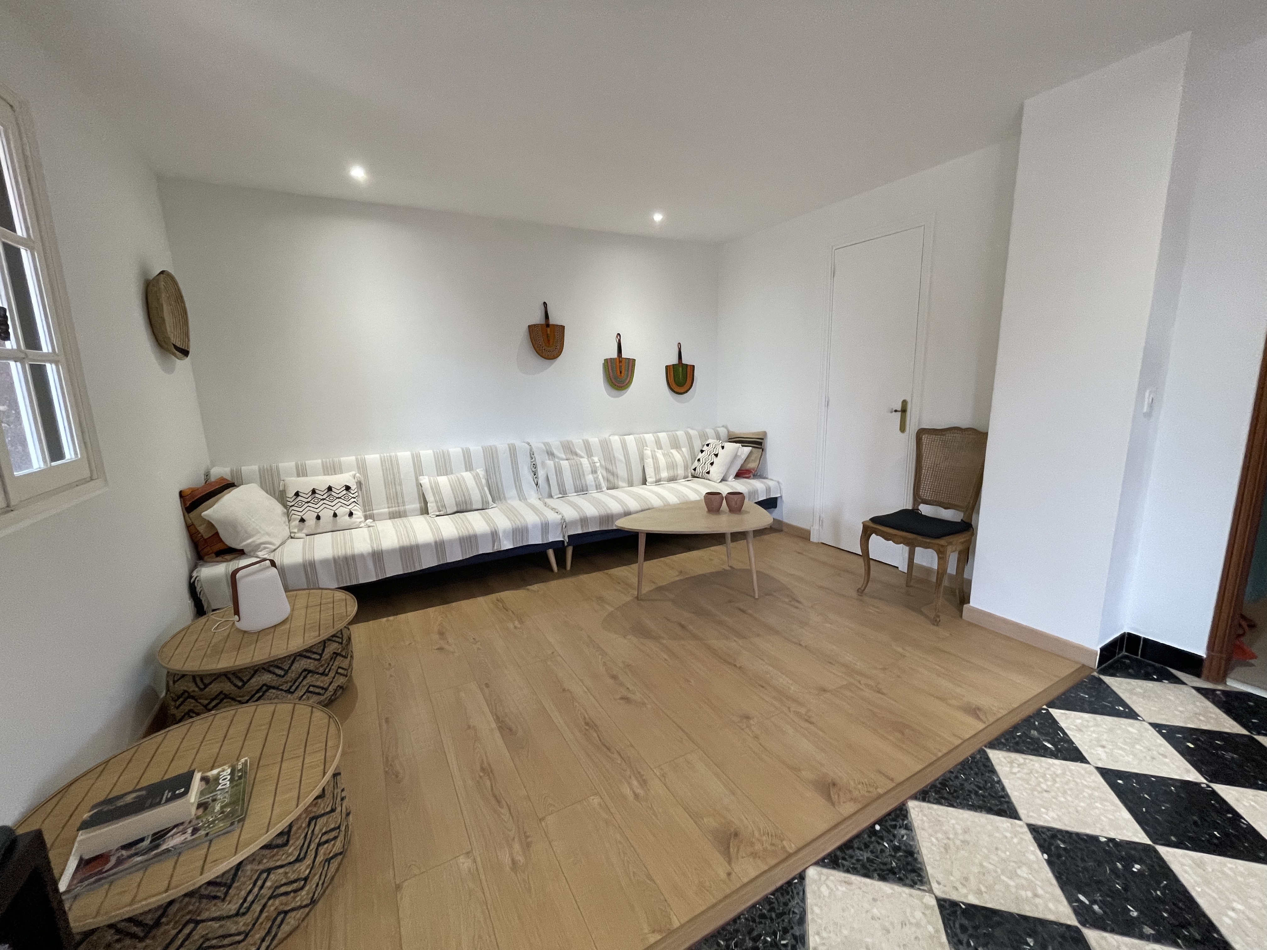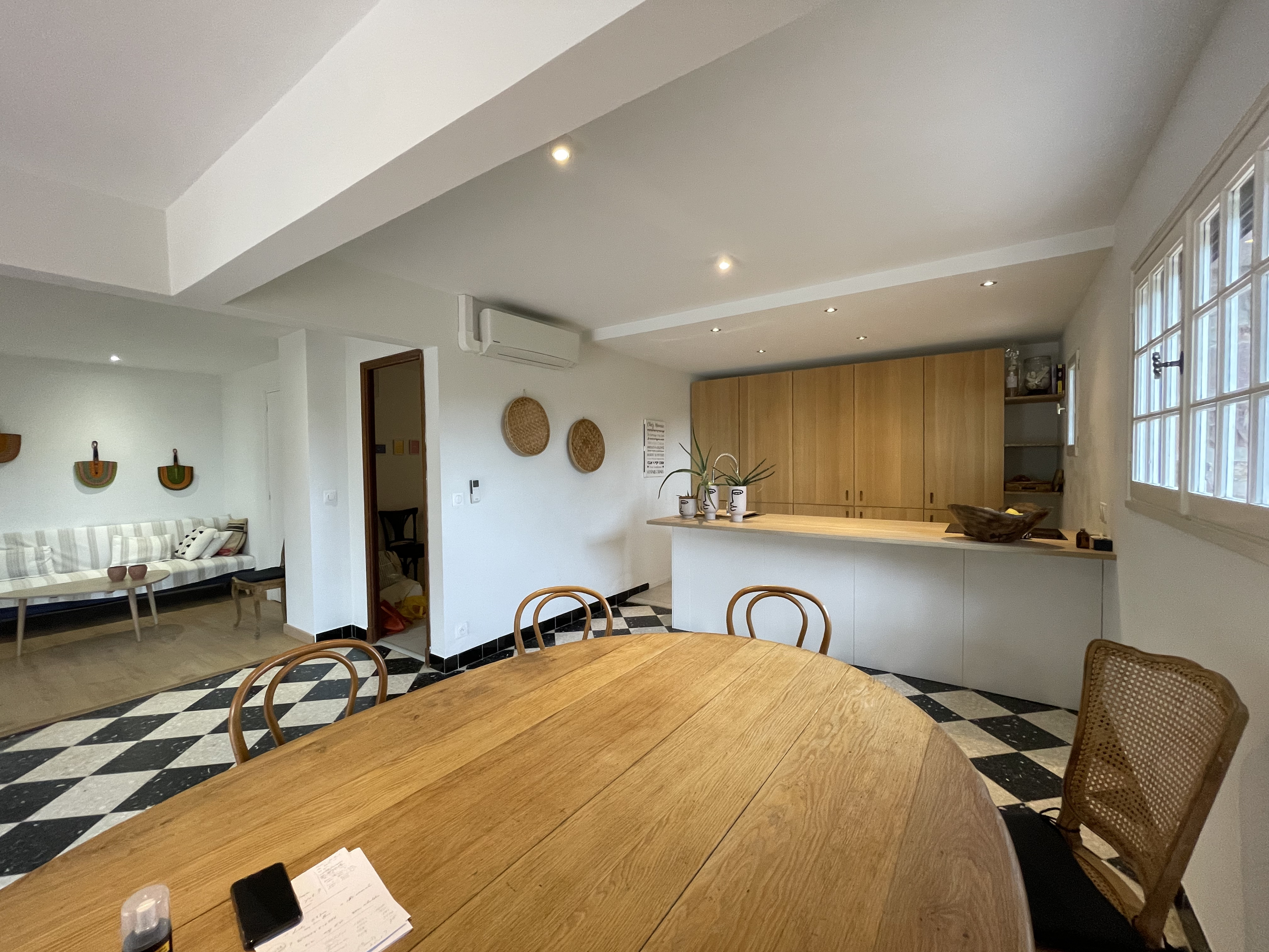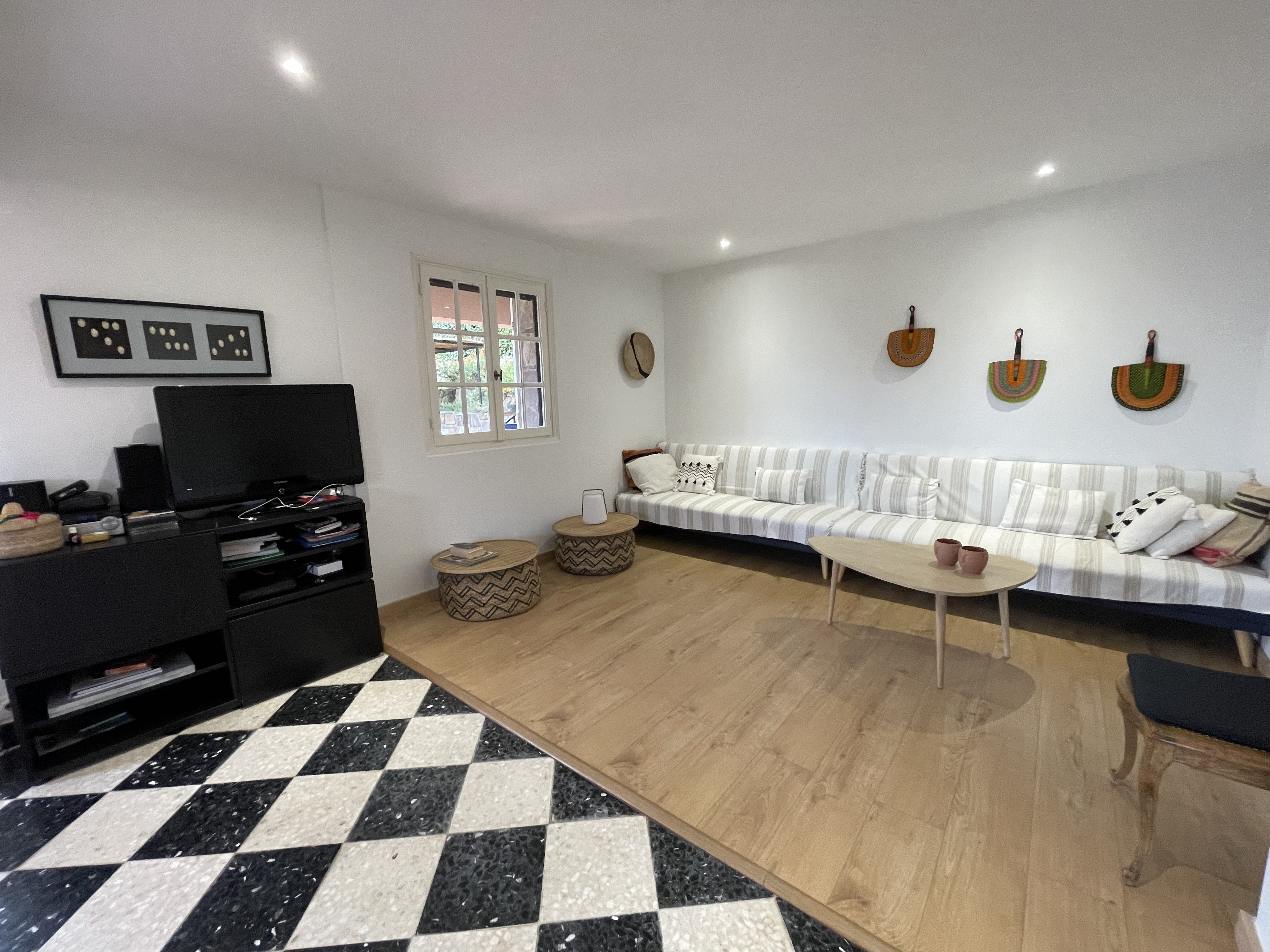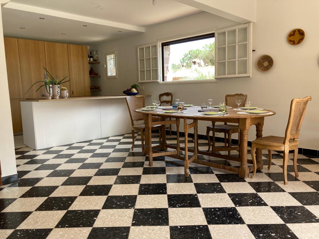 Intérieur : Adaptée aux grands groupes La villa dispose de 6 chambres à coucher, dont 5 climatisées grâce à un système réversible pour un confort optimal en toute saison. Au niveau jardin, vous trouverez un salon lumineux avec cuisine ouverte entièrement équipée, deux chambres, deux salles d’eau ainsi qu'un WC séparé. À l’étage supérieur – accessible par un escalier extérieur – se trouvent un second salon avec mini-frigo et machine à café Nespresso, une terrasse avec vue sur la mer, quatre chambres (dont deux avec une magnifique vue mer), une salle de bain et un WC séparé.