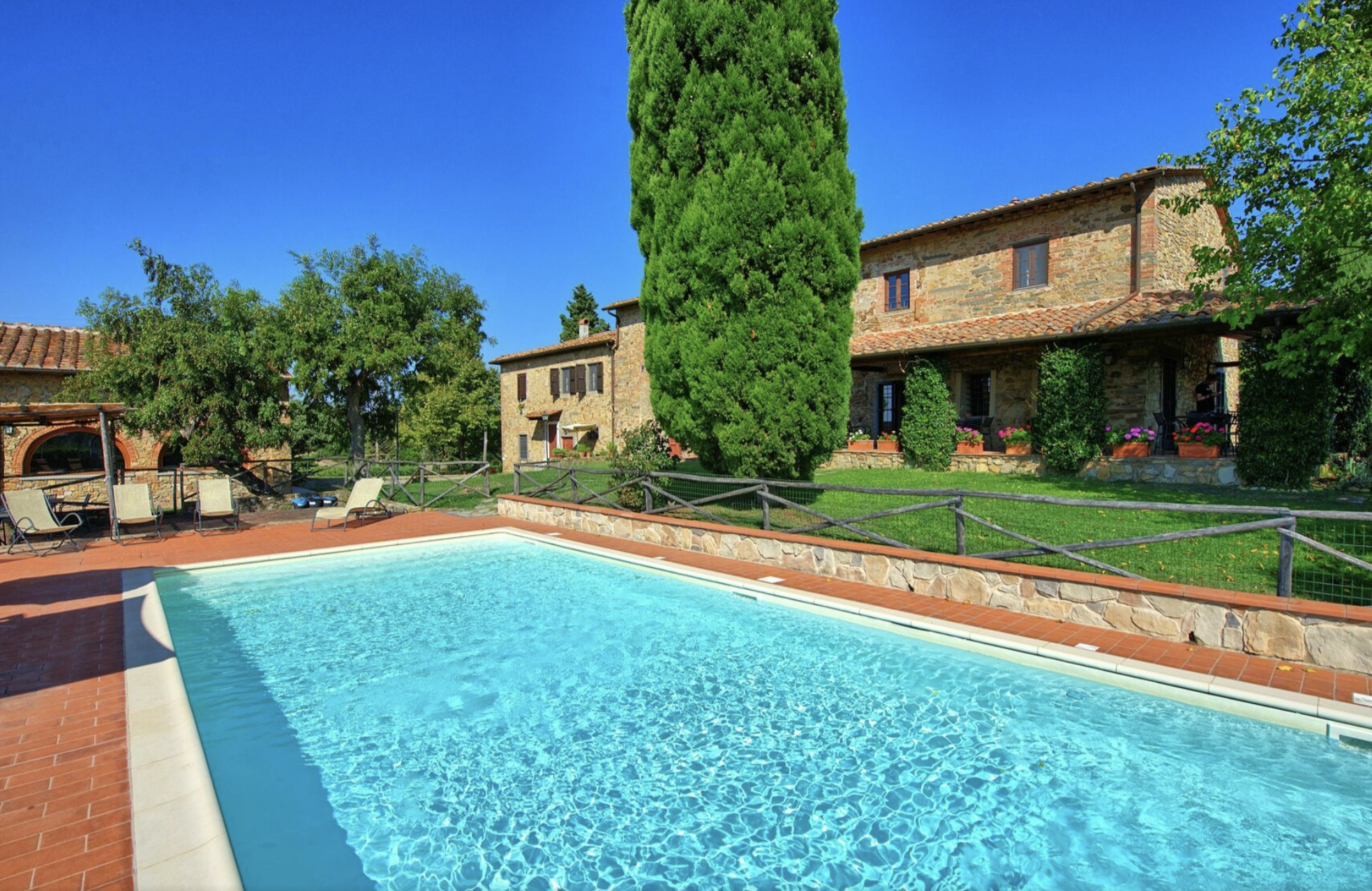 Découvrez cette magnifique maison de vacances indépendante avec piscine privée pour 18 personnes, située au cœur des collines toscanes, à seulement 18 km de la charmante Florence. Cette spacieuse demeure, avec une riche histoire en tant qu'ancienne presse à olives, offre une décoration chaleureuse et confortable dans un style toscan authentique. Entourée de vignobles et d'oliveraies pittoresques, c'est l'endroit idéal pour se détendre et profiter du calme de la campagne.