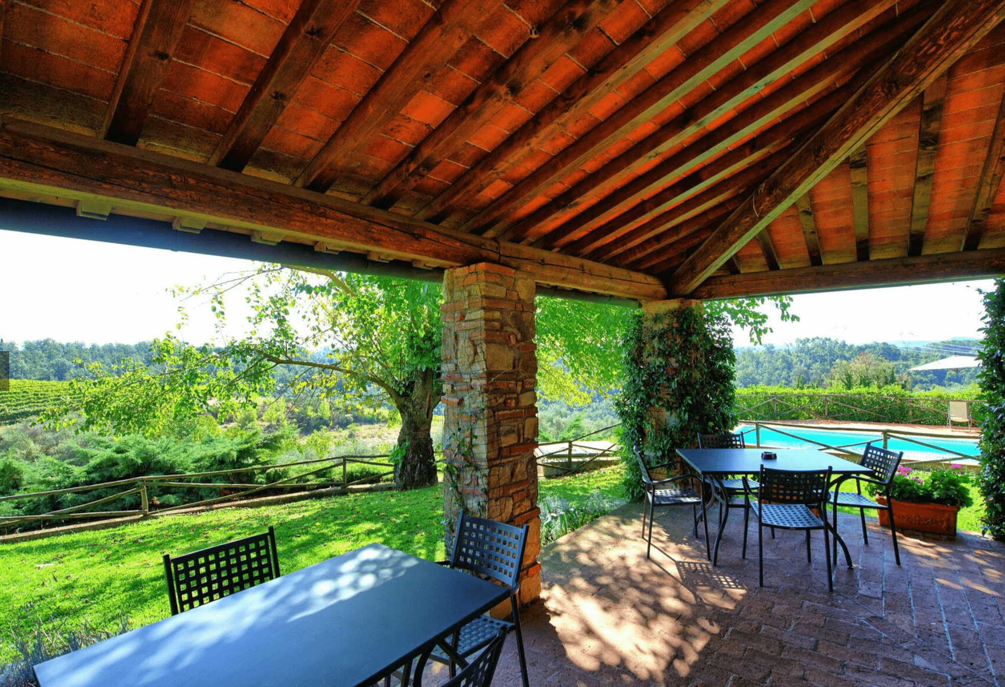La maison de vacances dispose d'un grand jardin panoramique où vous pouvez admirer la vue imprenable sur la nature environnante, tandis que la piscine privée offre une échappatoire rafraîchissante lors des journées chaudes. La piscine, ouverte de mai à octobre, est parfaite pour une baignade ou pour se détendre avec un bon verre de vin du domaine.