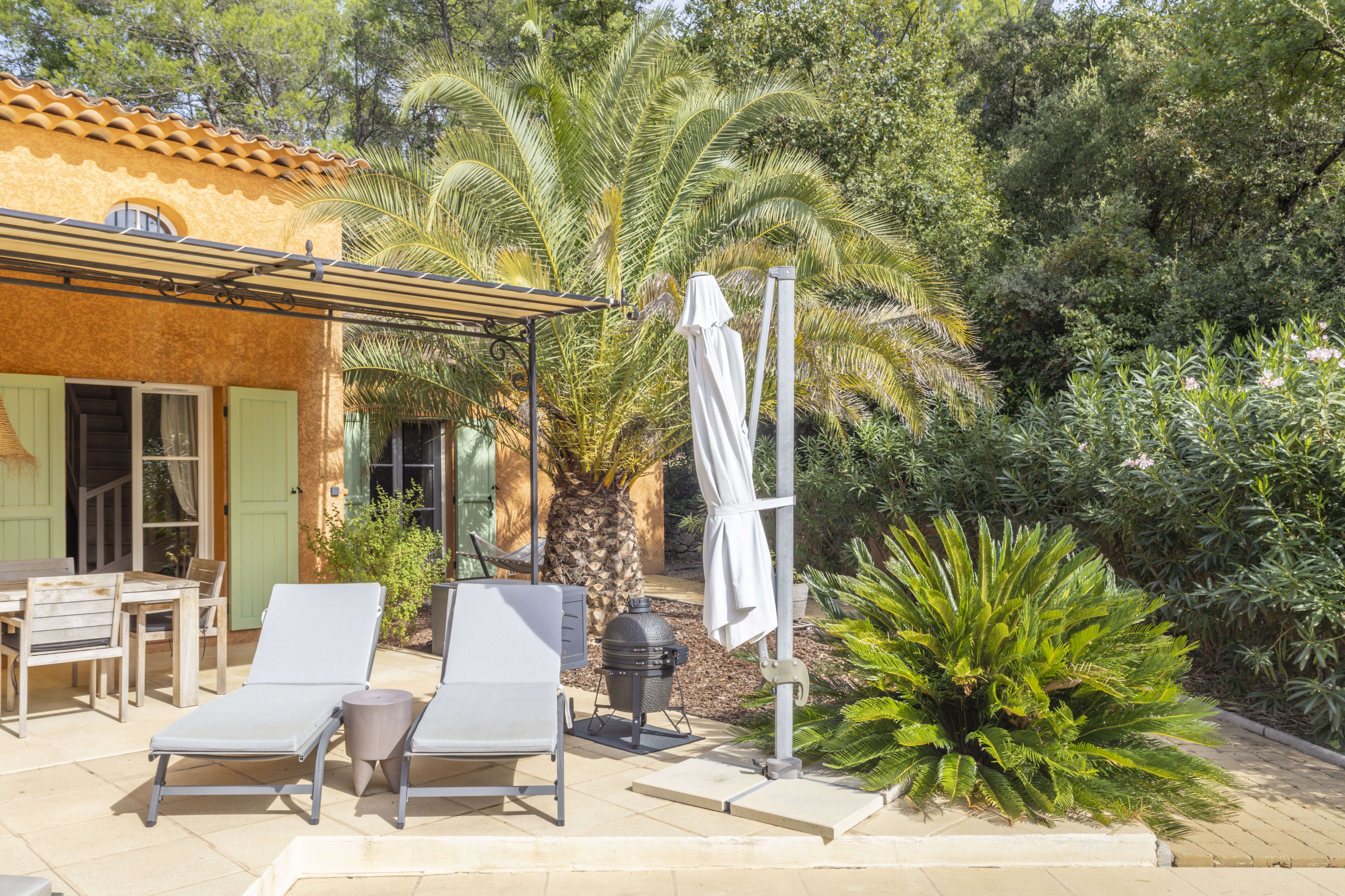 La Bastine est une magnifique maison de vacances pour 6 personnes avec piscine privée, située à distance de marche du centre de Lorgues, au cœur de la région du Var en Provence, en France. Au rez-de-chaussée, vous trouverez une cuisine ouverte entièrement équipée, un salon avec cheminée, une salle à manger, 2 chambres avec lit double et une salle de bains avec douche. Au premier étage, se trouvent la 3e chambre et la 2e salle de bains. Toute la maison est décorée avec goût et de manière pratique, avec des espaces agréables et la climatisation. Une 3° salle de douche aménagée au rez-de-chaussée est accessible de l'extérieur. Cette salle est également idéale après l'utilisation de la piscine. La piscine privée chauffée et éclairée (11x5m, profondeur : 1,8m) est équipée d'une zone de repos, d'escaliers et d'un système d'alarme pour une sécurité supplémentaire. La salle de bains extérieure avec douche, lavabo et toilettes offre un confort supplémentaire. Il y a 2 terrasses couvertes avec suffisamment de mobilier de jardin et de chaises longues. Utilisez le barbecue à gaz ou le Green Egg pour préparer de délicieux repas ! La propriété entière est clôturée et a une superficie de 2800m2, y compris un terrain de pétanque. La propriété garantit une totale intimité, il n'y a pas de vis-à-vis ! Votre maison de vacances est située à distance de marche du pittoresque village de Lorgues (1km), avec ses délicieux restaurants et son marché hebdomadaire bien connu. Laissez-vous complètement immerger dans le charme de La Bastine !