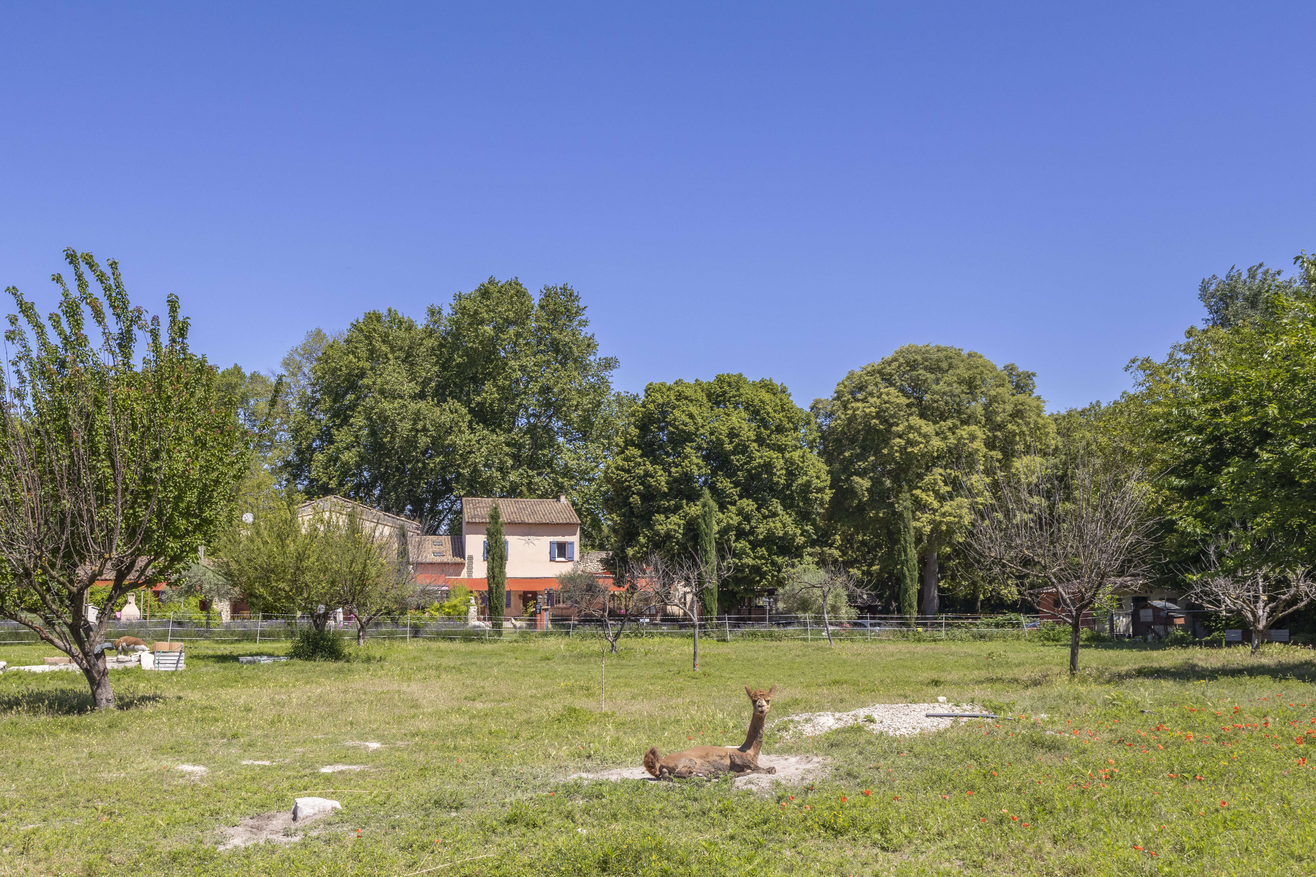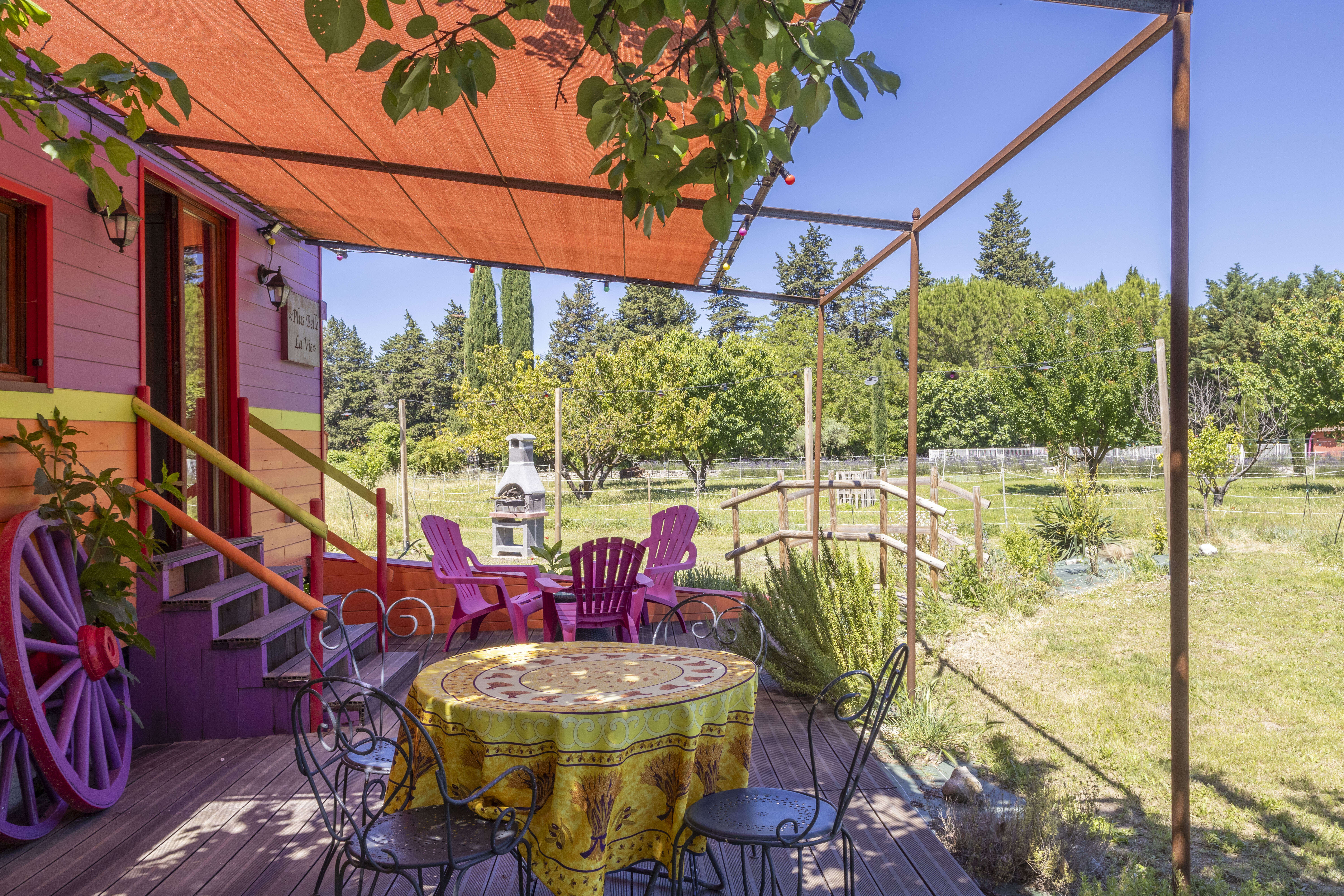 Paradis sur Terre est un magnifique domaine de vacances avec 5 gîtes situé à Velleron en Provence. Chaque gîte peut accueillir 4 à 5 personnes et est équipé de tout le confort. La décoration est chaleureuse et agréable. Il y a de nombreuses possibilités d'activités telles qu'une partie de pétanque, une baignade rafraîchissante dans la piscine commune ou profiter de la magnifique vue depuis un banc le long de la rivière Sorgue. Le calme, la nature et la sérénité sont au cœur de ce domaine de vacances situé à distance de marche du village de Villeron, réputé pour ses marchés charmants et sa poterie. Vous remarquerez que les propriétaires sont de grands amoureux des animaux. Des alpagas aux oiseaux, en passant par les chats, les chèvres, les oies et les chiens. Une véritable petite ferme pour enfants où les plus petits s'amuseront beaucoup ! Cette maison de vacances en Provence est idéalement située pour planifier de nombreuses excursions. Si vous allez vers le sud, vous êtes à seulement 20 minutes en voiture de Saint-Rémy-de-Provence, Salon de Provence et Les Alpilles, Une magnifique zone naturelle, parfaite pour les promenades. Si vous partez vers le nord, le Mont Ventoux pourrait vous défier pour un itinéraire à vélo amusant. Dans les environs, il existe également de nombreuses possibilités de kayak. Les amateurs de sites gallo-romains devraient envisager une visite à Orange ou au Pont du Gard. N'oubliez pas la route des vins et dégustez de délicieux vins de Luberon à Vacquéras, Gigondas et Beaume de Venise. Chacun de ces gîtes est un petit coin de paradis sur terre. Assurez-vous de passer des vacances délicieuses et réservez dès aujourd'hui ! Attention : si vous souhaitez amener un animal de compagnie, les draps ne seront pas fournis. Vous devez les apporter vous-même.