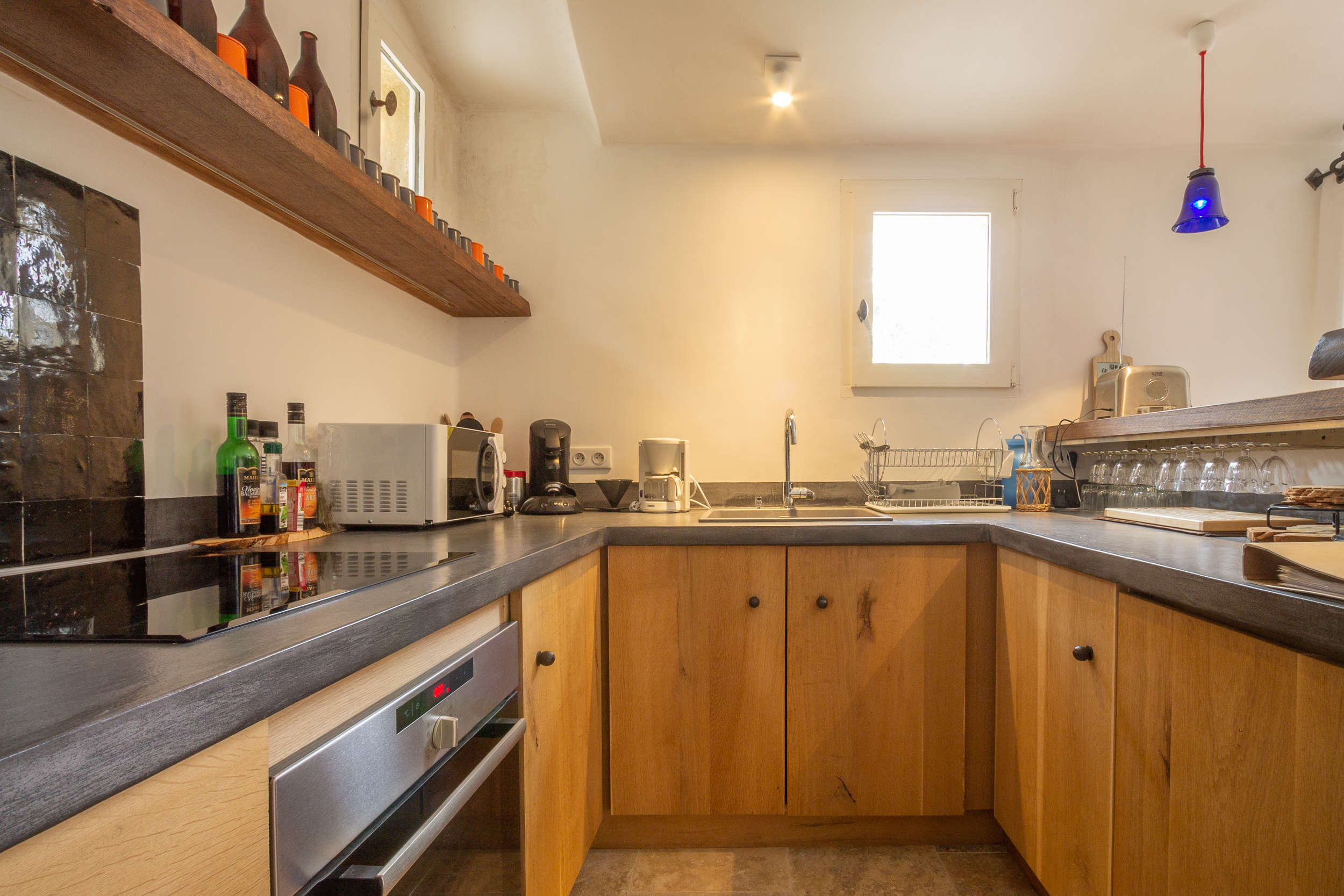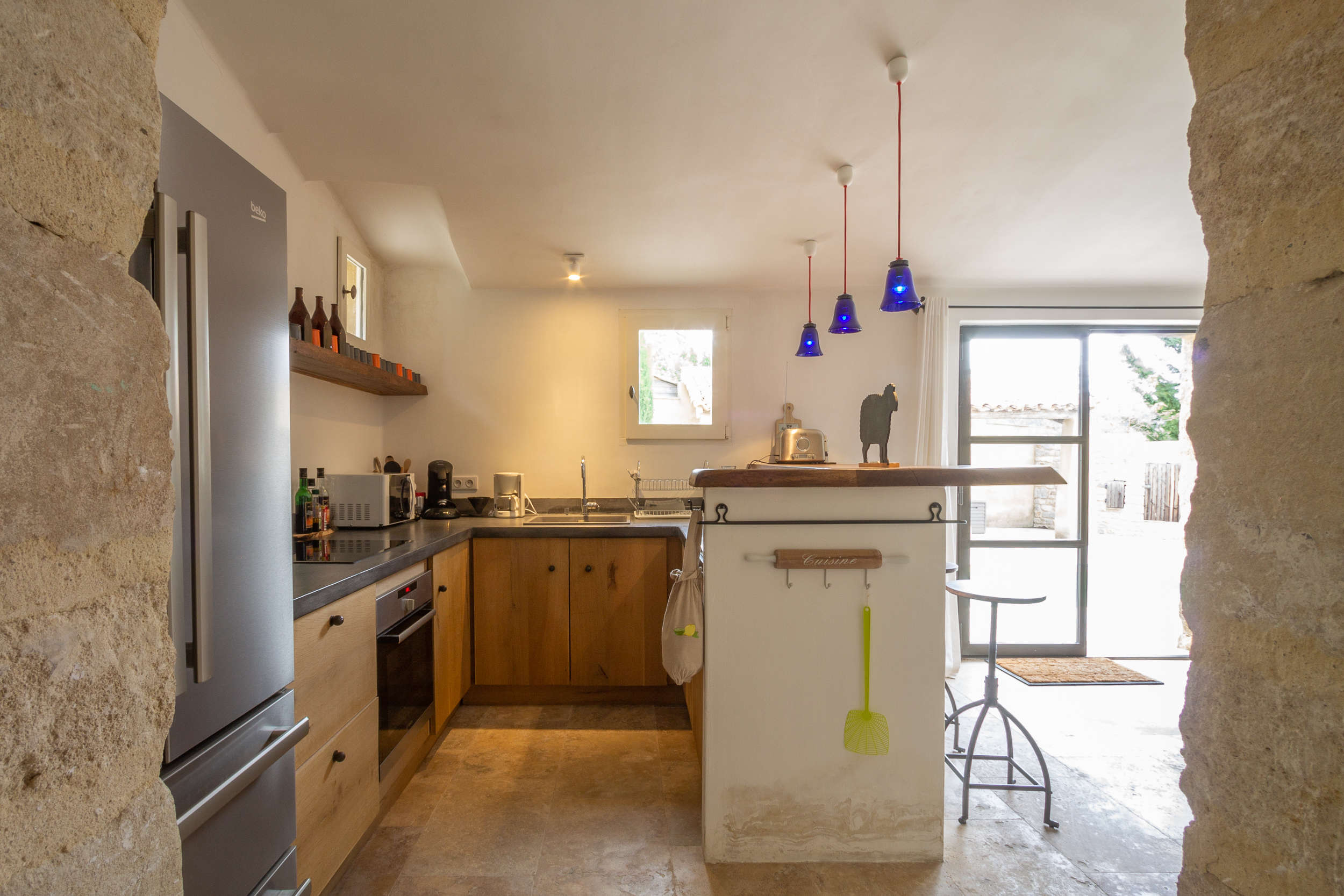 Cette maison de vacances avec piscine privée est une bergerie qui a été rénovée, donc un ancien corps de ferme, et elle a été aménagée avec beaucoup de goût. L’intérieur est baigné de lumière naturelle avec une ambiance cosy et de style. Il y a divan-lit vintage très confortable pour 2 personnes dans le salon. La cuisine ouverte,avec un réfrigérateur américain pratique et 2 tiroirs de congélation, donne sur la grande piscine privée (3x8m - sécurité pour enfants). Près de la piscine, vous trouverez de nombreuses et très agréables terrasses. Grâce à la cuisine ouverte vous pouvez carrément vivre à l’extérieur toute la journée. La cuisine ouverte offre 2 plaques d'induction, double lavabo, plancha et grill + 1 barbecue classique au charbon.