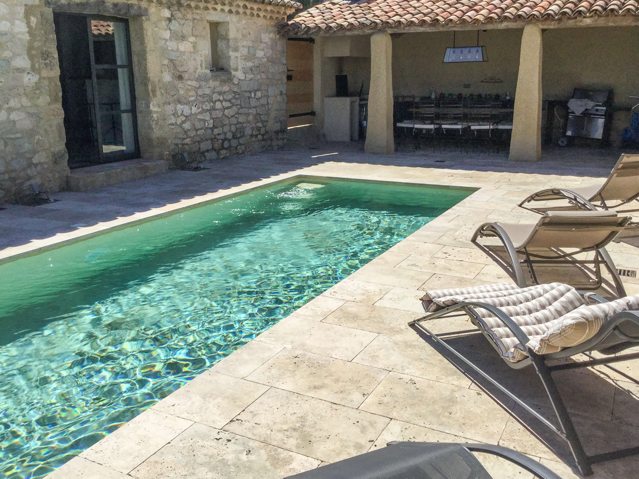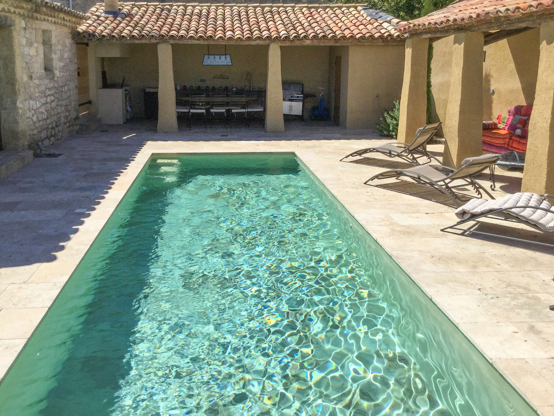 Un petit escalier vous mène au terrain de pétanque et au jardin et de nombreux coins pour se détendre. De là, vous avez une superbe vue panoramique sur la Garrigue. Cette maison de vacances avec piscine privée dans le Gard (Garrigue, Languedoc-Roussillon) est parfaite pour 2 couples ou une famille. Veuillez noter que les enfants de moins de 10 ans ne sont pas acceptés en raison des dispositifs de sécurité.