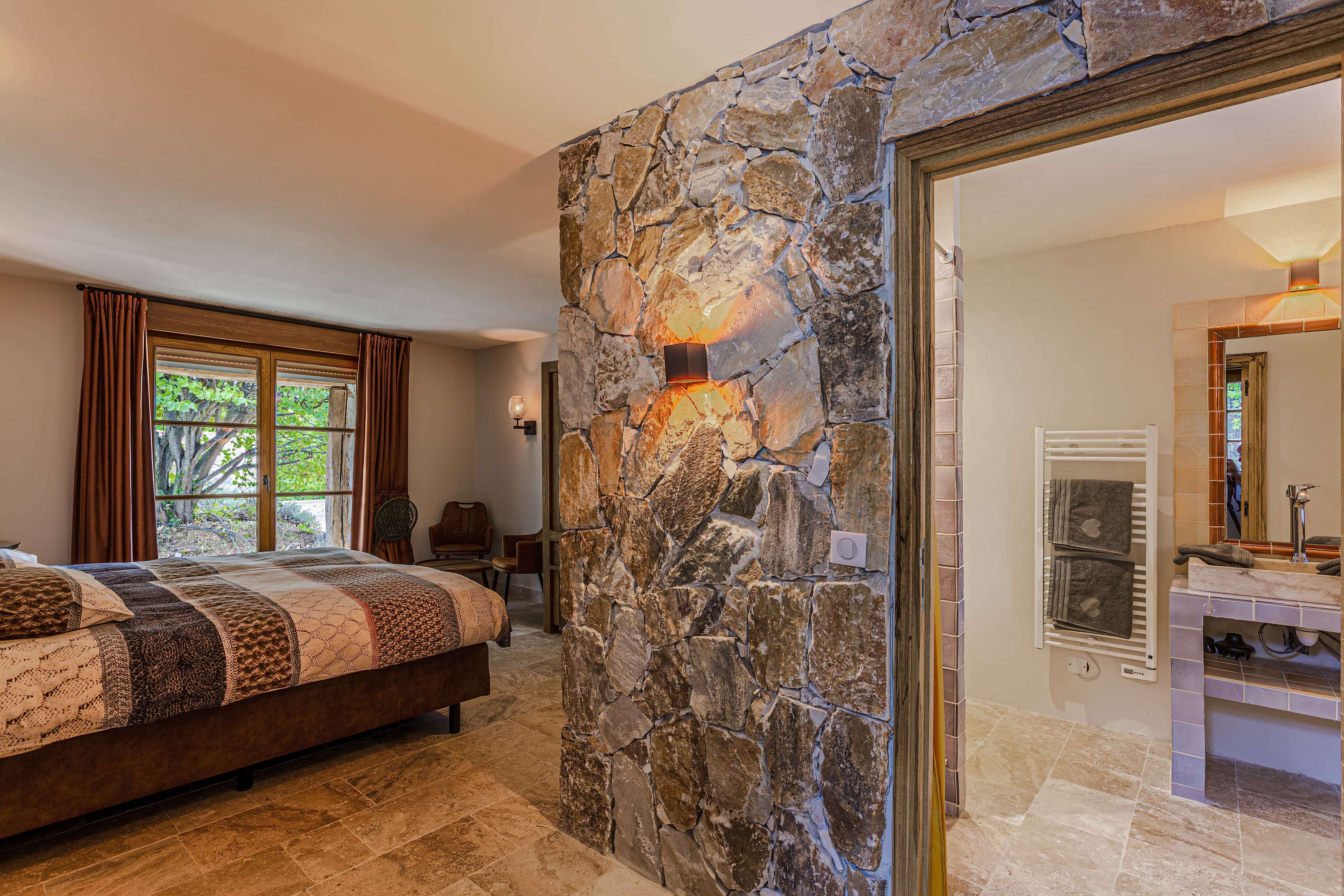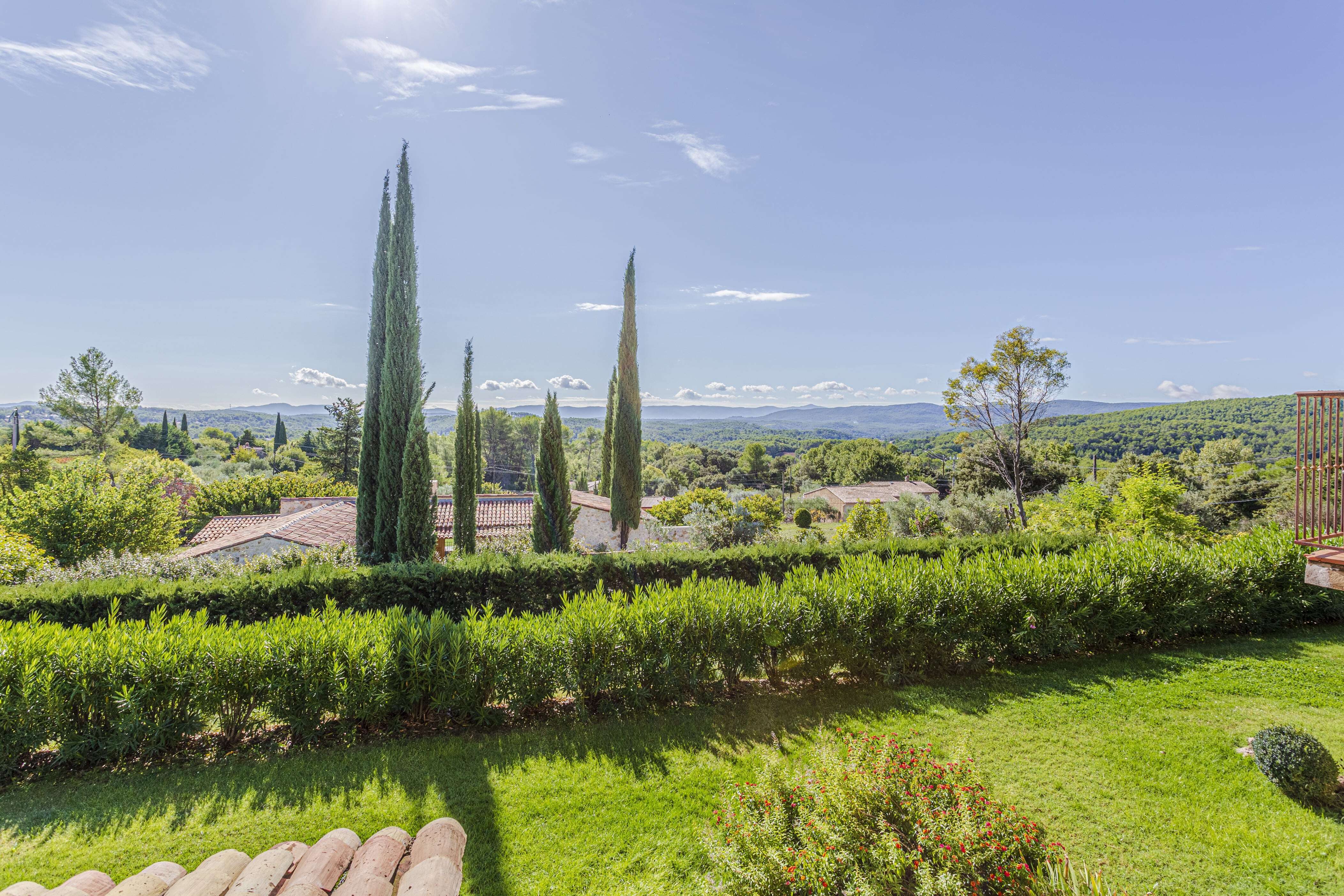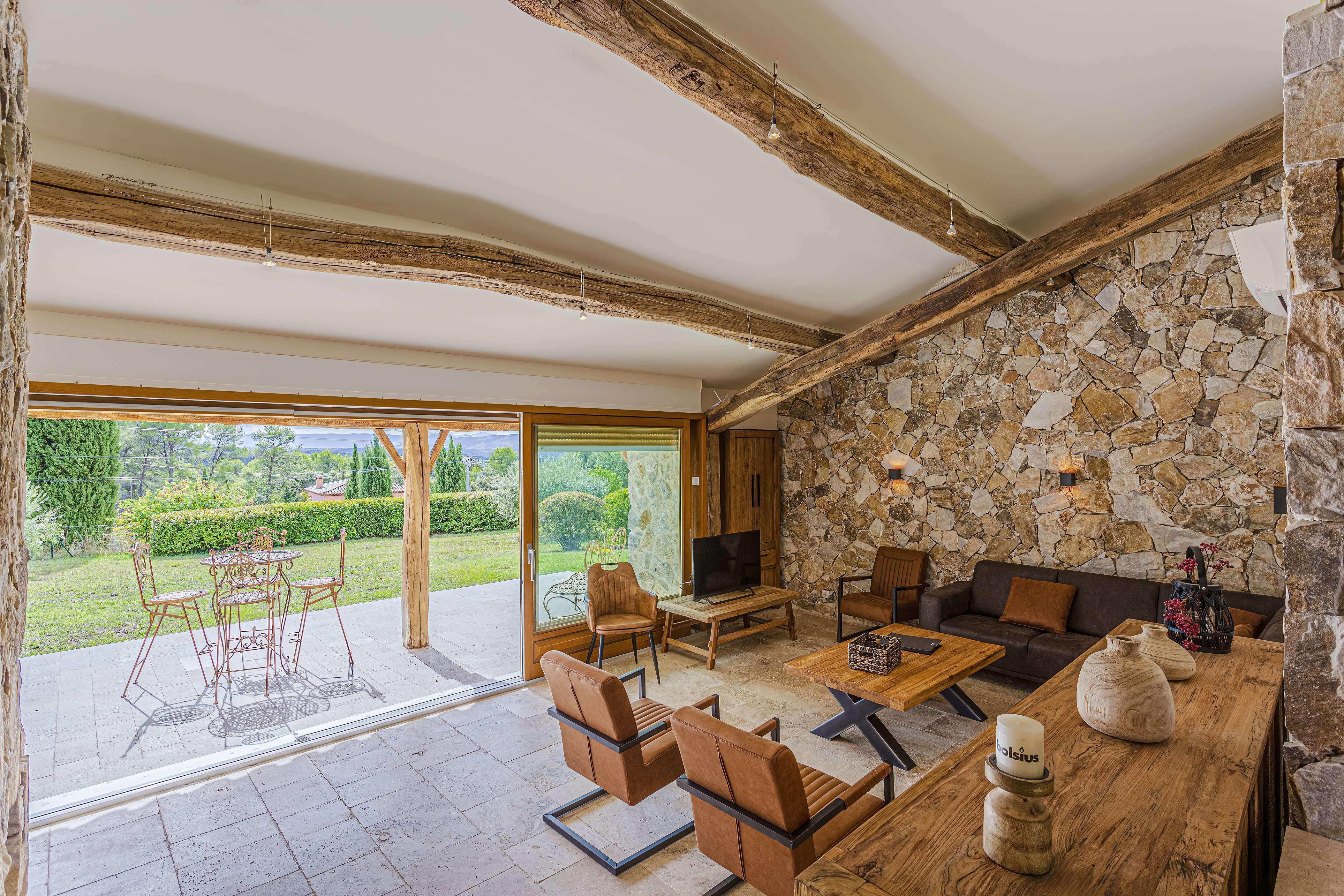 Les Cypres est une maison de vacances moderne avec piscine privée chauffée pour 10 personnes située à Lorgues (Var, Provence-Alpes-Côte d'Azur). La maison de vacances est située au calme dans un magnifique cadre verdoyant, à deux kilomètres de la pittoresque Lorgues avec toutes les commodités pratiques et à seulement 25 minutes de la mer. La maison de vacances spacieuse avec piscine est située sur pas moins de 4000 m2 de jardin clos (non hermétique). Depuis le jardin et les deux grandes terrasses couvertes, vous pouvez profiter d'une vue particulièrement belle sur le Massif des Maures. La grande piscine (5x10m) dispose de chaises longues et de parasols confortables et il y a une terrasse couverte avec un hamac pour rêver. En juillet et août, l'eau de la piscine a sa propre température merveilleuse. Si vous le souhaitez, vous pouvez faire chauffer la piscine au printemps et en automne. Dans le jardin il y a une table de ping-pong, un terrain de pétanque, un trampoline, un bac à sable, un toboggan et une belle pelouse où les enfants peuvent jouer. L'intérieur a été meublé de façon moderne tout en conservant des éléments authentiques tels que la pierre naturelle et de belles poutres en bois au plafond. Le salon dispose d'une télévision LCD avec Apple TV qui donne accès à YouTube, Netflix et à tous les réseaux de tous les pays. Au salon ouvert, vous trouverez la salle à manger spacieuse avec cuisine. C'est un bel espace avec de grandes portes coulissantes vers la terrasse couverte. Il y a une longue table à manger en bois et par extension vous arrivez à la cuisine moderne équipée avec cuisinière à gaz avec deux lave-vaisselle et deux réfrigérateurs.