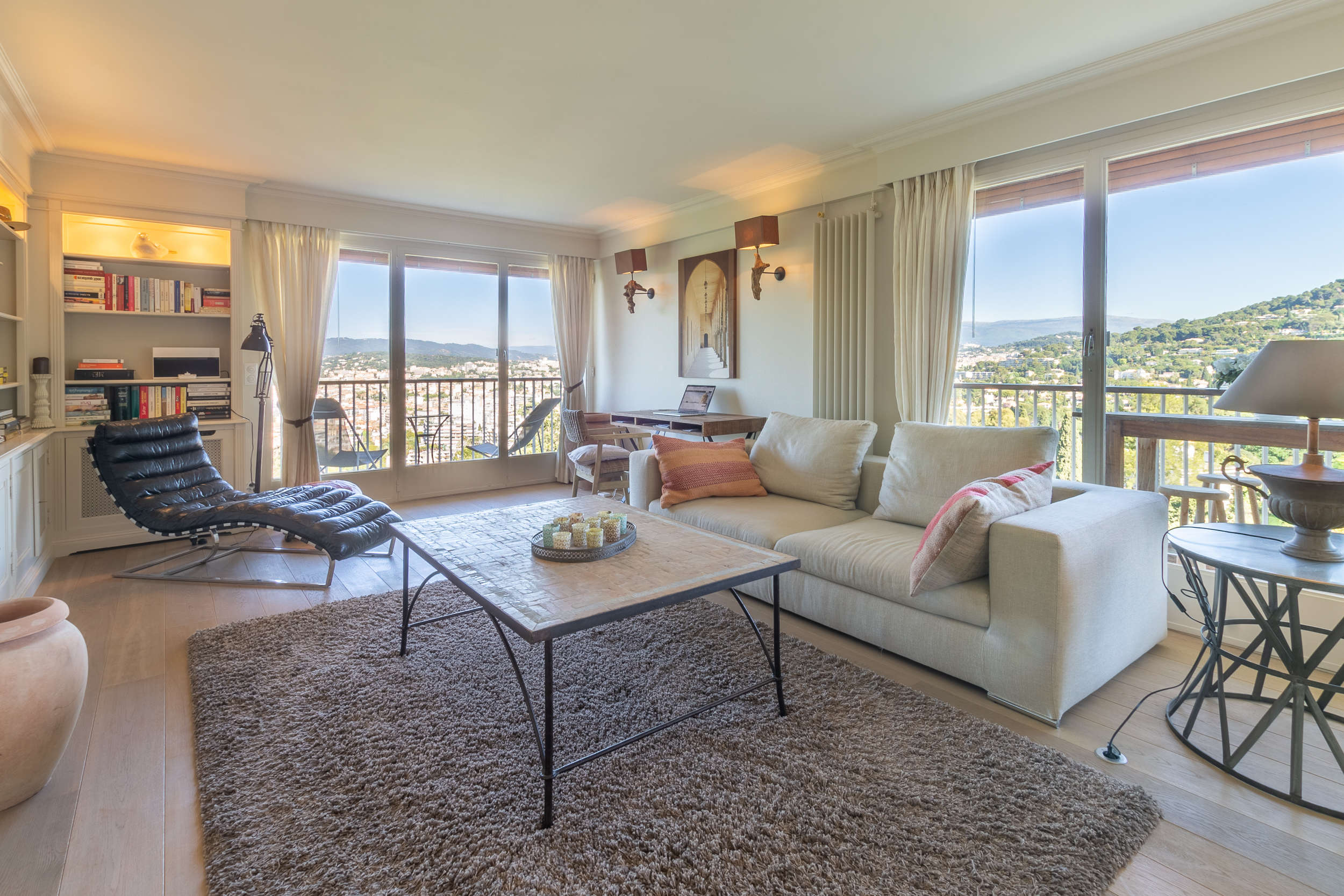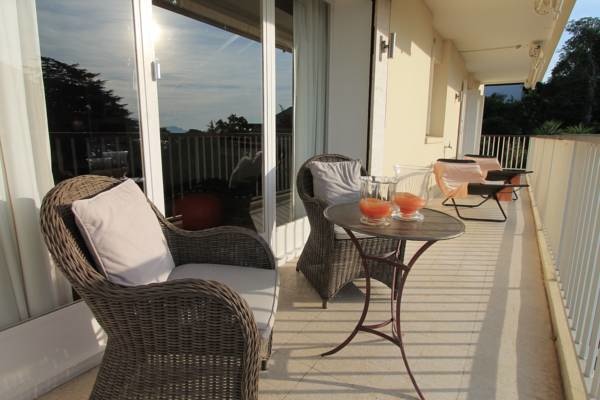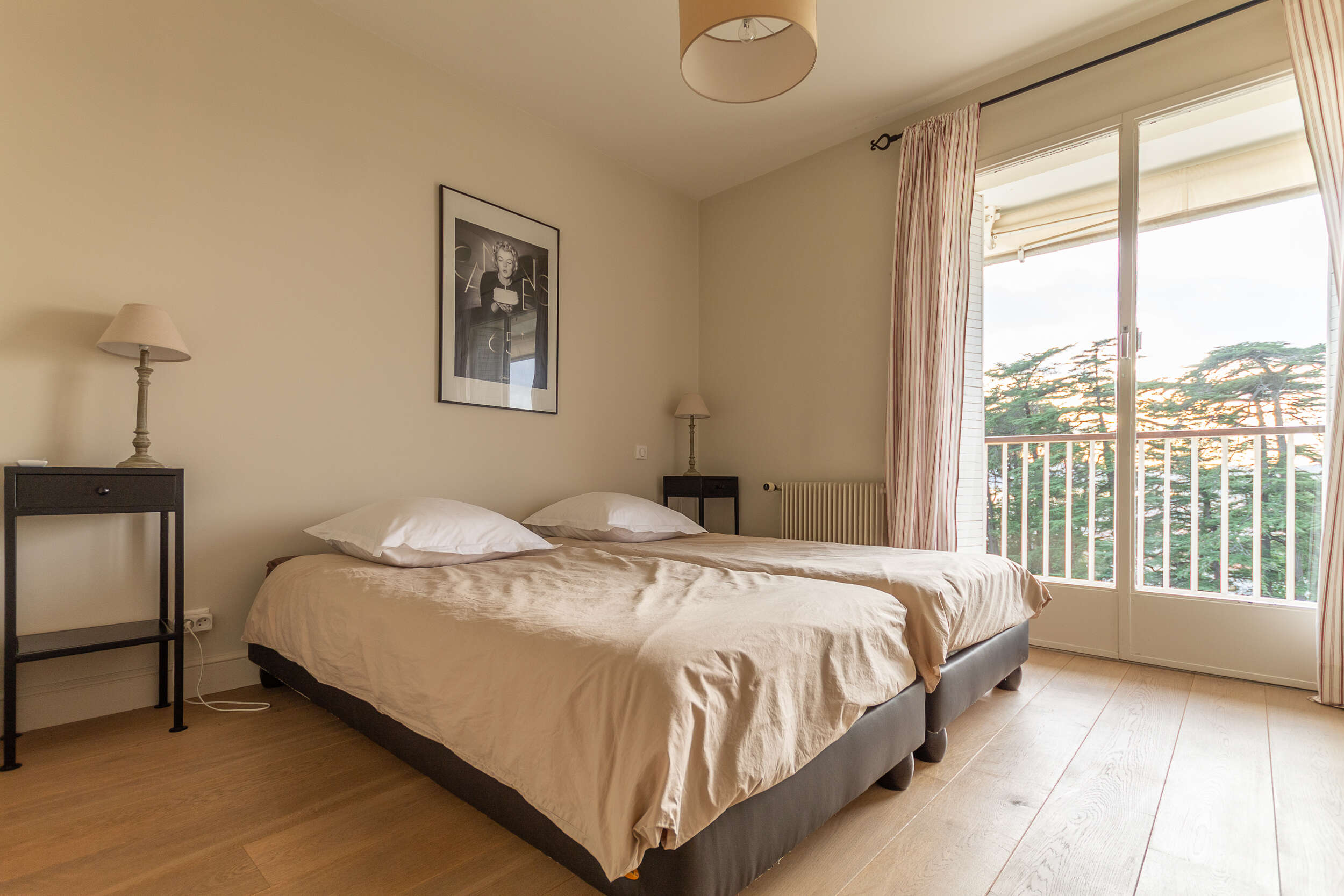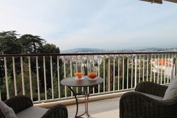 Les Pins Tranquilles est un ravissant appartement entièrement rénové situé dans le quartier très résidentiel « La Californie » à Cannes Provence-Alpes/Côte d'Azur), le nec plus ultra de la ville. Ce luxueux appartement est situé au grand calme, pourtant à quelques enjambées de la ville animée de Cannes. L’appartement en coin est au quatrième étage (ascenseur) et entièrement entouré de terrasses. La vue est phénoménale, sur la ville de Cannes, les collines environnantes et un coin de mer. Vous pouvez profiter de la ravissante vue sur les fabuleuses terrasses avec un bon livre, un verre ou un délicieux repas. Le soir, la magie opère puisque vous avez le coucher de soleil pour vous épater, et les lumières de la ville à la tombée de la nuit. Le séjour et les chambres sont spacieuses, et profitent tous de cette belle vue. Chaque chambre offre accès à une terrasse. Les meubles et la décoration sont harmonie totale et tout y a été sélectionné avec goût. Les lits simples peuvent être rapprochés. Chaque chambre propose une bonne nuit de repos, volets roulants dans le séjour et la cuisine est très moderne. La Croisette n’est qu’à 15 minutes à pied, la boulangerie, le boucher et les petits restaurants sont dans les alentours immédiats. Cet appartement est d’un excellent rapport qualité-prix pour ceux qui recherchent une situation tranquille et une superbe destination. Cannes, connue pour sa Croisette de renommée mondiale, son festival du film, les nombreuses et belles boutiques, ses musées intéressants, la vieille ville bien préservée, ses belles plages et nombreux petits restaurants, et bien plus encore... Bien des tentations vous attendent.