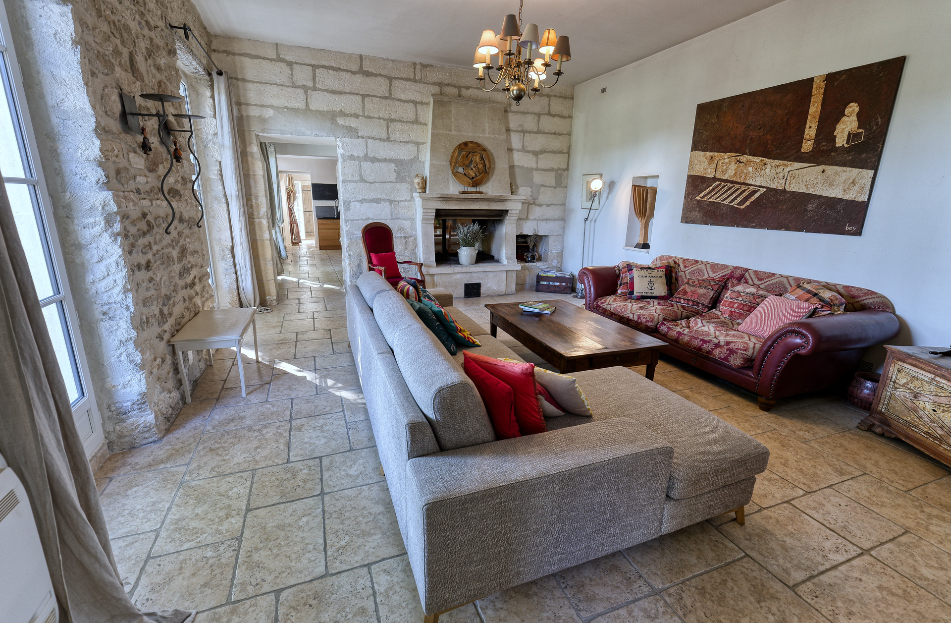 Le séjour est très agréable. Vous pourrez profiter du grand feu ouvert depuis le séjour ainsi que la cuisine. Toutes les pièces ont un accès direct sur la terrasse par des portes-fenêtres. Il y a un endroit pour les enfants où ils peuvent jouer des jeux de sociétés ou lire un livre.