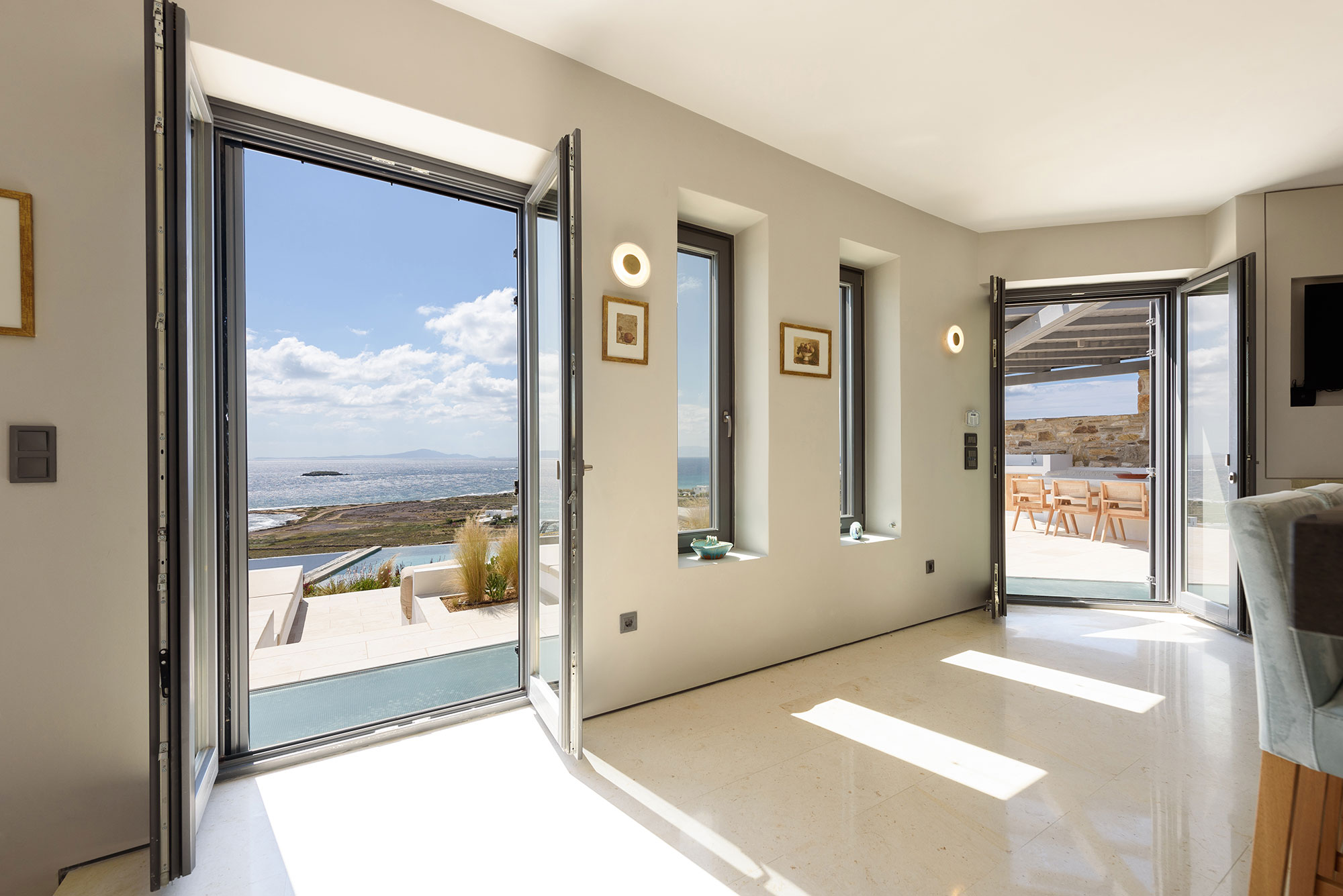 La Villa Brisea est une élégante maison de vacances avec piscine privée pour 8 personnes, magnifiquement située à Paros (Grèce) avec une vue imprenable sur la mer Égée et l'île de Naxos. La villa se trouve à seulement 150 mètres de la plage de Golden Beach, où vous pourrez rejoindre la mer azur en quelques minutes à pied et sentir la brise marine rafraîchissante.