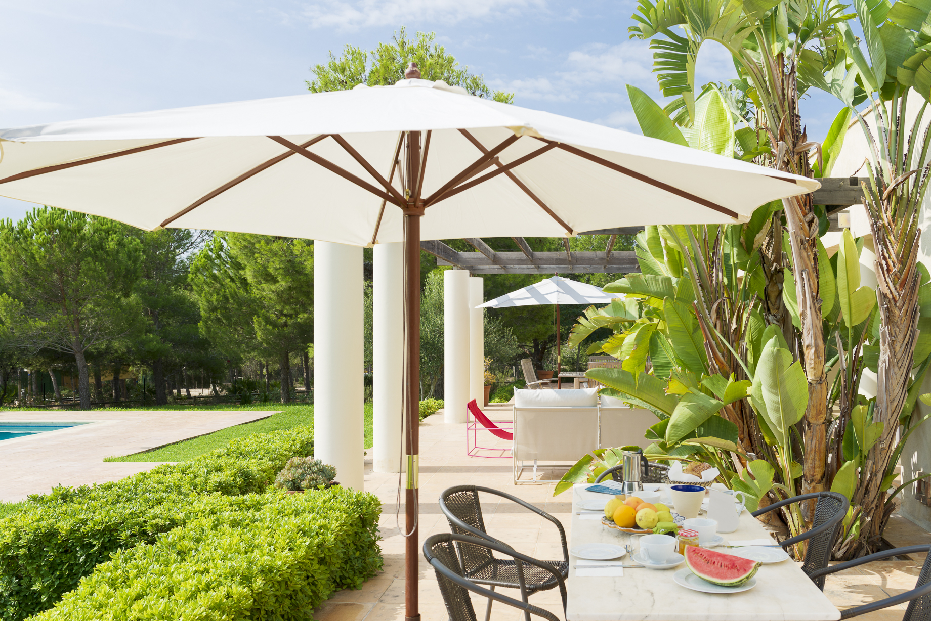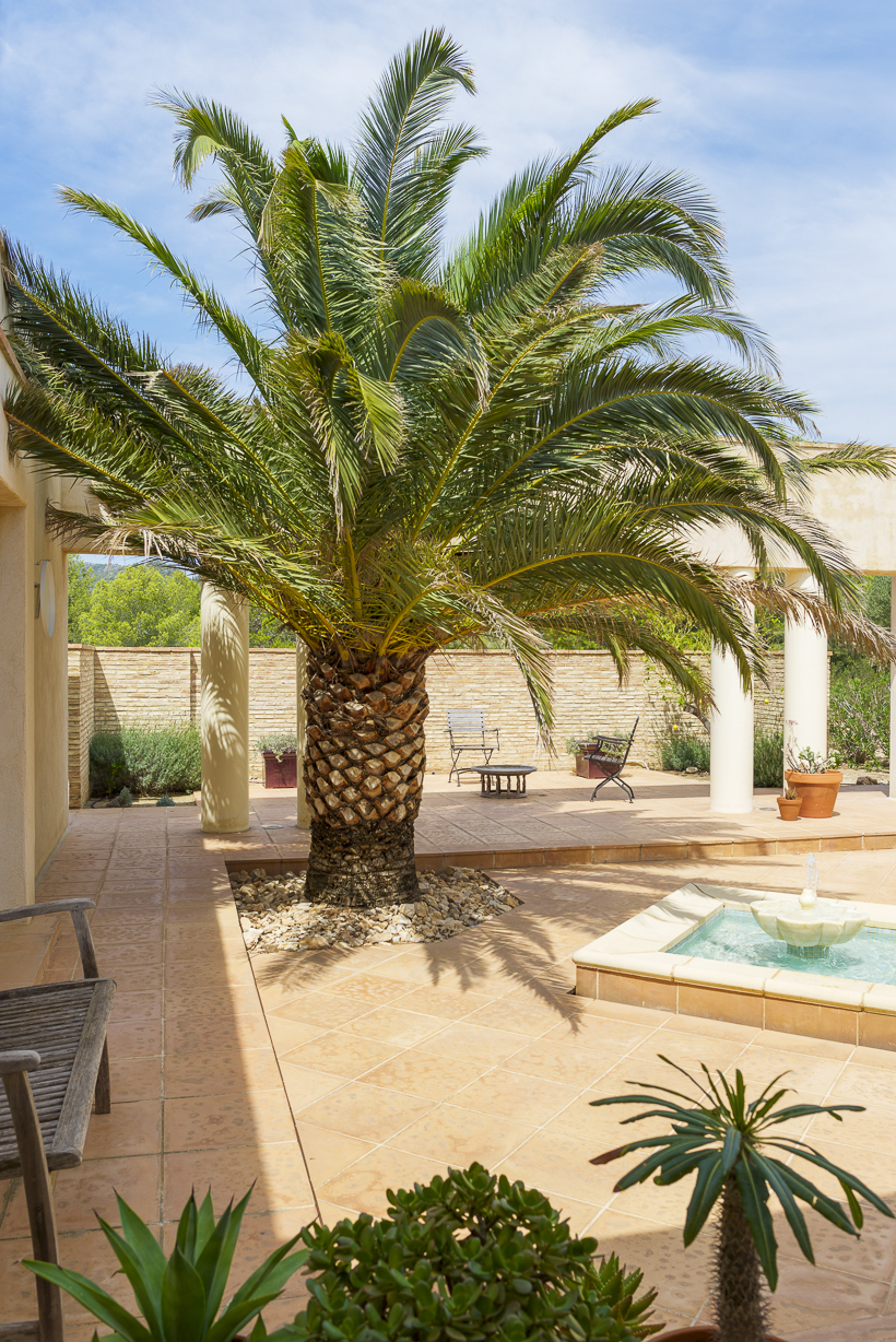 La grande terrasse est directement accessible depuis le grand salon central, la salle à manger et la cuisine, où on passe volontiers plus de temps que nécessaire, ainsi que depuis la chambre principale. D'autres terrasses agrémentent encore la villa et ses chambres. Le petit salon, le bureau ouvert et 2 des chambres de la maison donnent sur le grand patio de la villa.