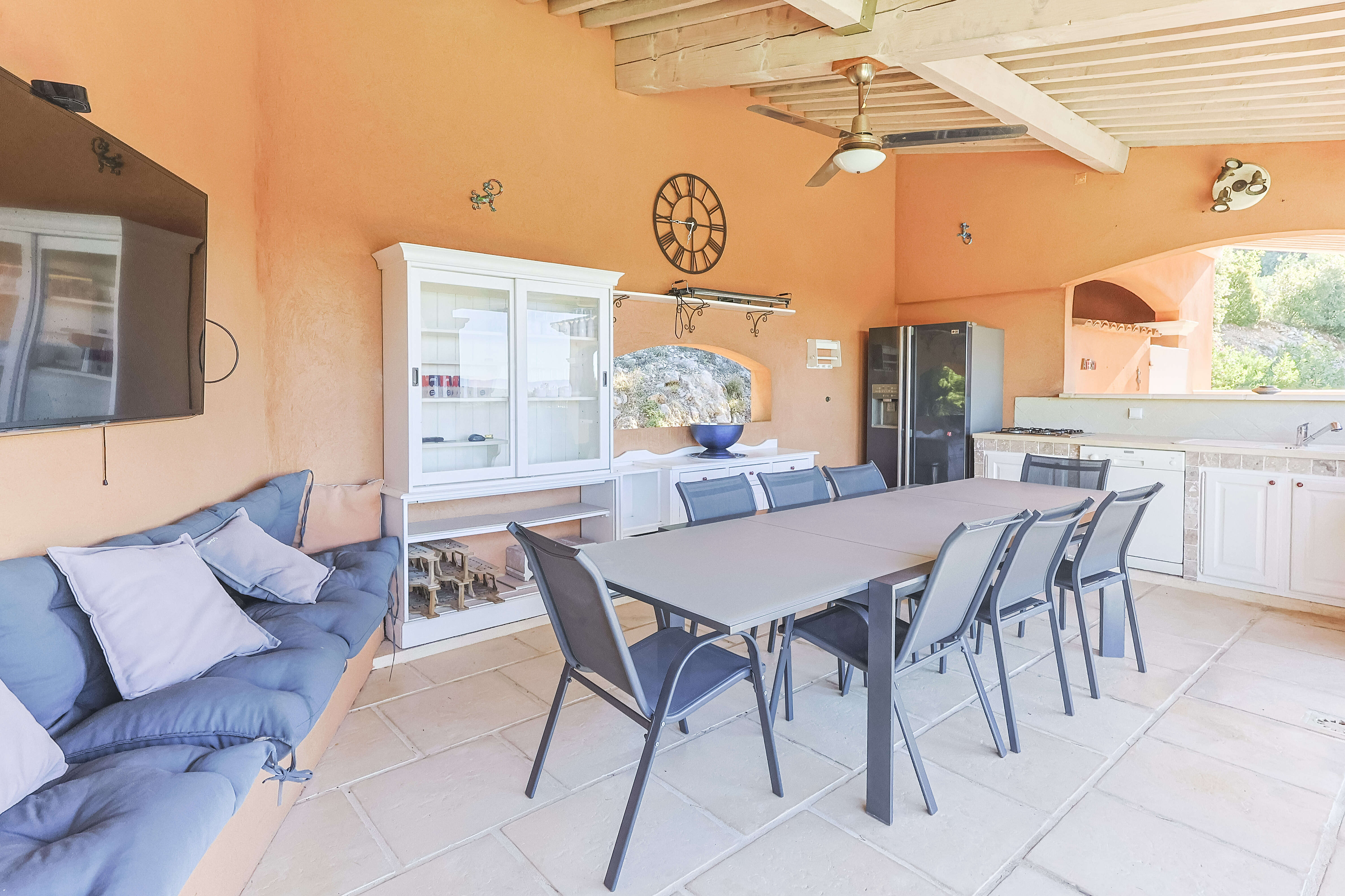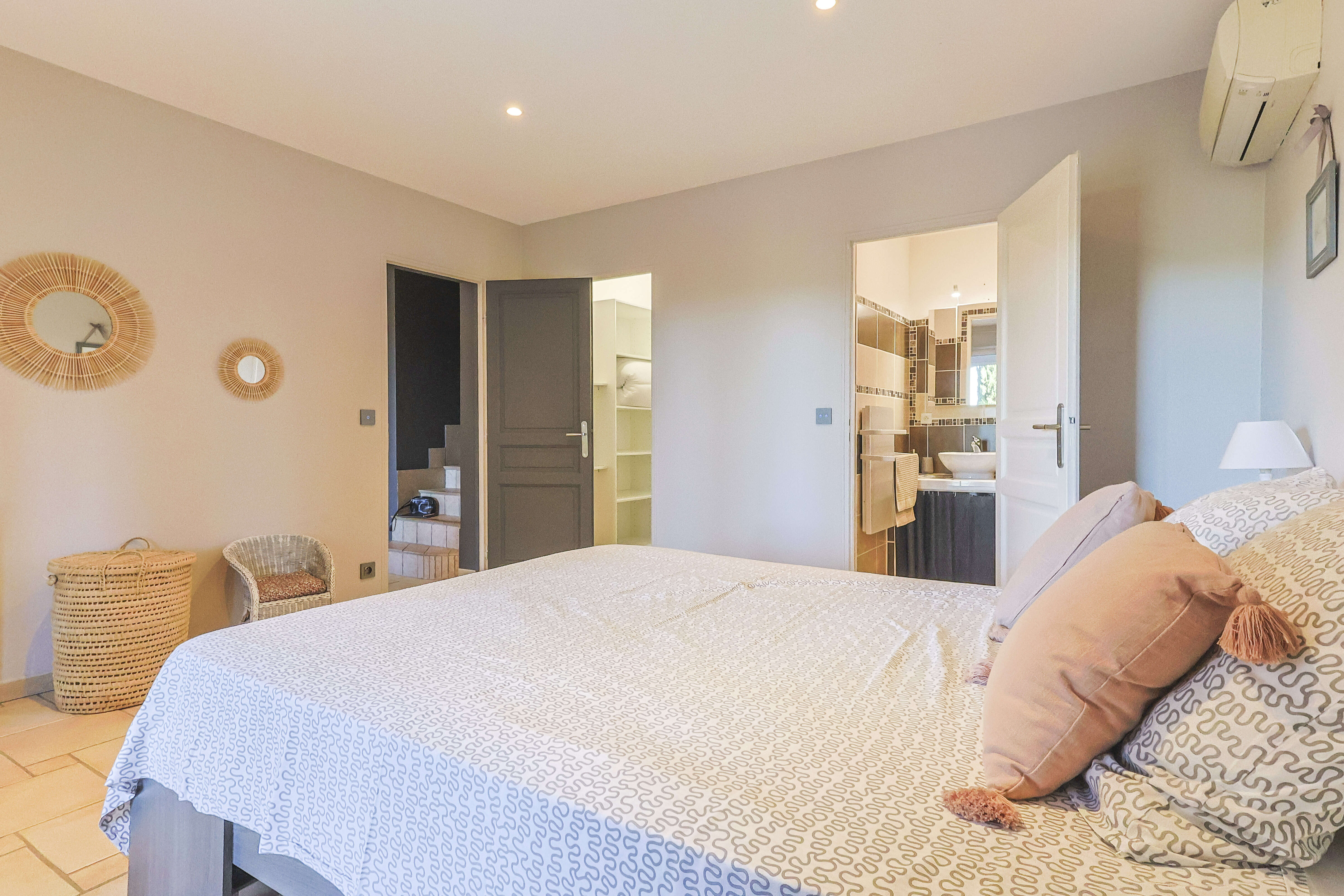 Cette maison de vacances typiquement provençale et luxueuse s'étend sur deux niveaux. Au rez-de-chaussée, une cuisine entièrement équipée, un salon chaleureux et une chambre avec salle de douche privative vous attendent. Au rez-de-jardin, trois chambres supplémentaires et deux salles de bains assurent un hébergement spacieux et confortable. Un studio avec kitchenette, une chambre double et une salle de bain privative, ainsi qu'un divan-lit pour deux personnes, permet un d'accueillir jusqu'à 12 personnes dans la villa. Toutes les pièces à vivre ainsi que 4 des 5 chambres sont climatisées.