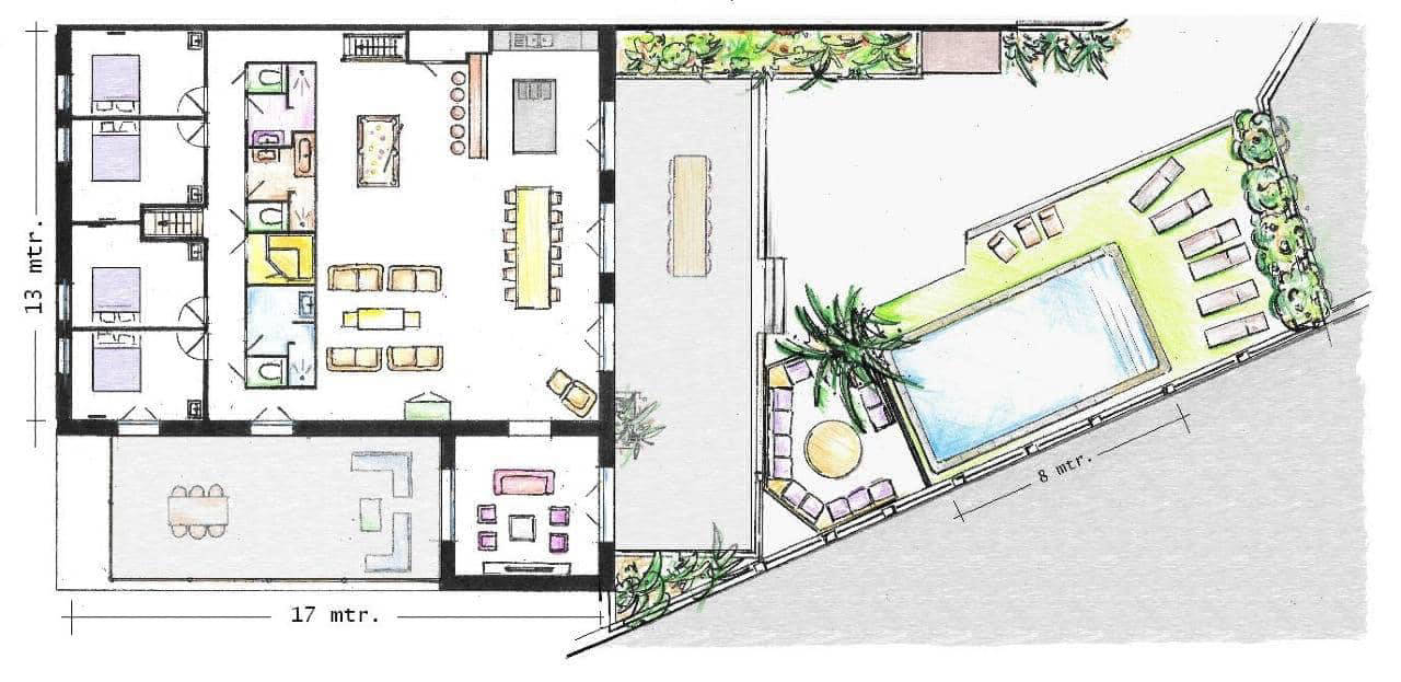 La maison de vacances Villa Micky dispose d'une grande piscine privée (8m x 4m) à l'eau salée et est chauffée de fin avril à fin octobre. La piscine est sécurisée par une couverture électrique. Il y a également une grande terrasse sur le toit sur le côté de la maison avec une belle vue sur les toits de Villedaigne.