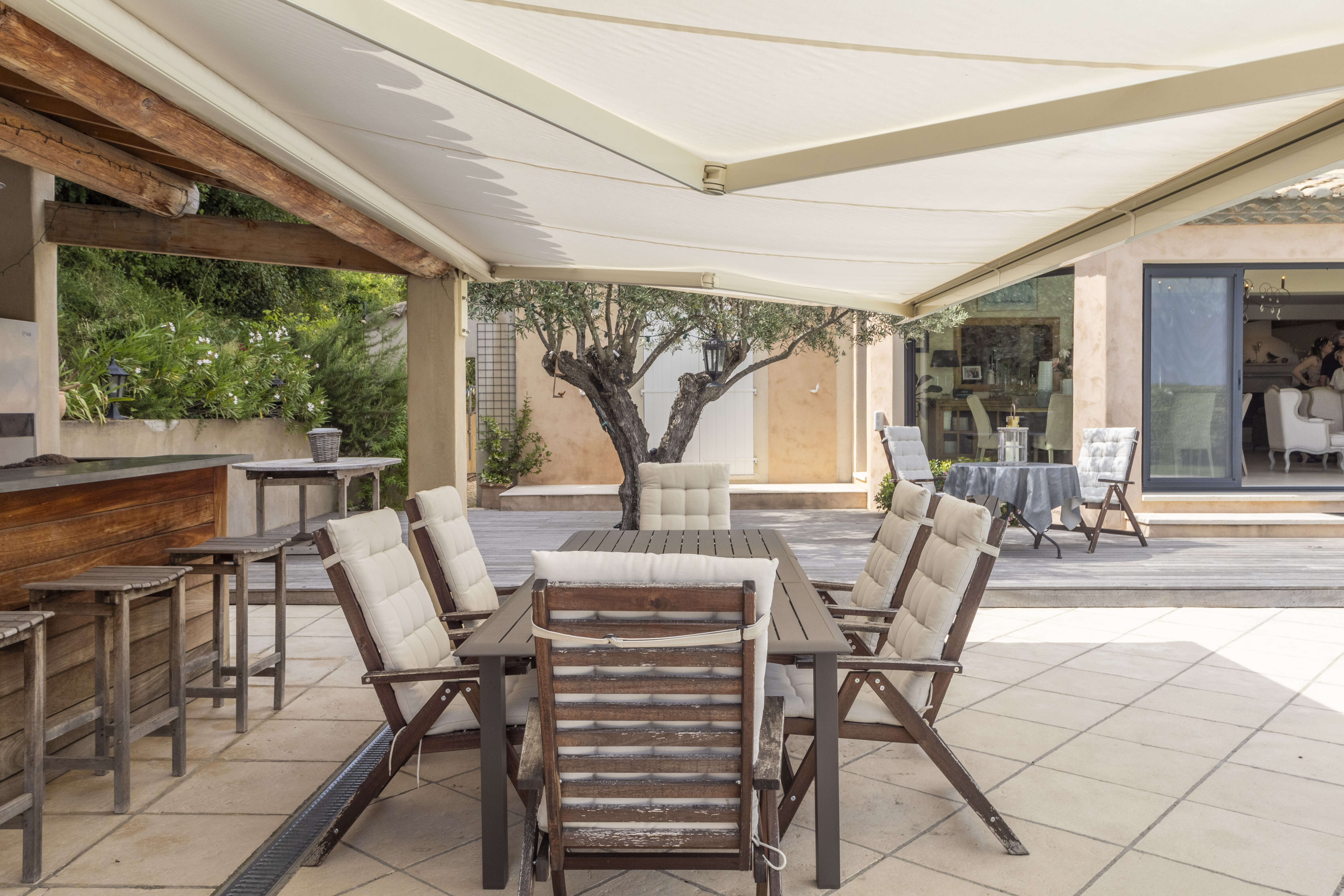 Pour vous rafraîchir, le jardin dispose d'une piscine privée (9x4,5m, profondeur 1.40m) avec éclairage et volet roulant électrique, entouré d'une terrasse ouverte et couverte avec salon d'extérieur. Vous trouverez également un poolhouse avec son bar, frigo, lavabo & coin repas, un barbecue et une plancha pour des moments conviviaux autour de la piscine.