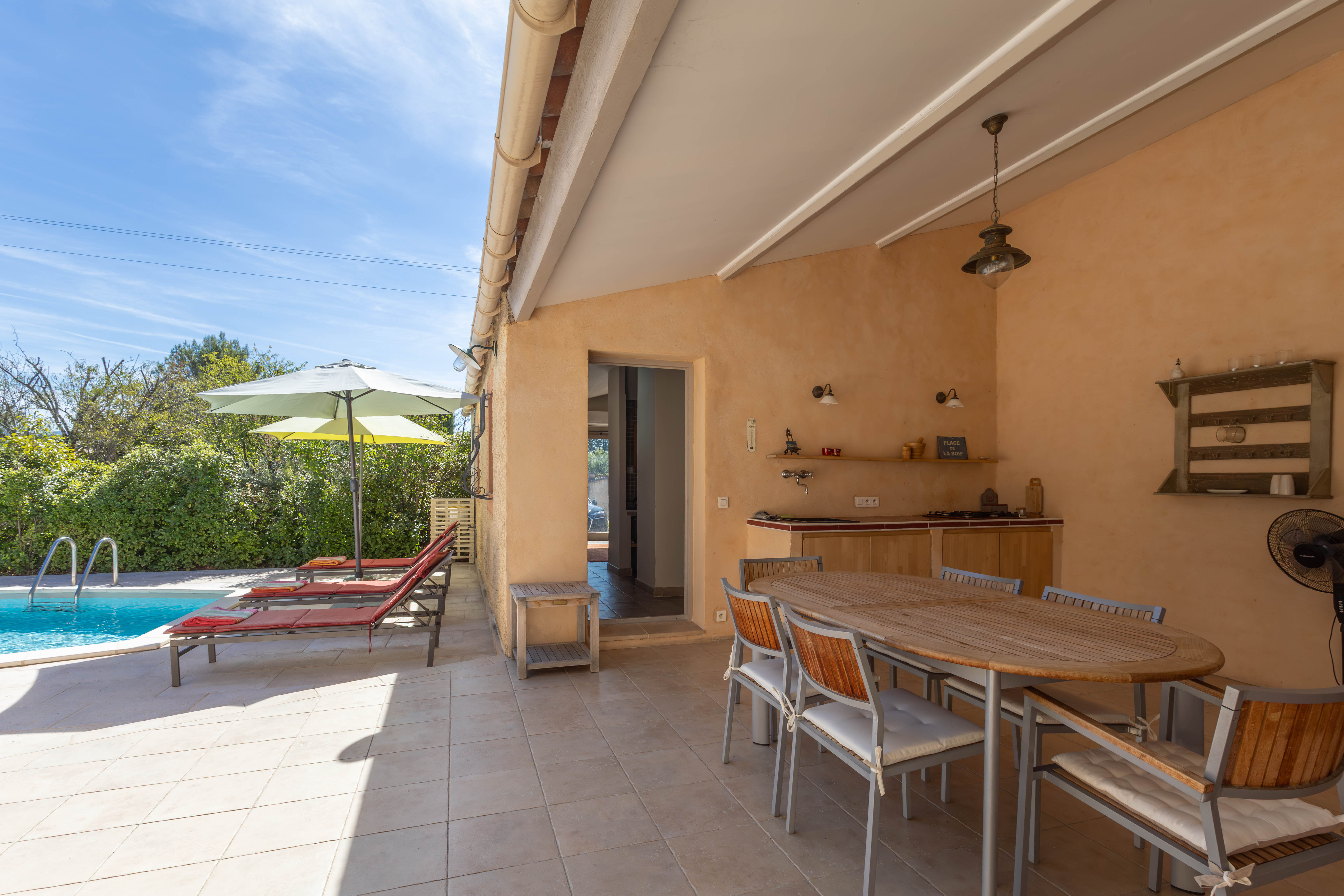 Extérieur : entouré de verdure Autour de la villa s’étend un domaine privé de 1 200 m² où vous pouvez profiter du soleil et de l’air pur en toute tranquillité. La piscine privée (8 x 4 mètres) invite à la fraîcheur pendant les journées chaudes, tandis que les terrasses autour de la maison sont parfaites pour le petit-déjeuner au soleil ou pour dîner sous les étoiles. La cuisine d'été rénovée complète la vie en extérieur avec tout le nécessaire pour profiter pleinement du mode de vie méridional. Ici, tout respire la Provence, du parfum du romarin au chant léger des cigales au crépuscule.