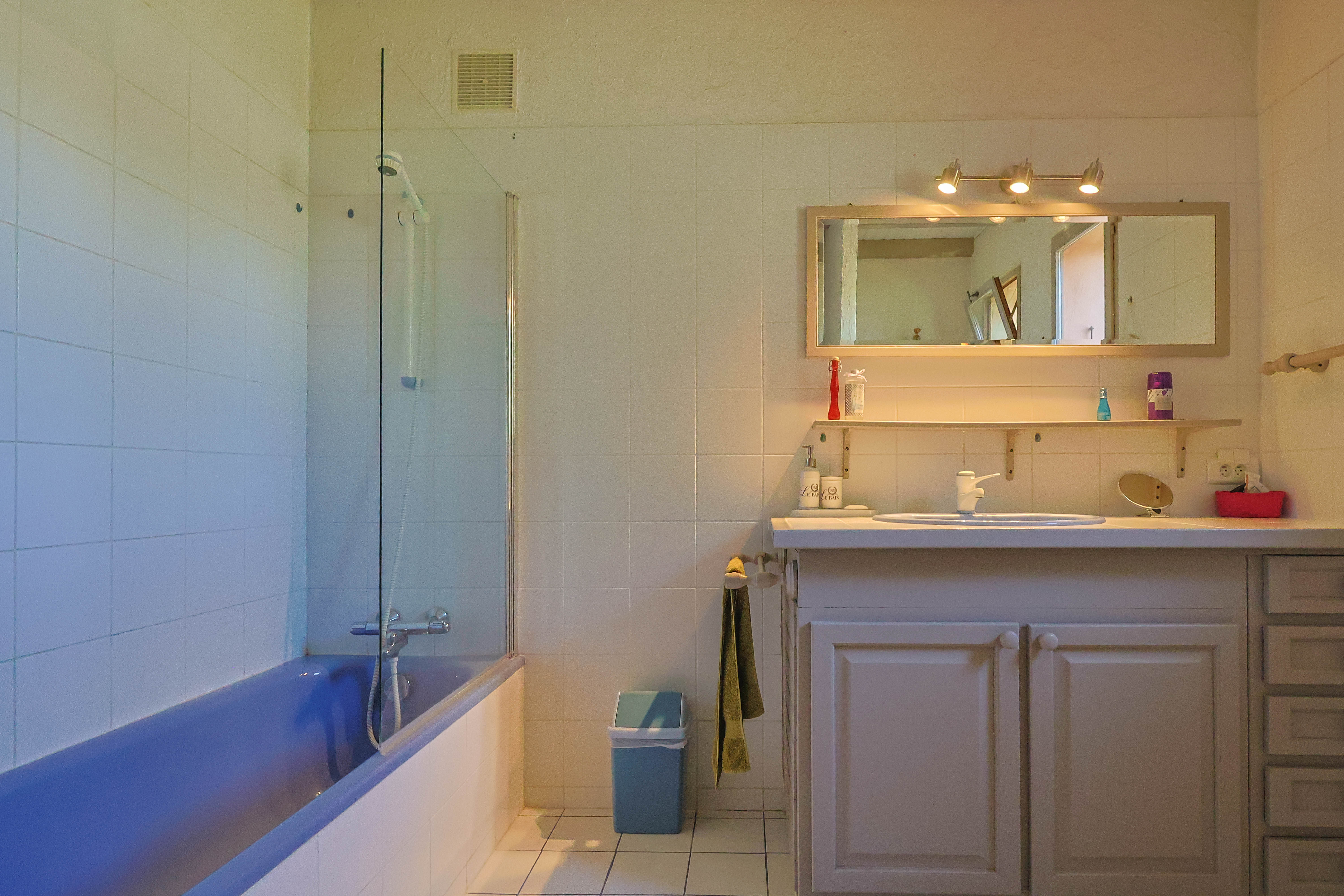 Intérieur : confort et convivialité L’intérieur de cette maison de vacances respire la chaleur et la convivialité. La maison est très spacieuse et décorée avec goût, ce qui permet de s'y sentir tout de suite chez soi. Près de la piscine se trouve un studio indépendant équipé d’un canapé-lit confortable pour deux personnes, d’un toilette supplémentaire et d’une salle de bain moderne avec deux douches – idéal pour ceux qui recherchent un peu plus de confort. La véranda est particulièrement agréable au printemps et en automne : un endroit parfait pour savourer un bon verre de vin, la douce lumière et le calme.