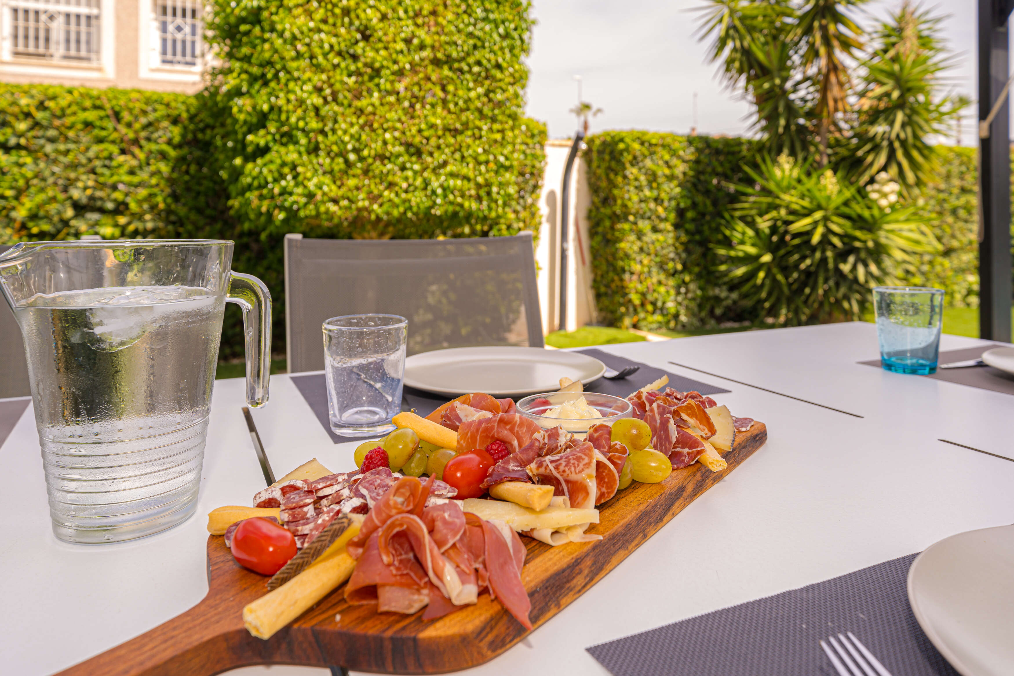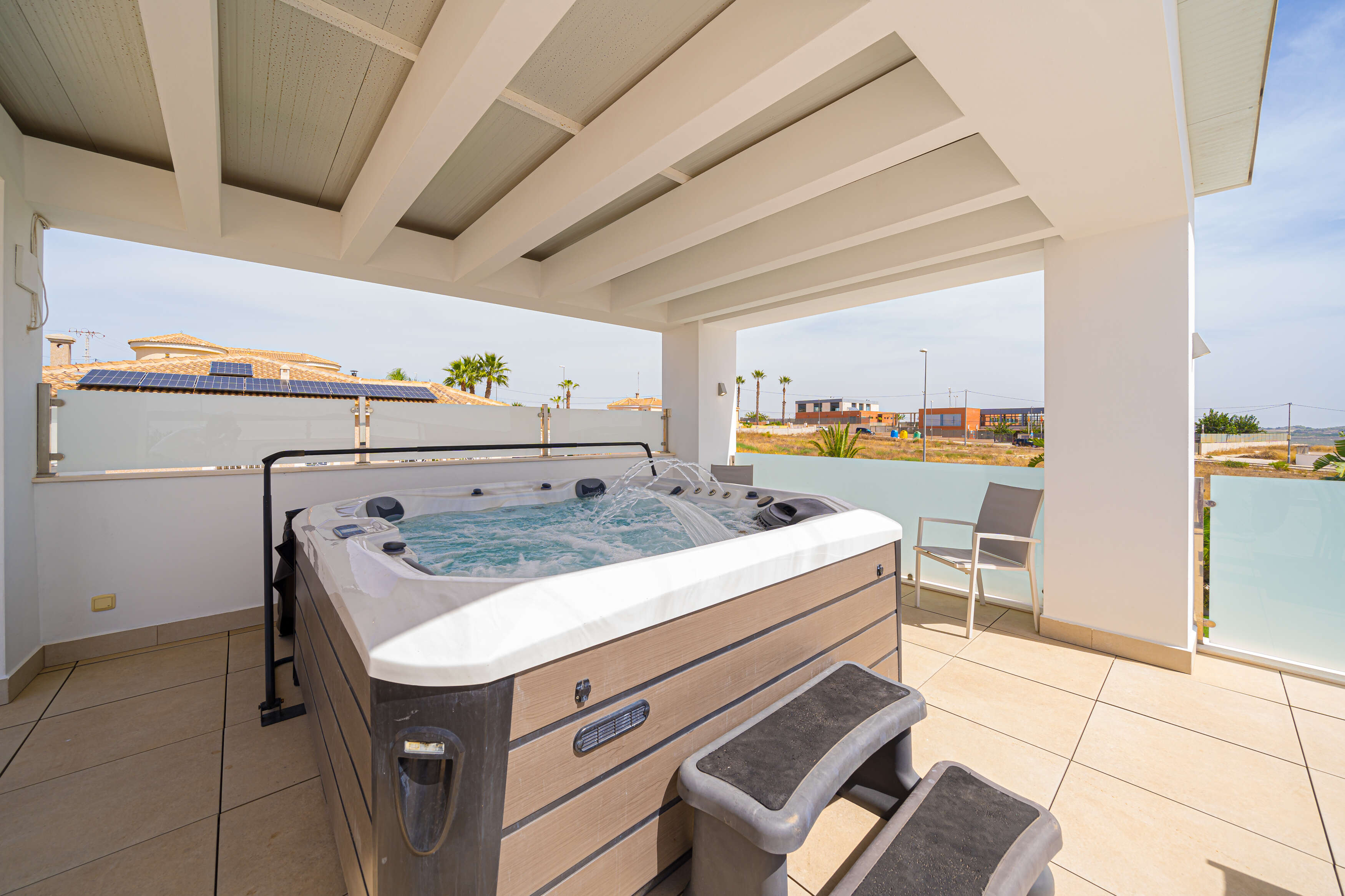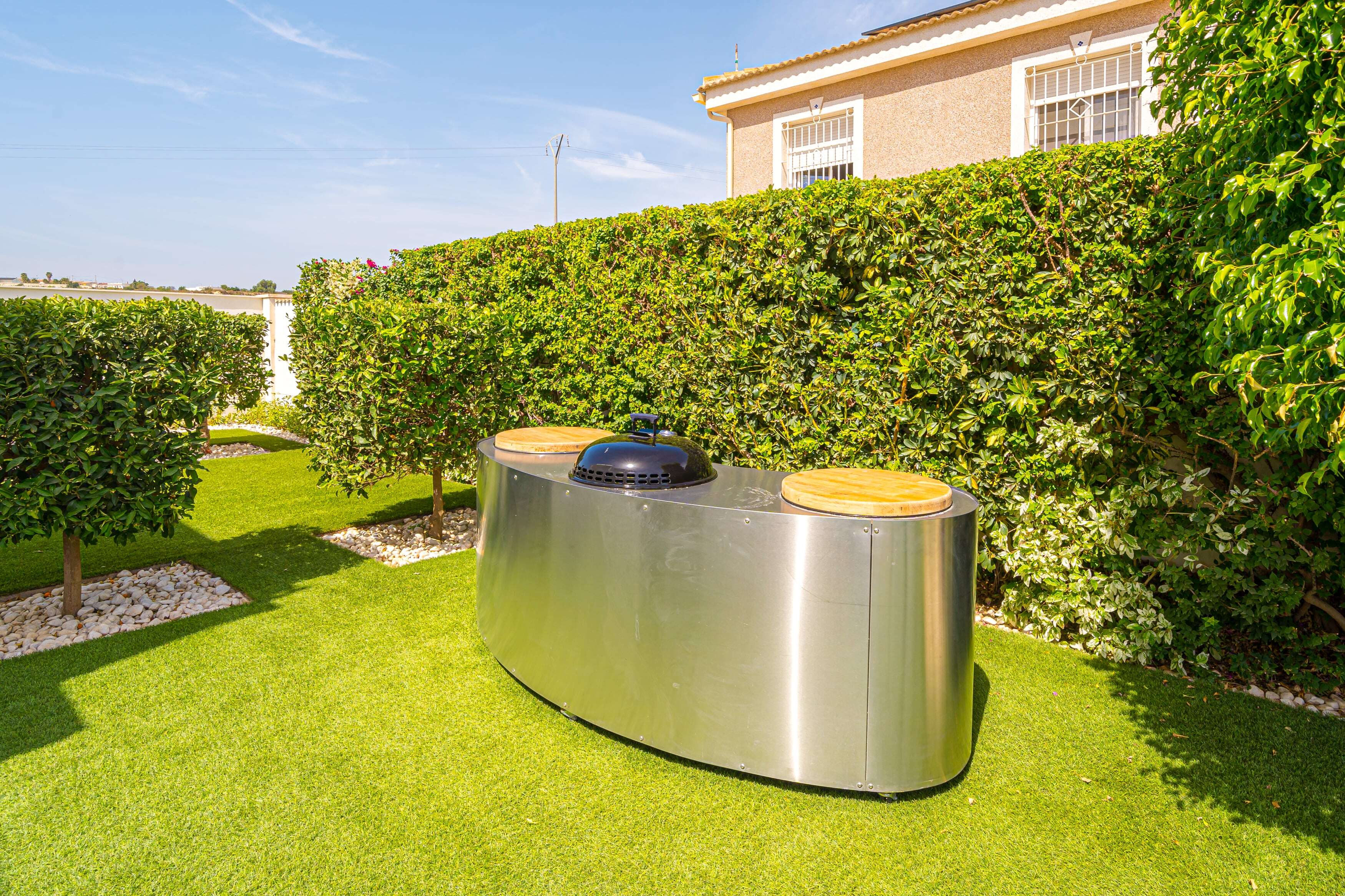 L'extérieur : Vie en plein air de luxe, du lever au coucher du soleil La Villa Torremendo est une luxueuse villa de vacances sur la Costa Blanca ensoleillée, avec plusieurs terrasses et salons agréables. La belle piscine est unique avec un coin salon joliment éclairé dans l'eau et permet de se détendre à l'état pur. Vous trouverez également une douche extérieure, un barbecue, une table de ping-pong et, sur le toit, un solarium avec une grande table à manger - tout ce qu'il faut pour passer de merveilleuses journées et soirées d'été. Le studio au rez-de-chaussée, accessible de l'extérieur, dispose d'une salle de douche privée et d'une kitchenette pour plus de confort.