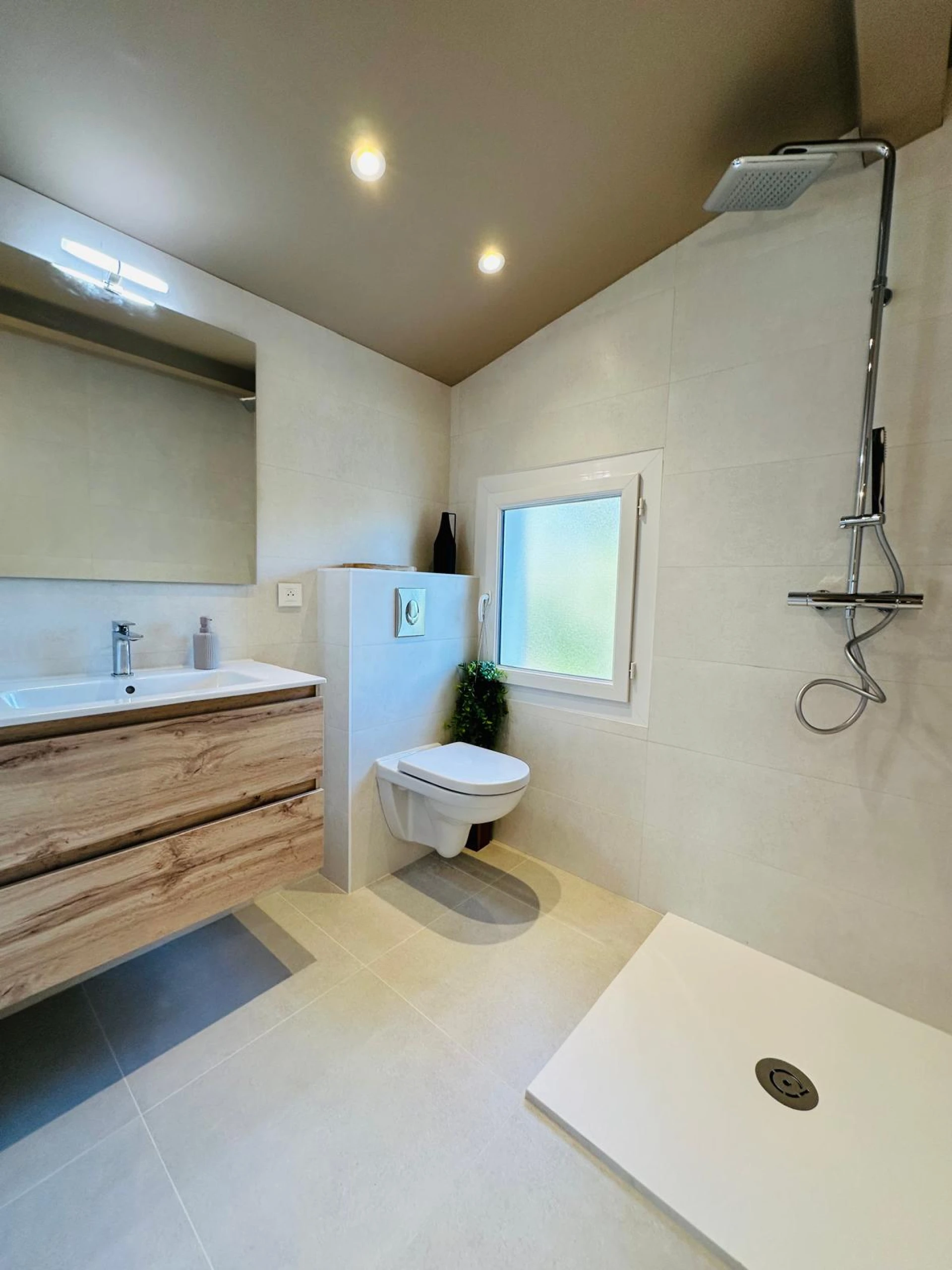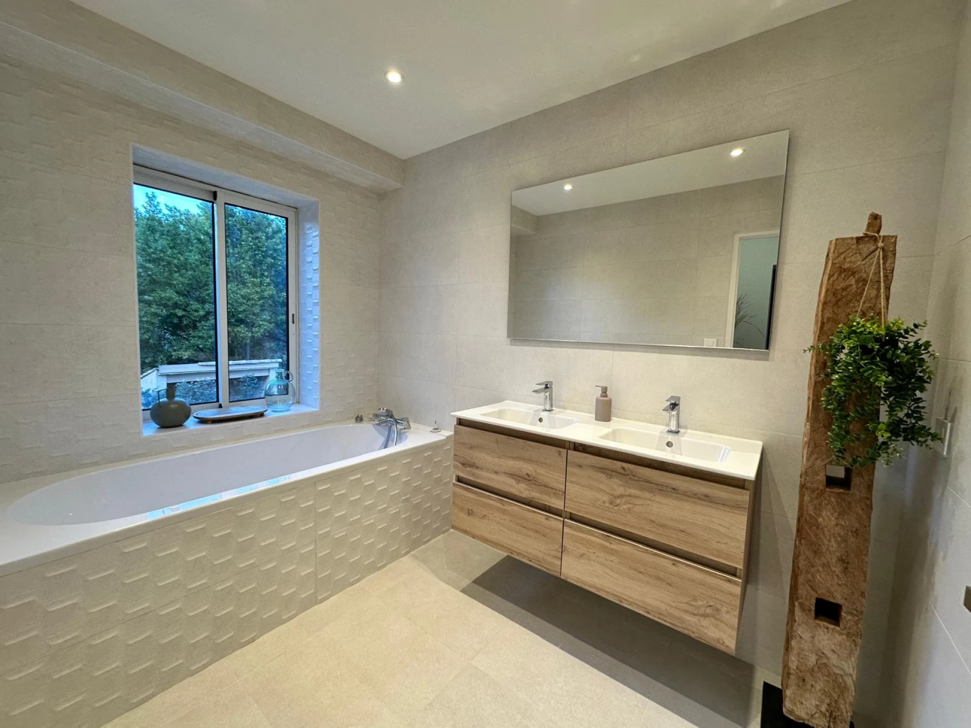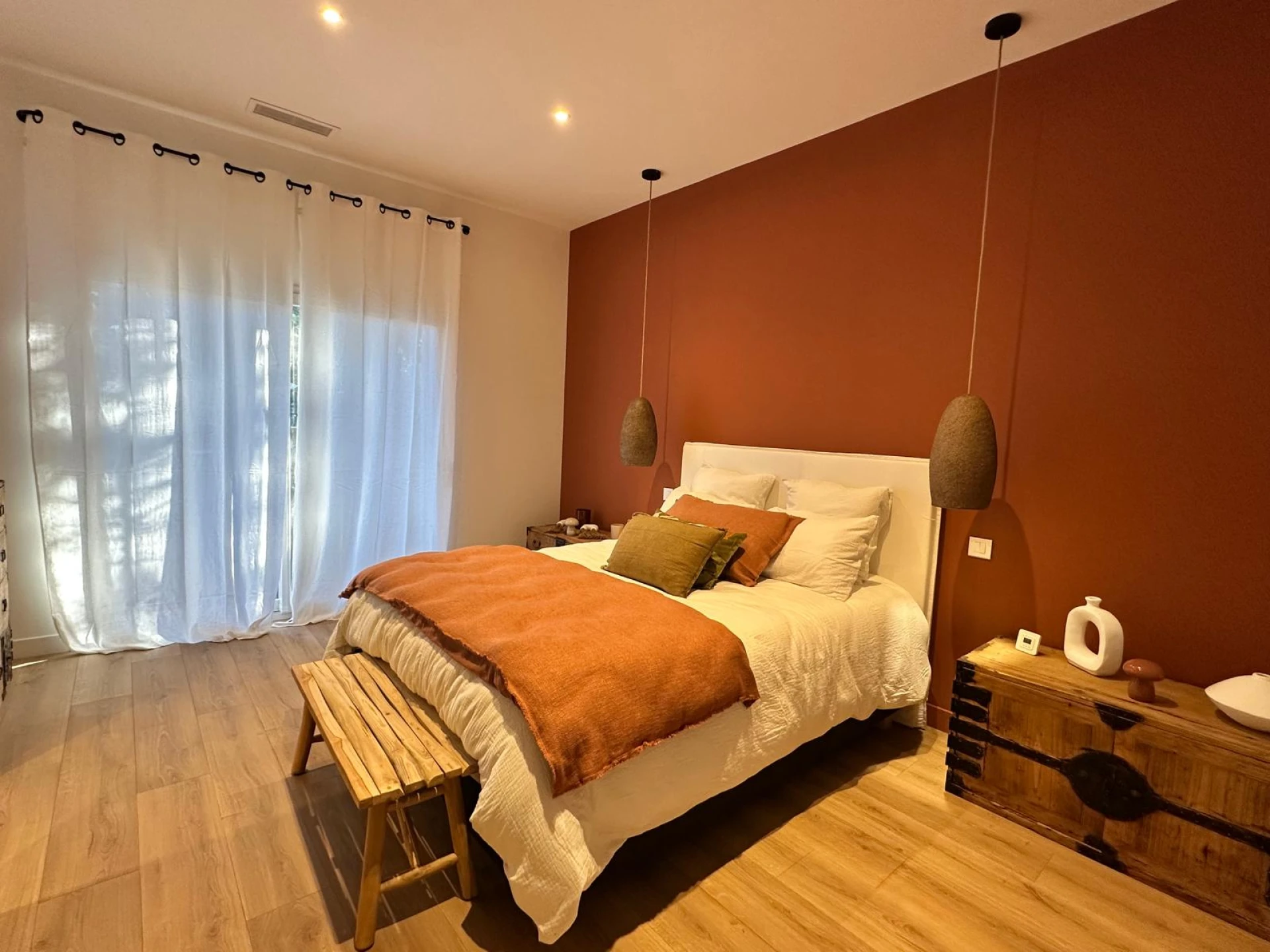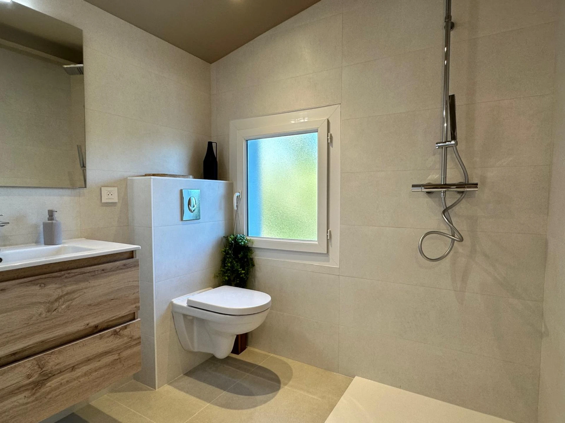 Cette villa moderne offre pas moins de 280 m² de surface habitable et se distingue immédiatement par ses espaces de vie impressionnants et ses finitions de haute qualité. Le salon spacieux, avec ses grandes baies vitrées et sa connexion directe avec l'extérieur, crée une sensation harmonieuse entre l'intérieur et l'extérieur. Toutes les chambres sont équipées de la climatisation et disposent de leur propre salle de bains attenante. Grâce à ses différents espaces au rez-de-chaussée, elle est également accessible aux personnes à mobilité réduite.