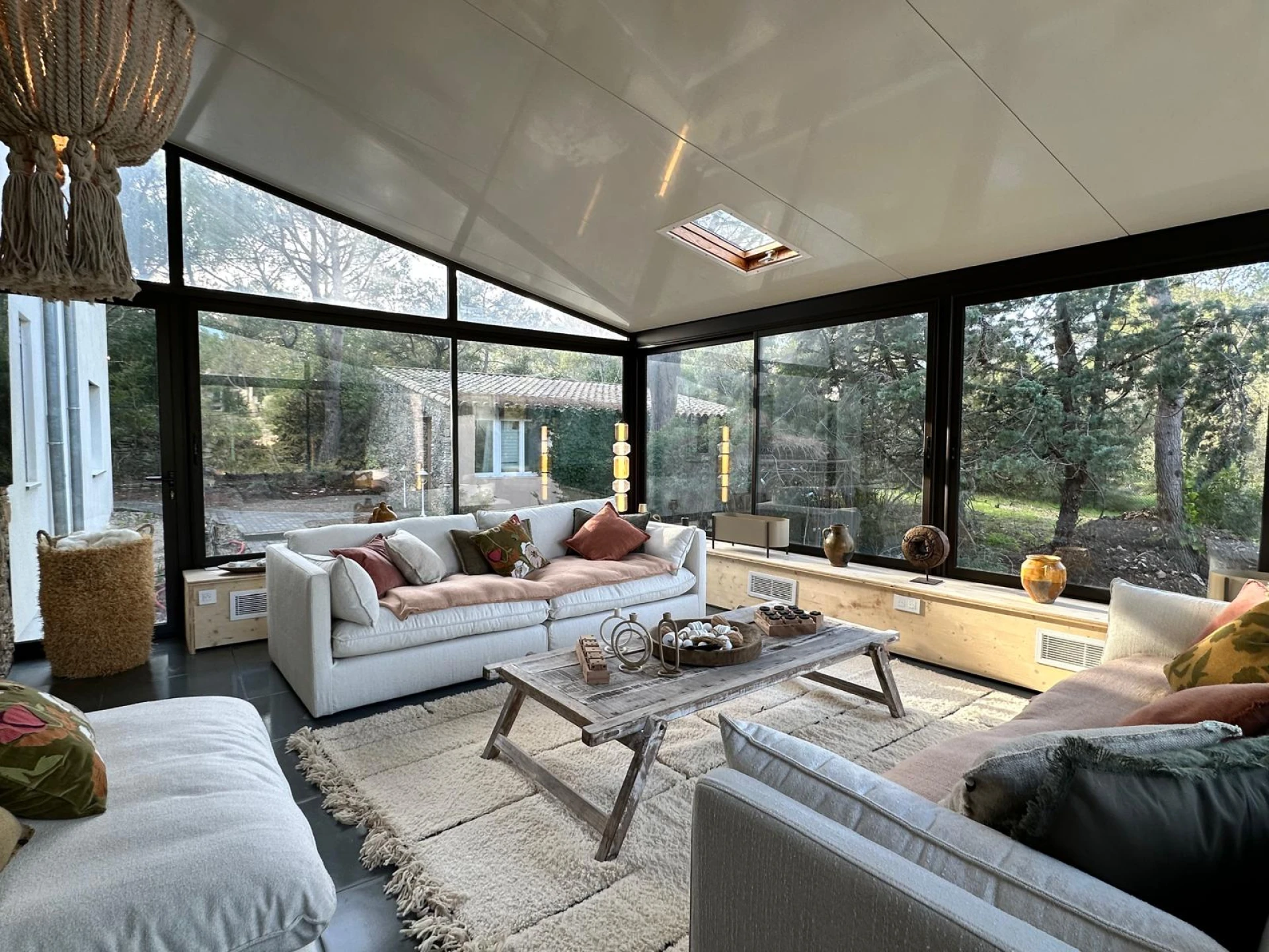 La villa est située sur un immense terrain de pas moins de 4000 m², entourée de nature et de tranquillité. La superficie totale des terrasses est de 250 m², avec des terrasses ouvertes et couvertes. Au centre de l'extérieur se trouve la magnifique piscine privée (10 x 5 m, profondeur 1,5 m), traitée par électrolyse au sel et ouverte du 1er mai au 30 septembre. La piscine est chauffée et sécurisée par une alarme. La terrasse en bois et les solariums invitent à passer des journées de détente sous le soleil du sud de la France.