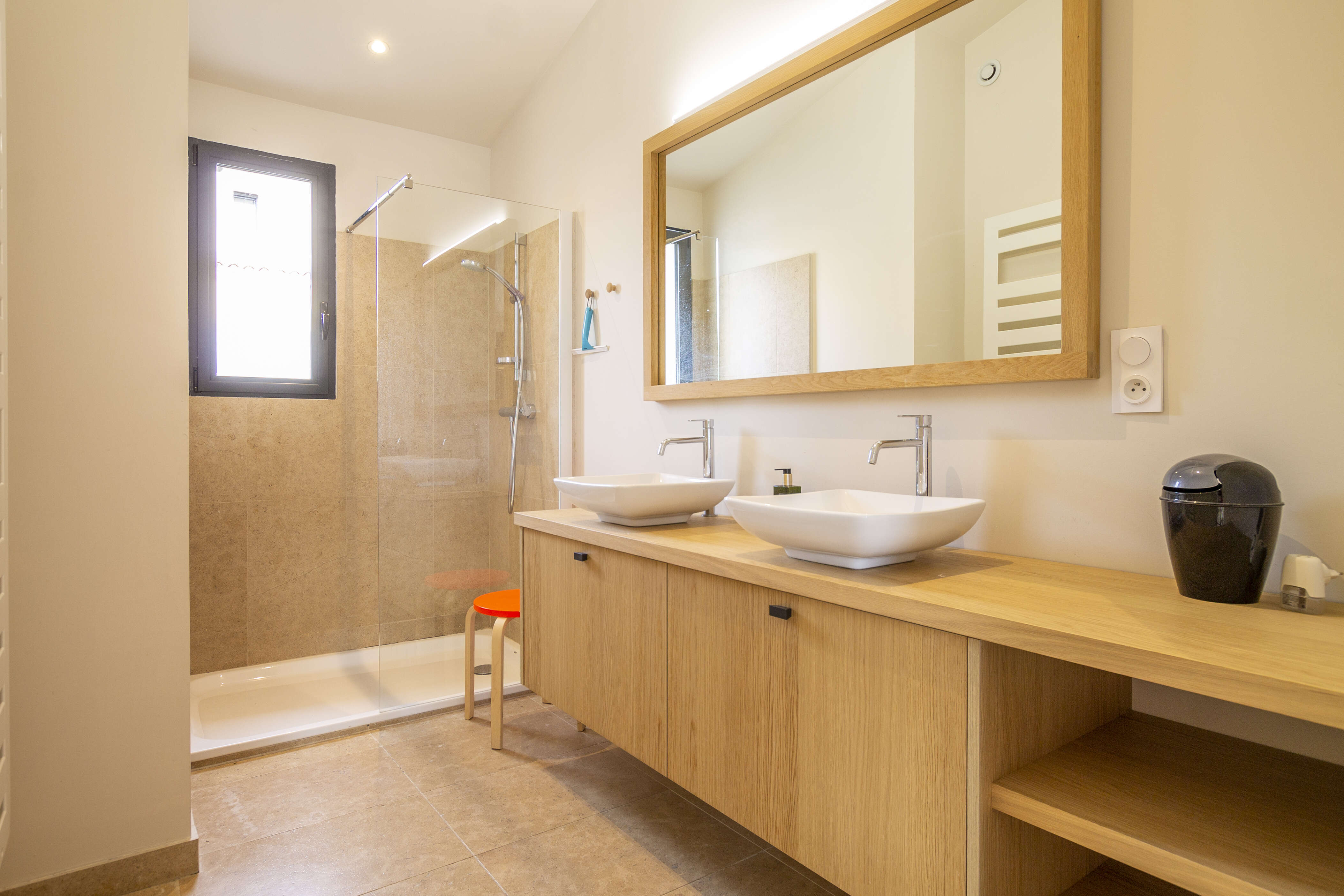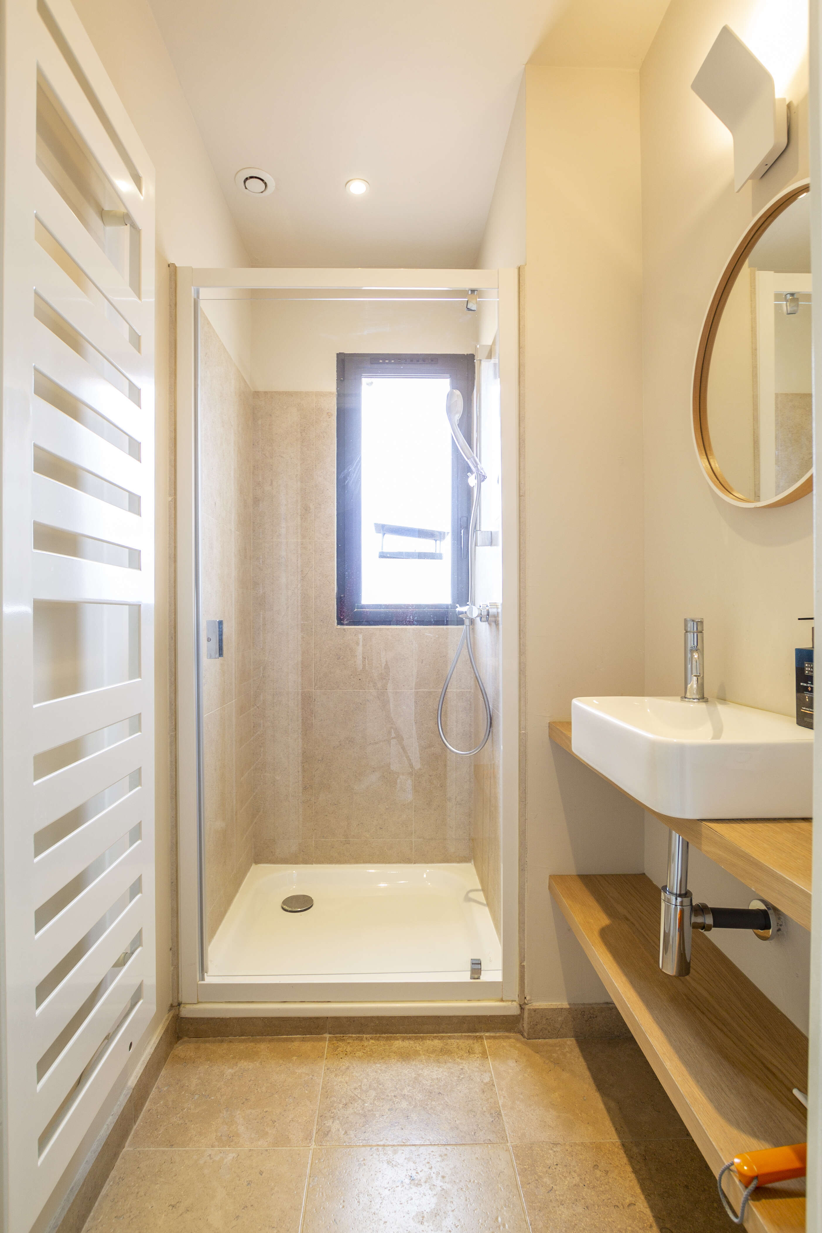 Chambre: lit 160cm , salle de douche , lavabo (2x) , chauffe-serviettes